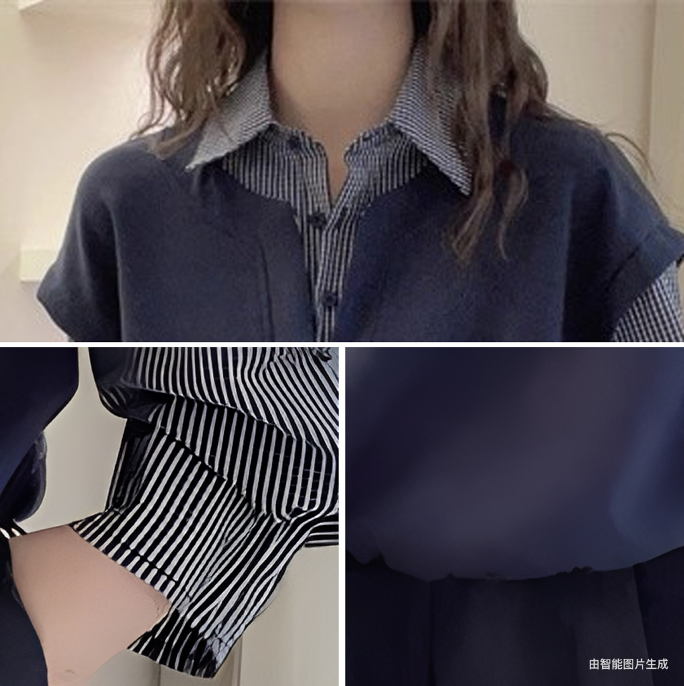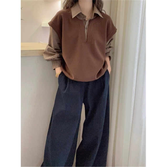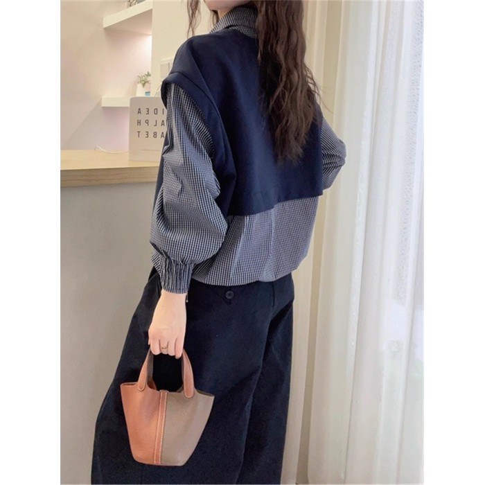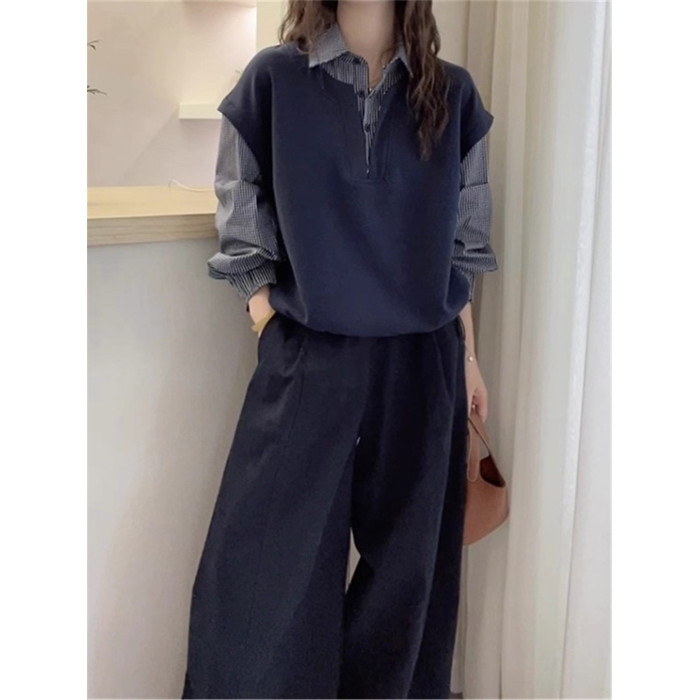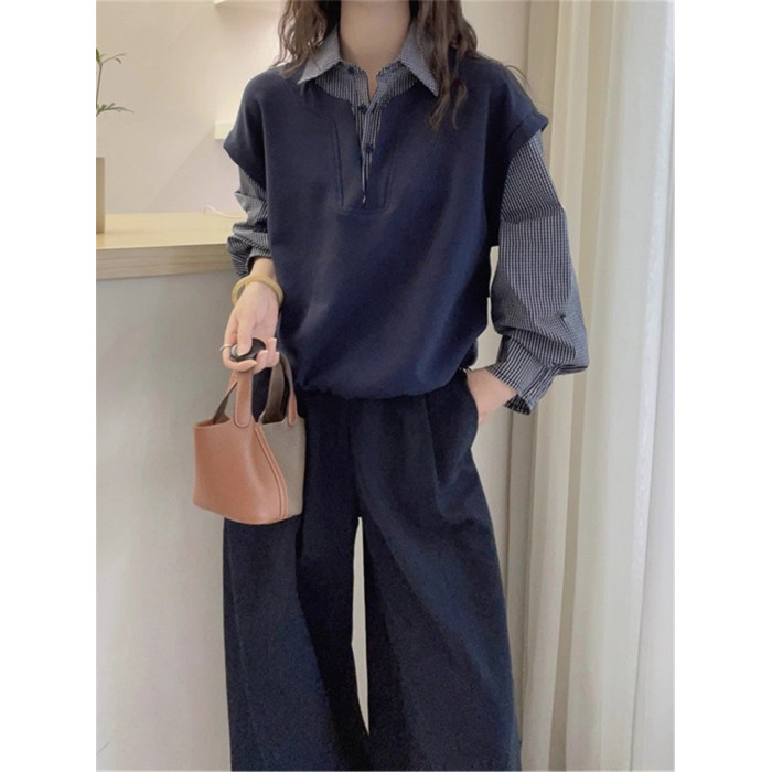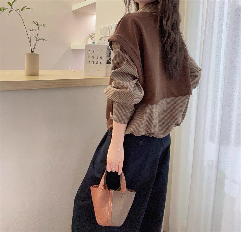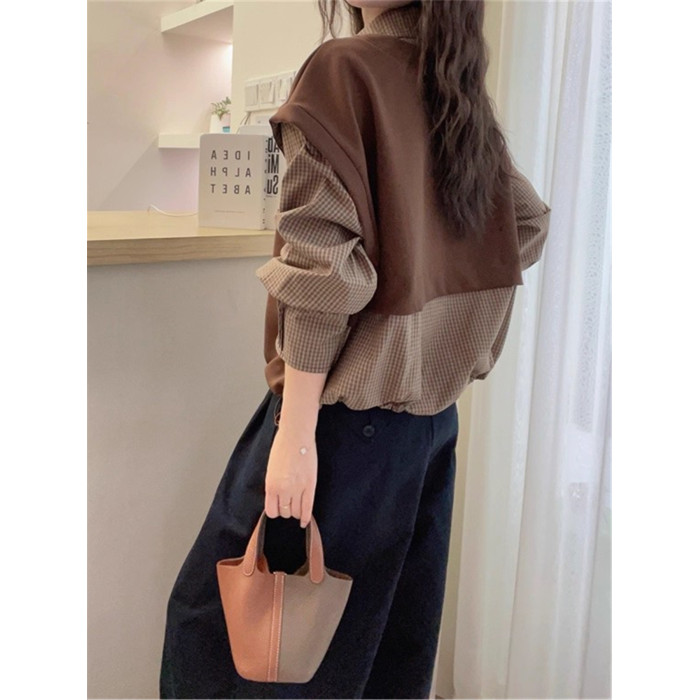 假兩件衛衣拼接格子襯衫女長袖胖妹妹大碼女裝寬鬆顯瘦遮肚子上衣
