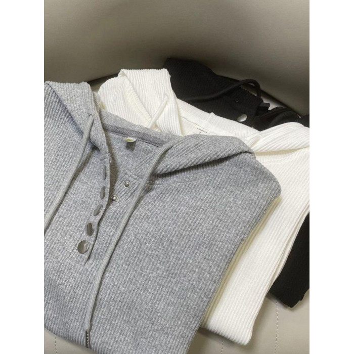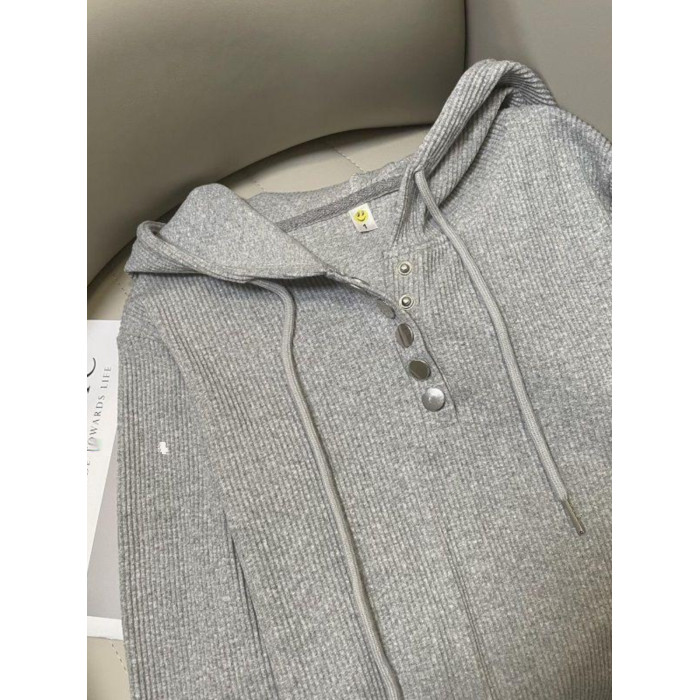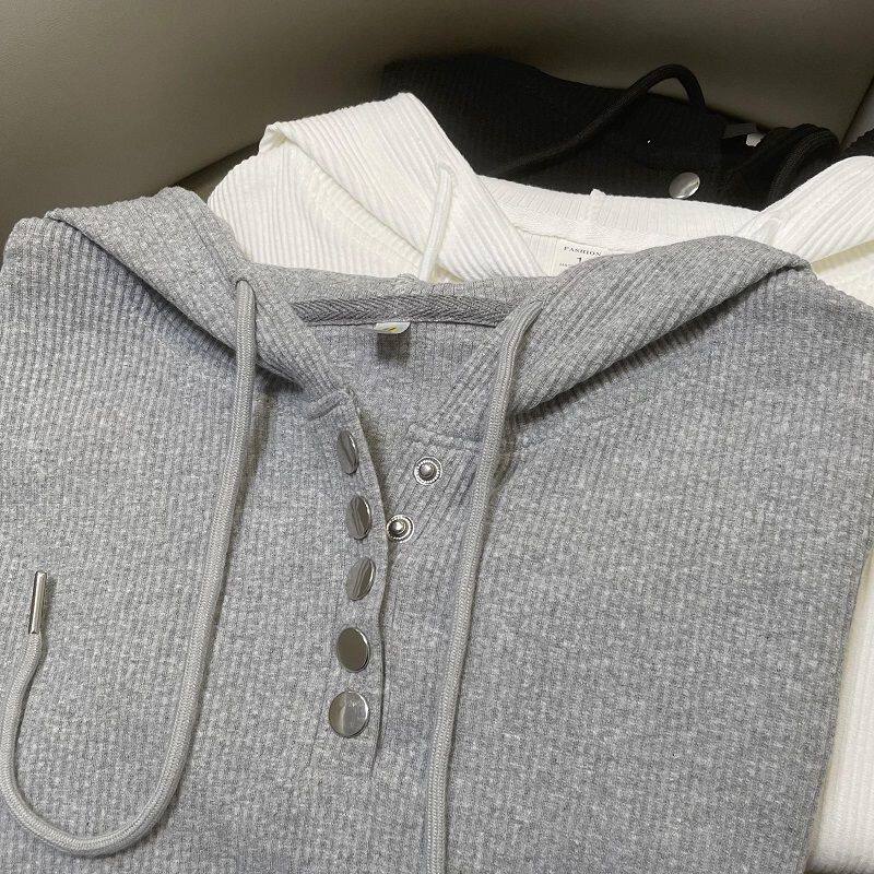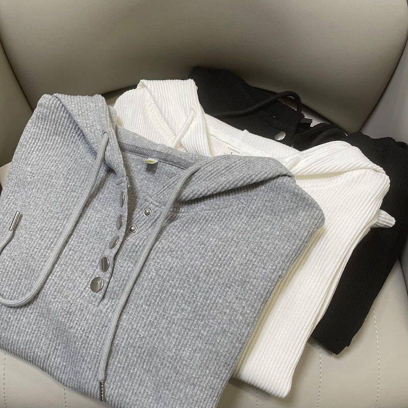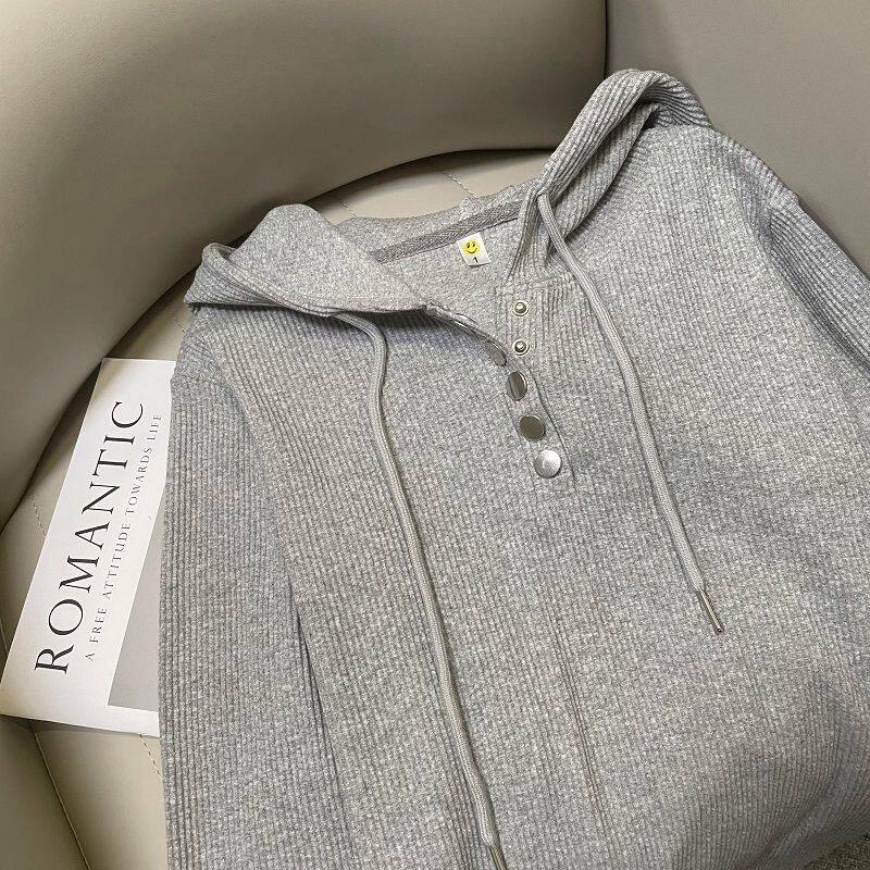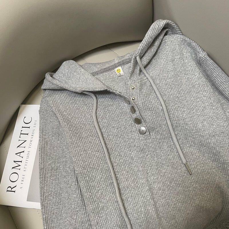 歐貨高級感連帽外搭衛衣女早春季半開衫紐釦寬鬆慵懶休閒長袖上衣
