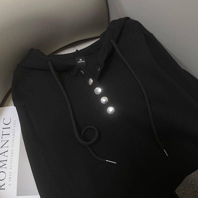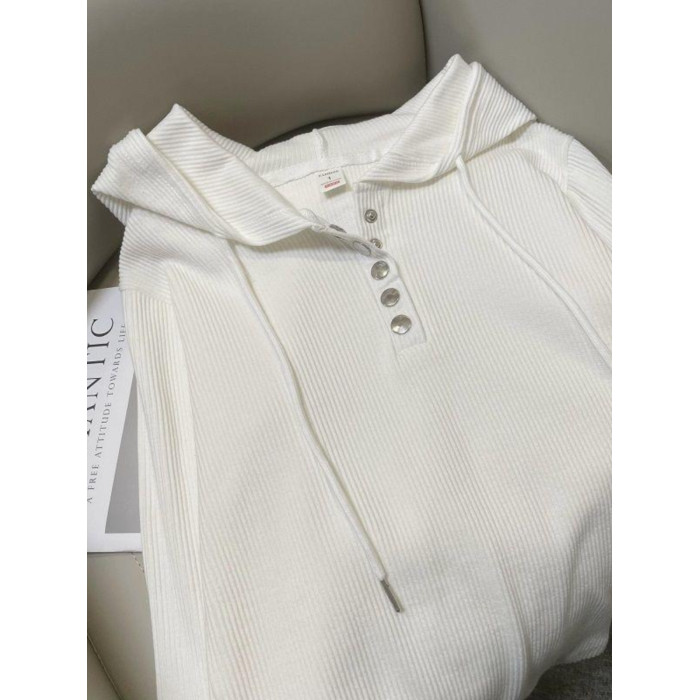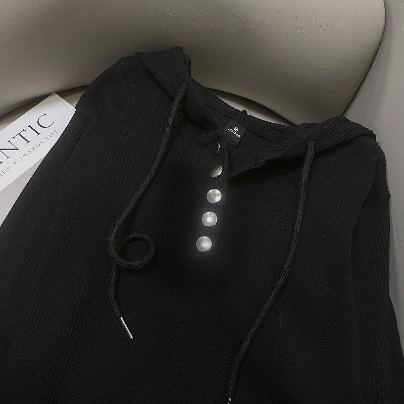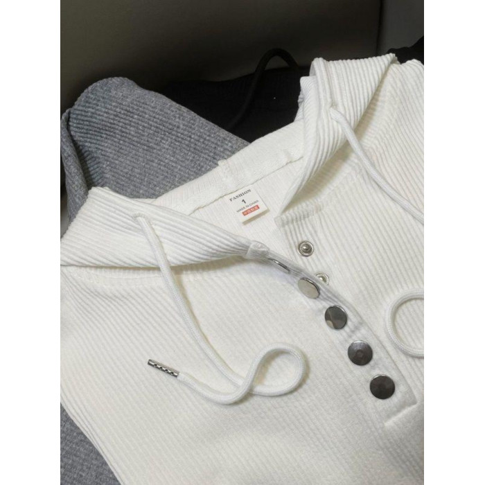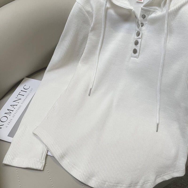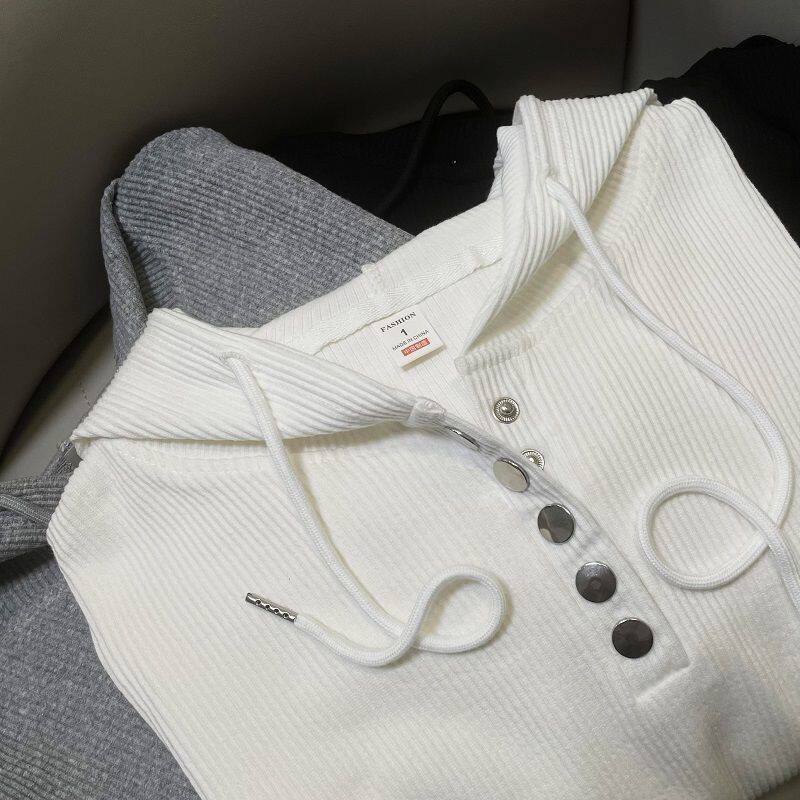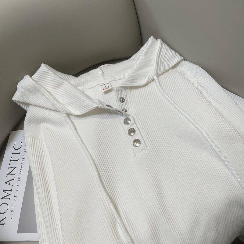 歐貨高級感連帽外搭衛衣女早春季半開衫紐釦寬鬆慵懶休閒長袖上衣