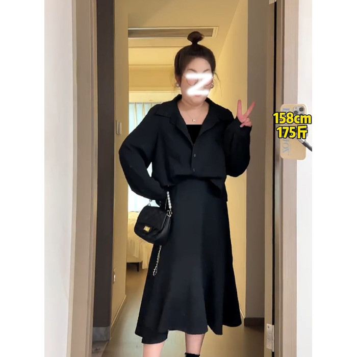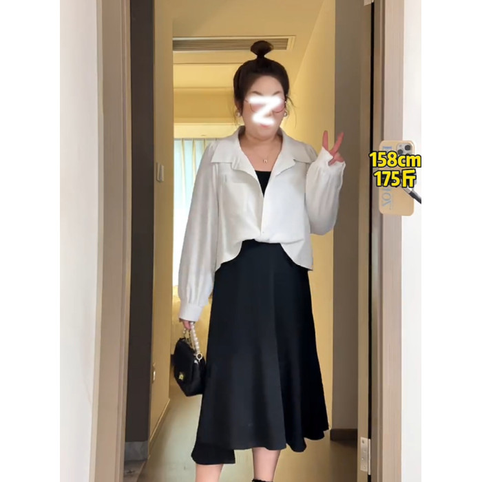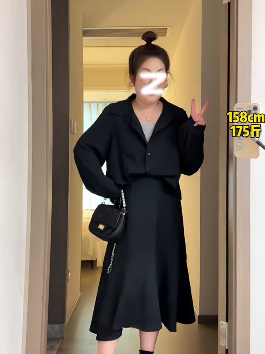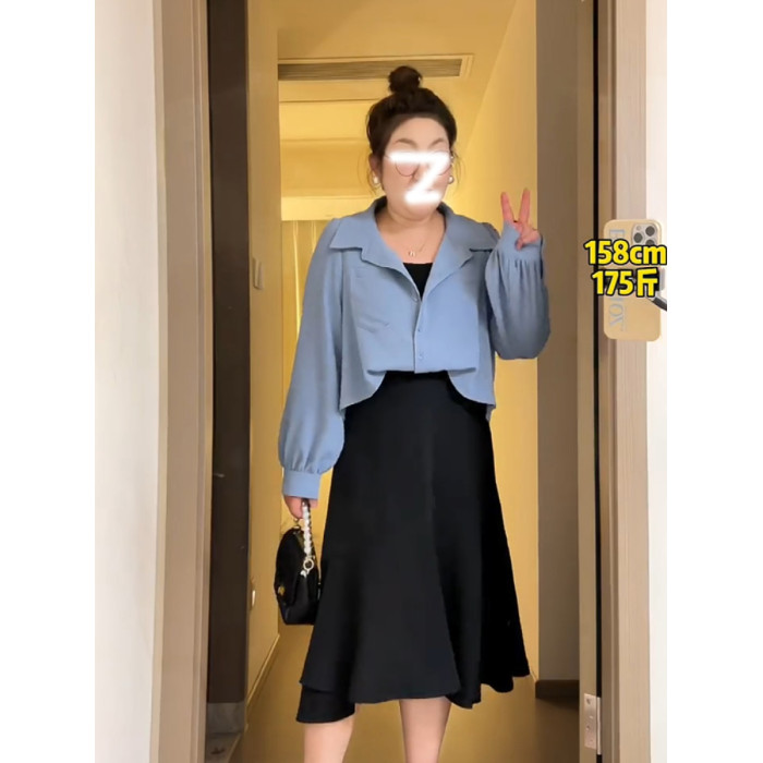 大碼女秋冬裝今年流行上衣2026新款胖mm遮肚巨顯瘦假兩件長袖襯衣