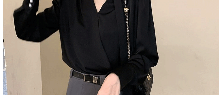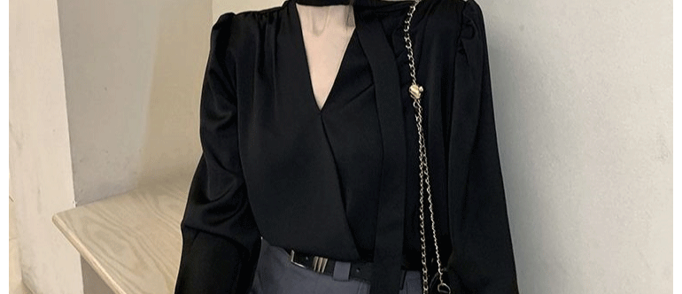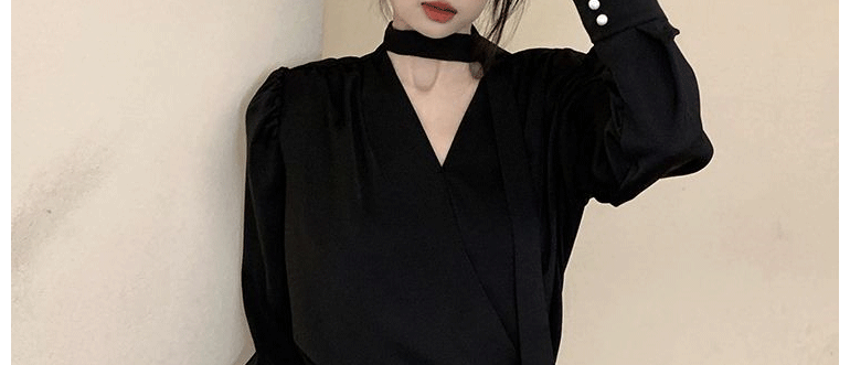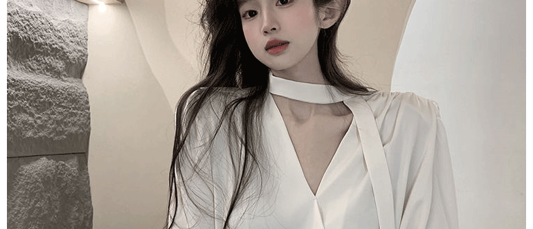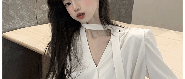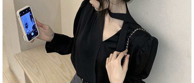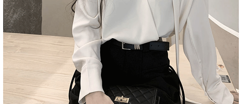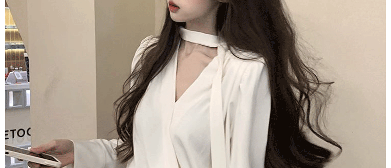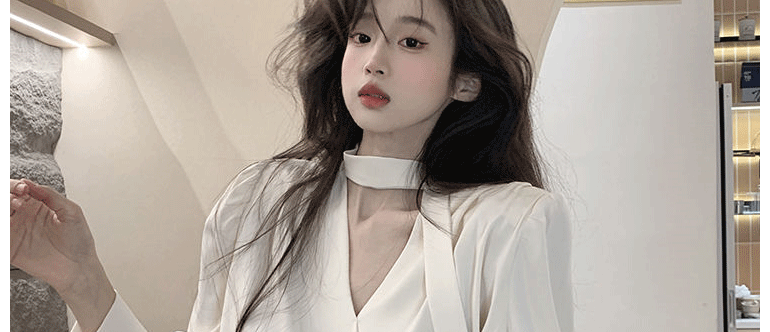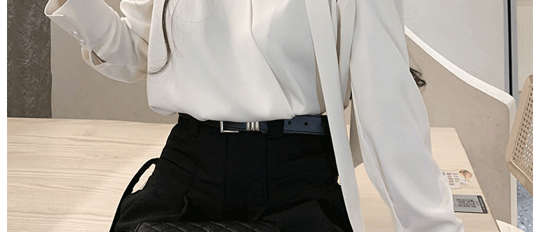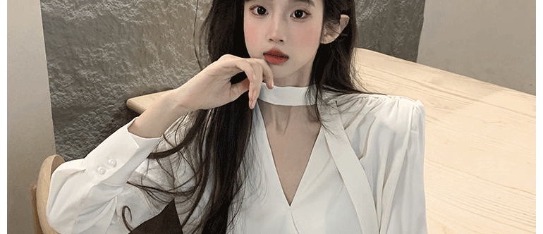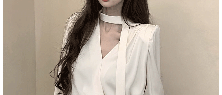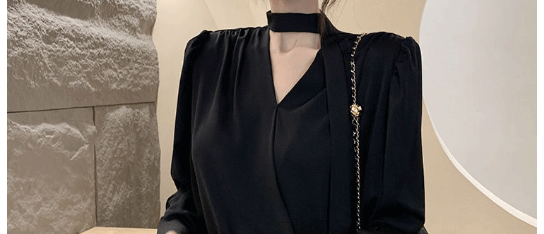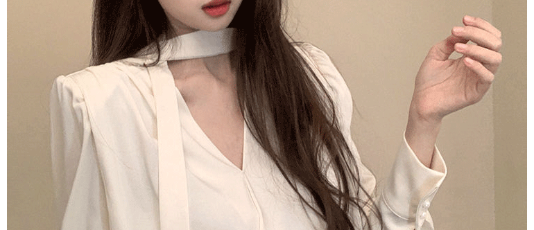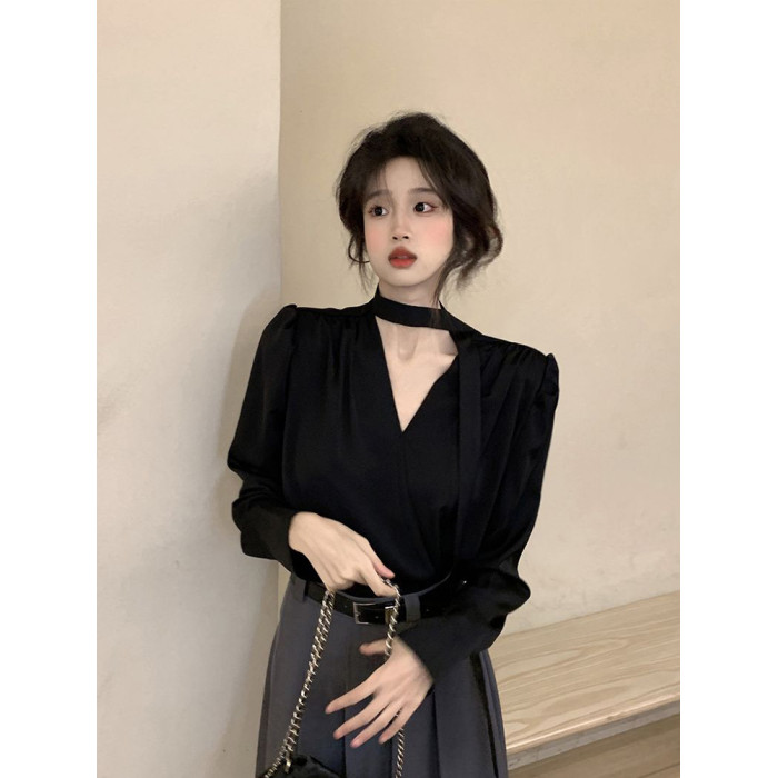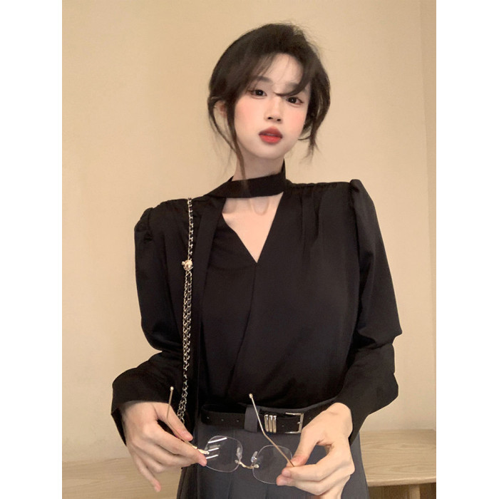 飄帶雪紡襯衫女長袖春秋設計感小衆上衣法式輕奢氣質掛脖職業襯衣