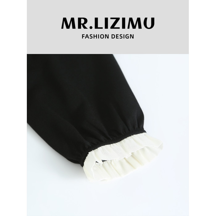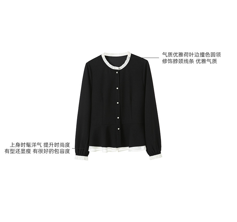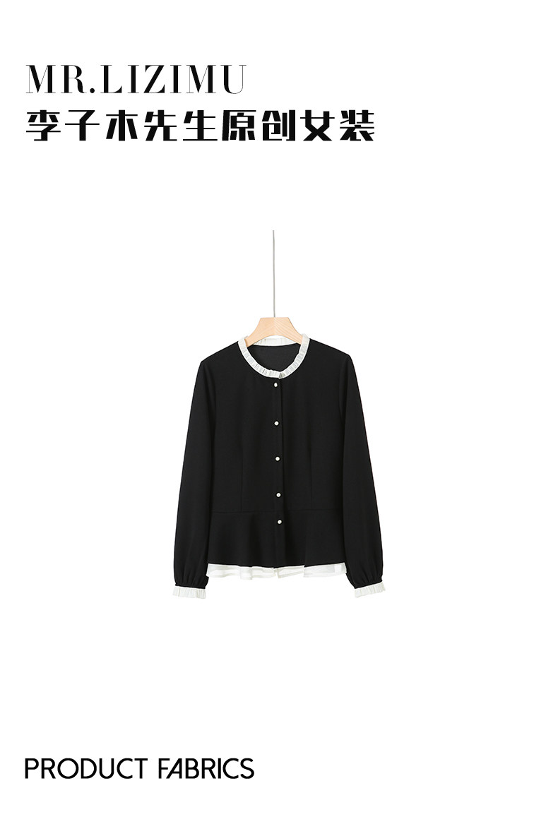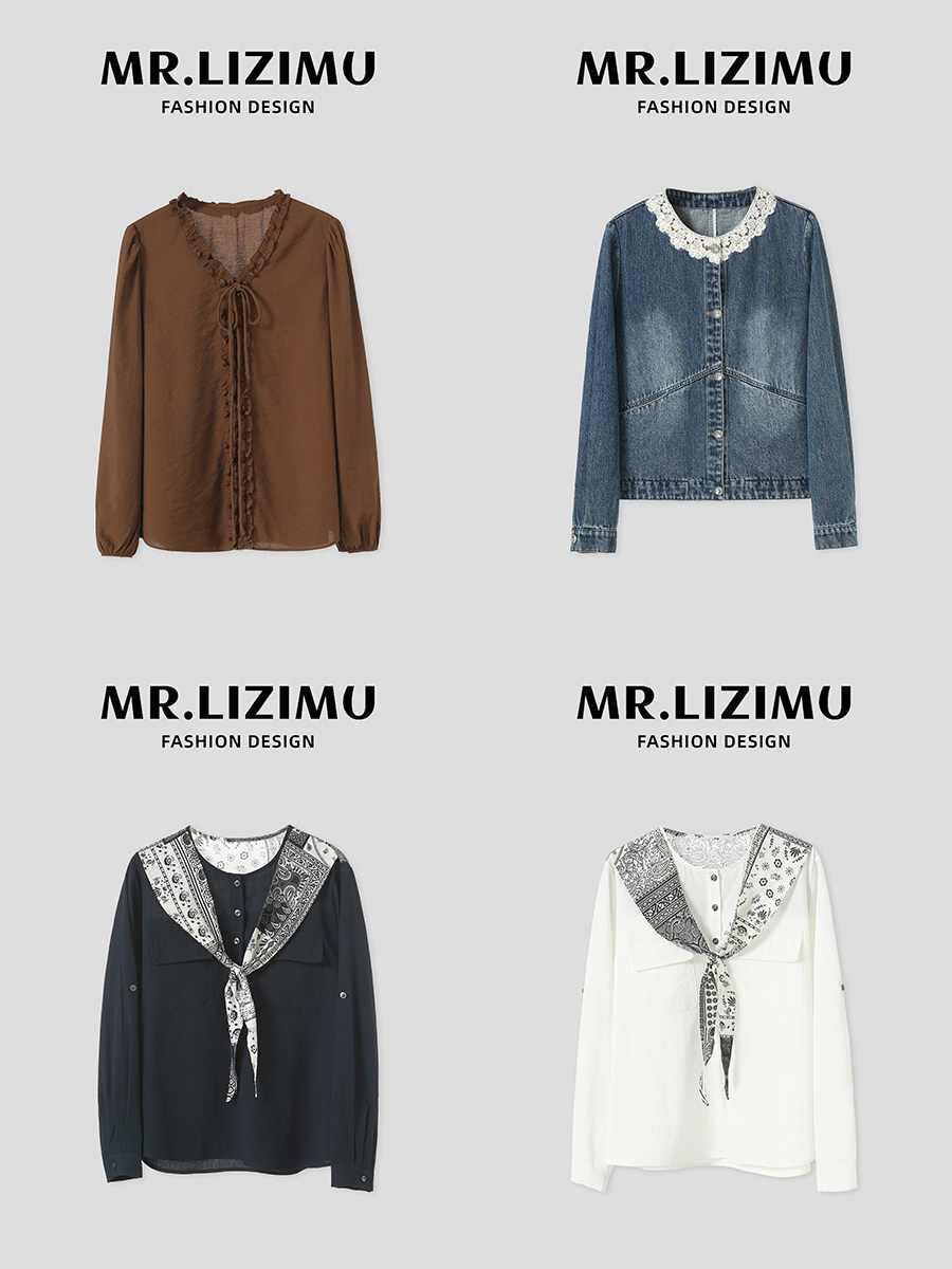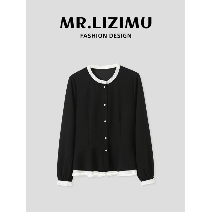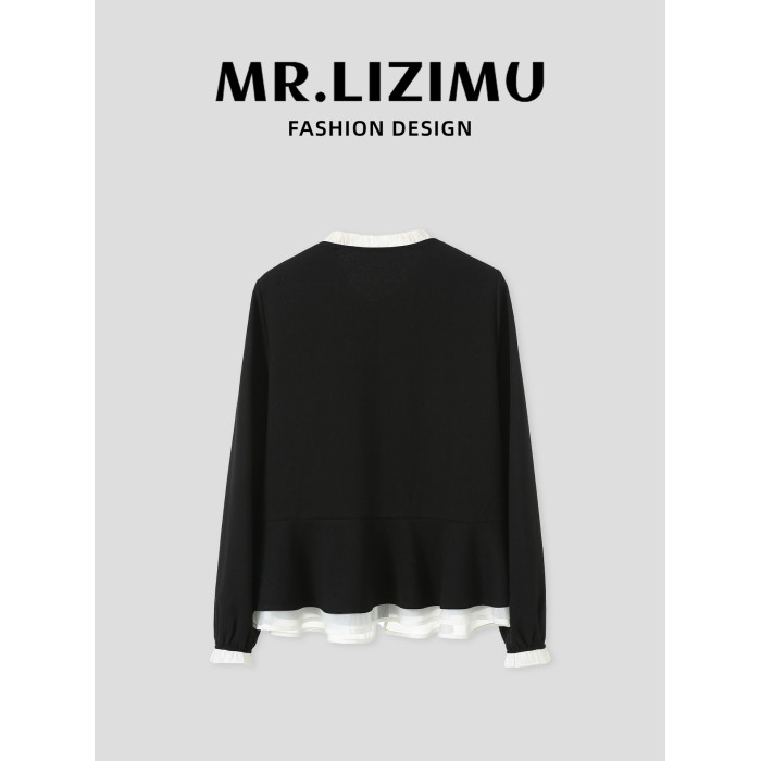 李子木拼接木耳領襯衫女2025秋季新款長袖寬鬆休閒百搭減齡上衣