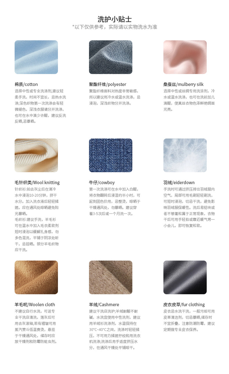 | 材質成分 | 粘膠纖維(粘纖)34% 聚醯胺纖維(錦綸)32% 聚酯纖維23.5% 聚氨酯彈性纖維(氨綸)10.5% |