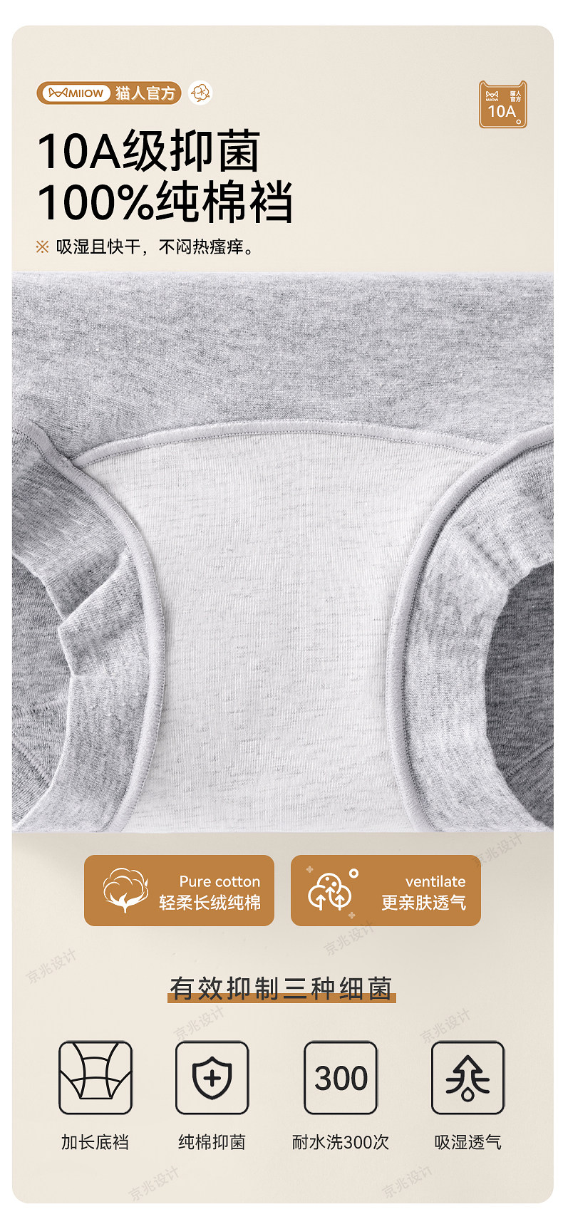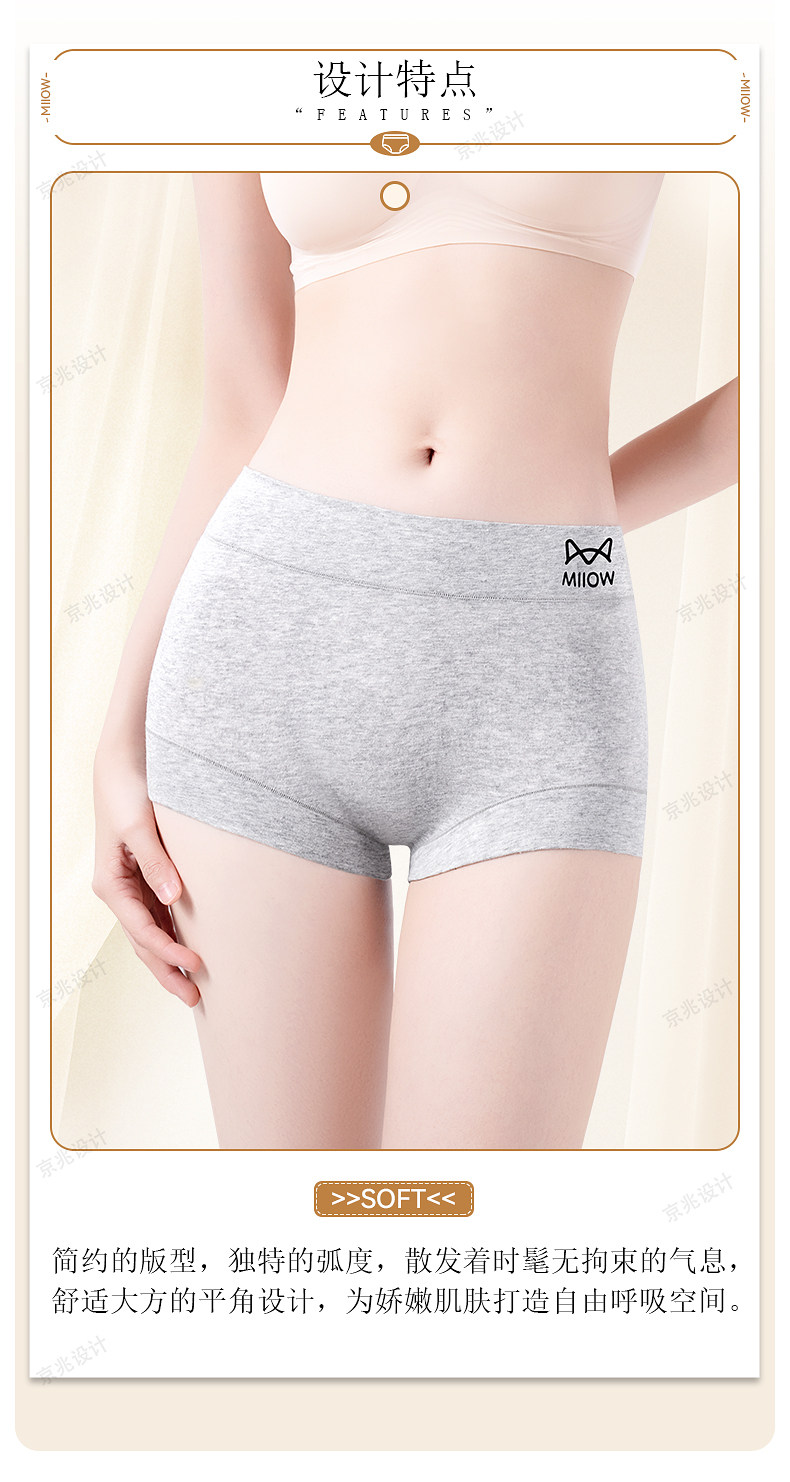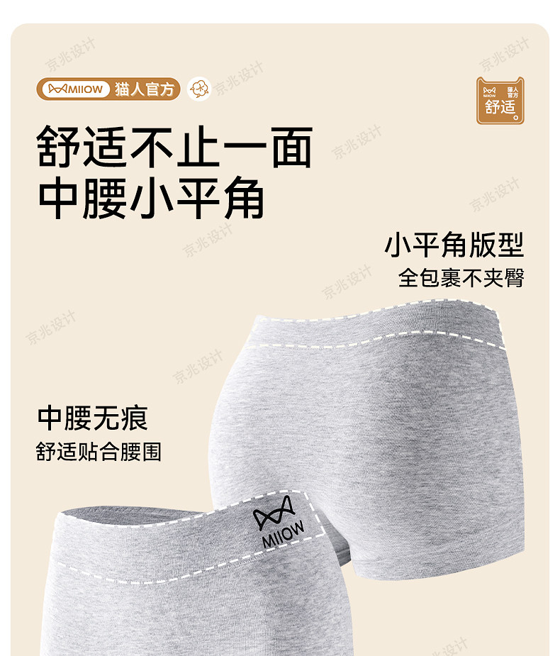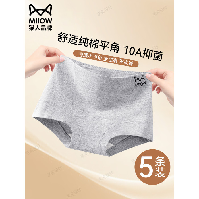 貓人純棉小平角內褲女士全棉10A抗菌2026新款女式四角褲女生短褲