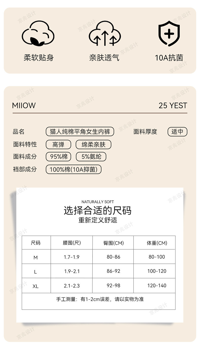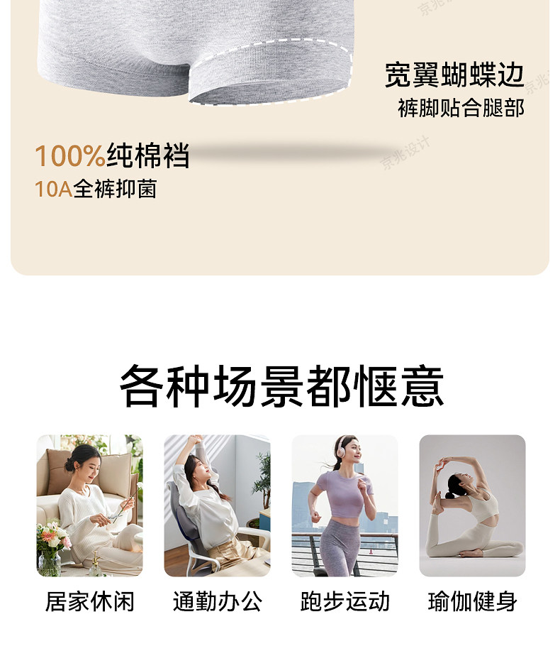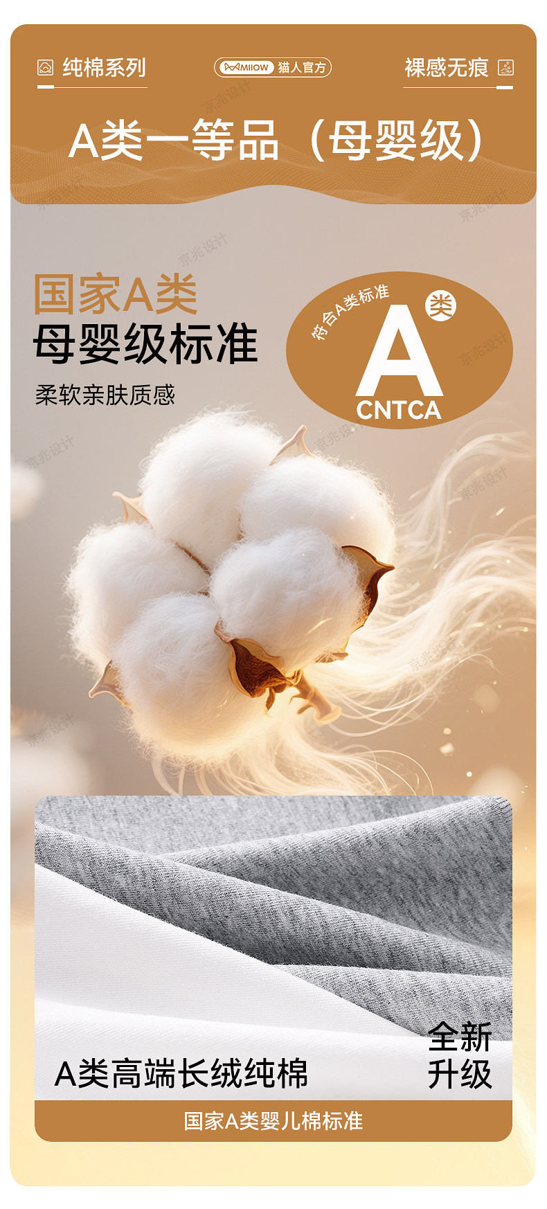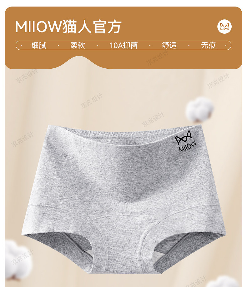 貓人純棉小平角內褲女士全棉10A抗菌2026新款女式四角褲女生短褲