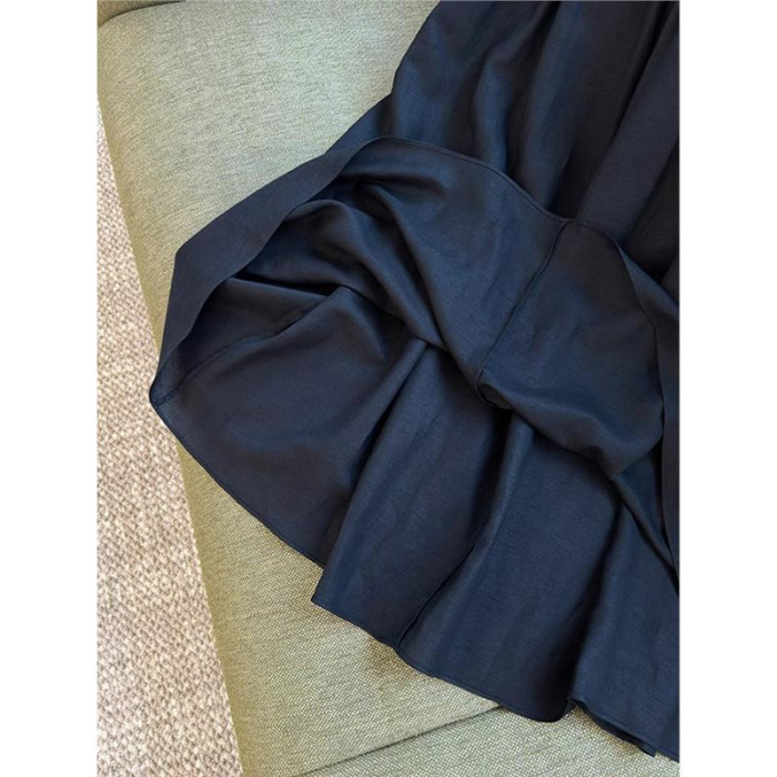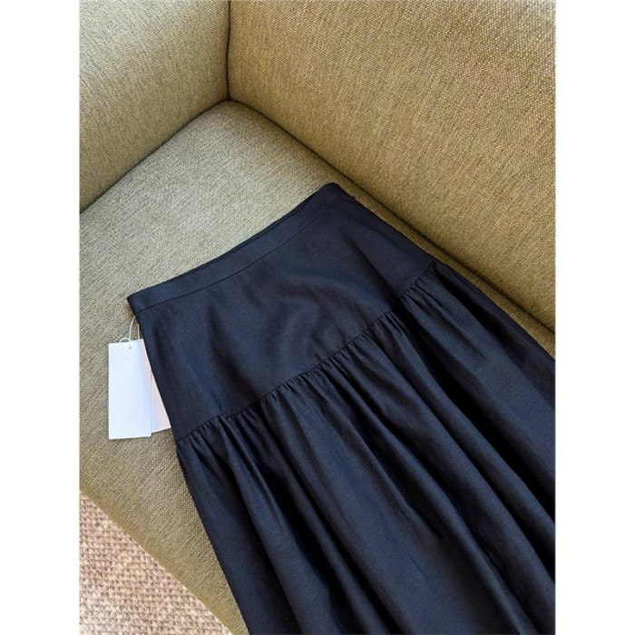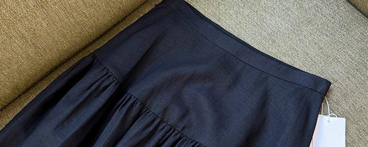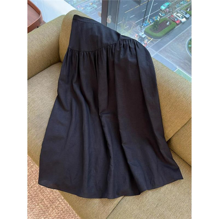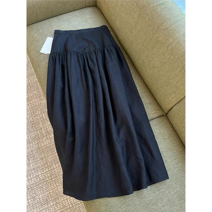 日韓尾貨剪標女裝~GAO端小衆中高腰細褶拼接亞麻半身裙女