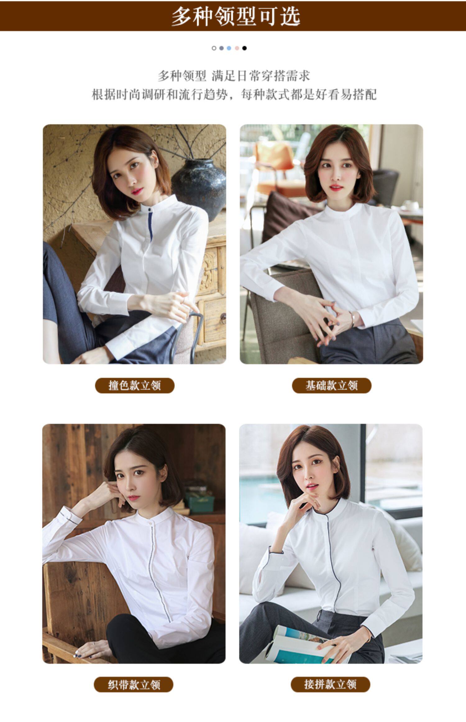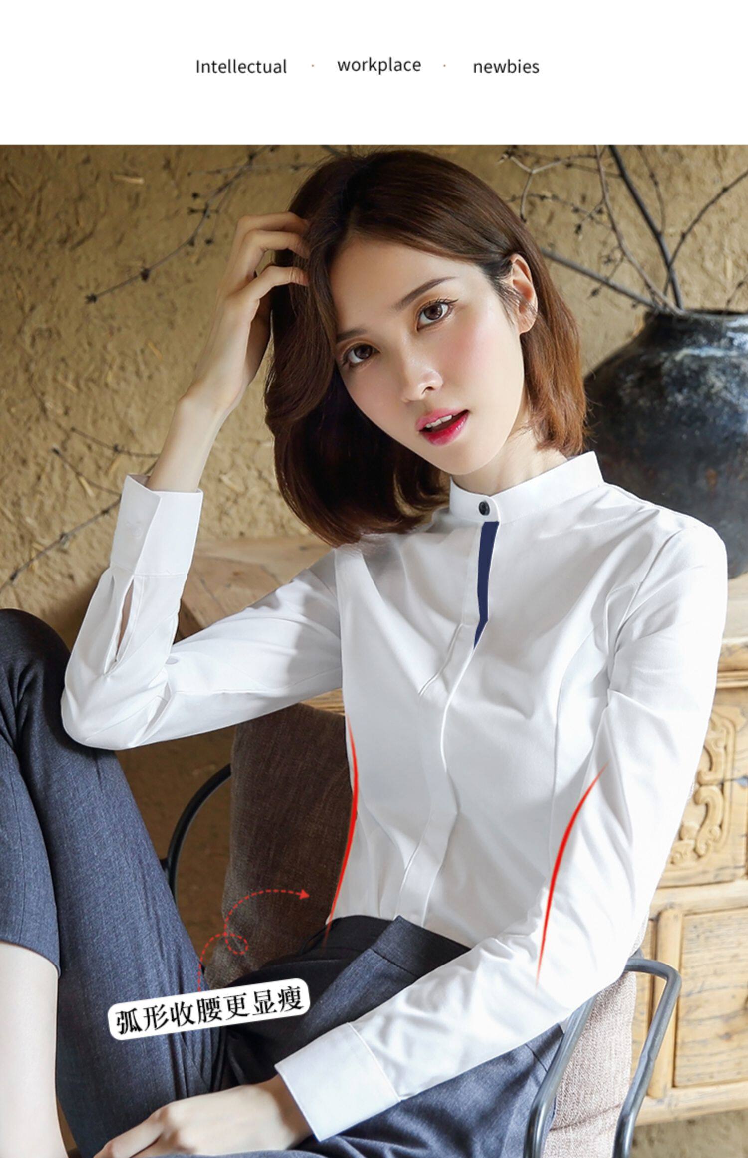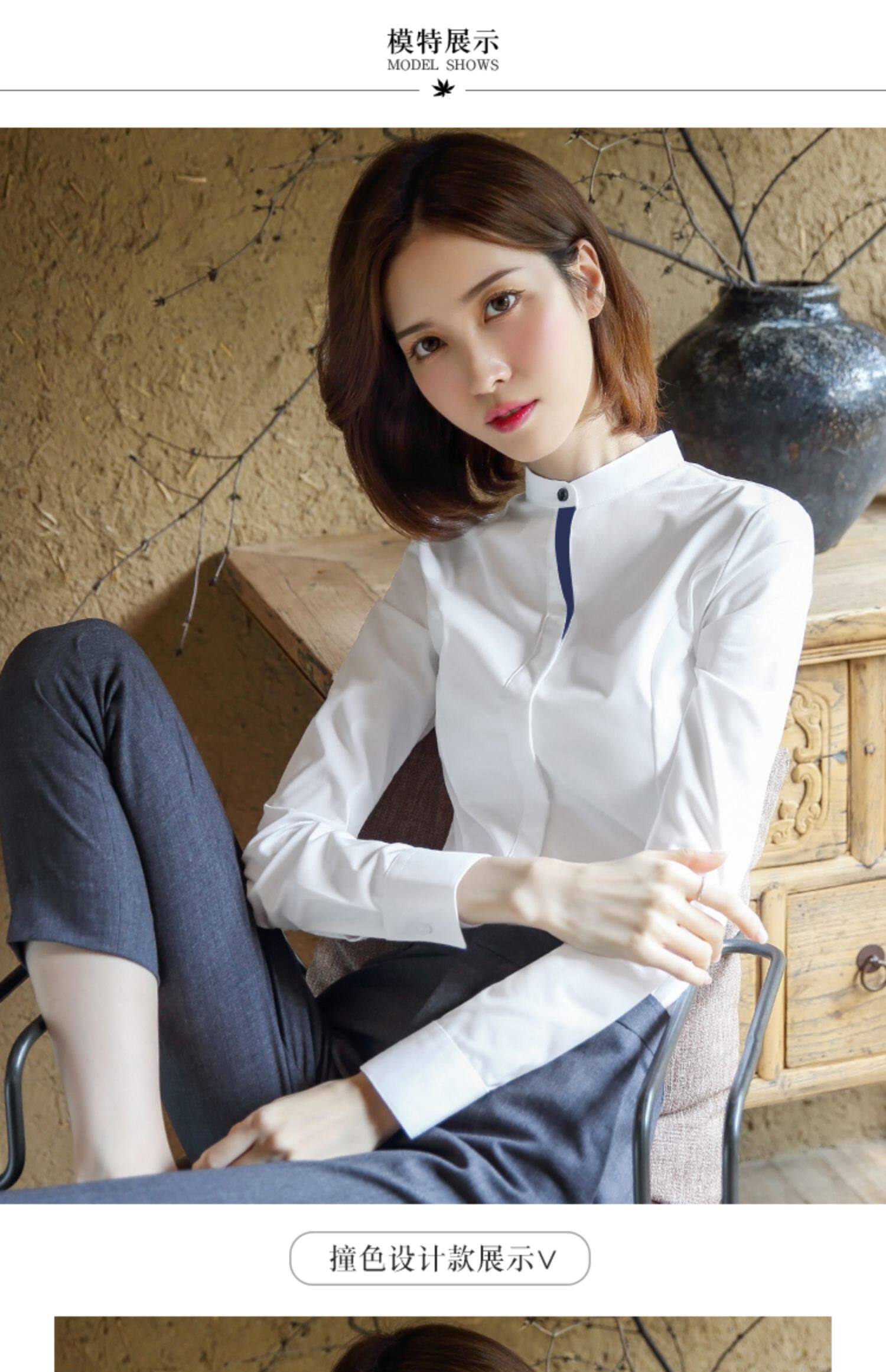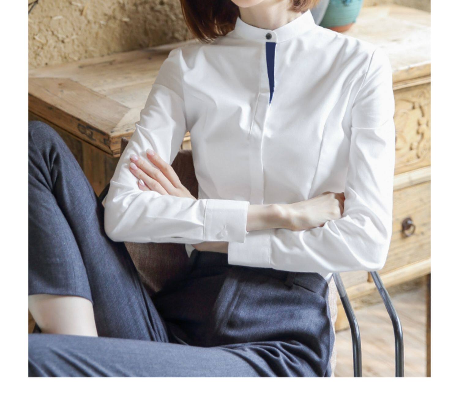 洛禾設計感小衆白色立領職業襯衫女長袖2025春裝新款撞色拼接襯衣