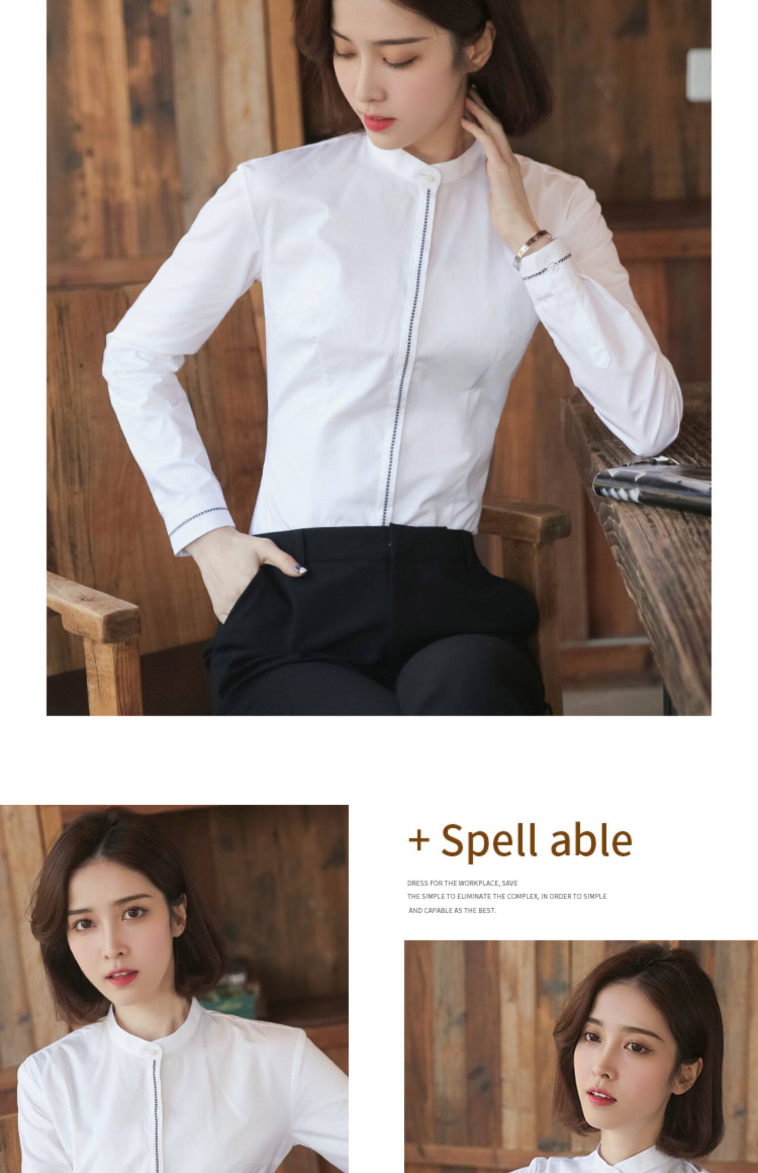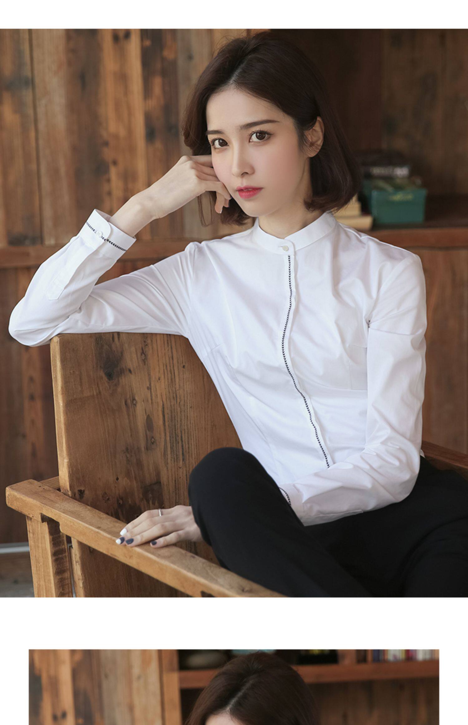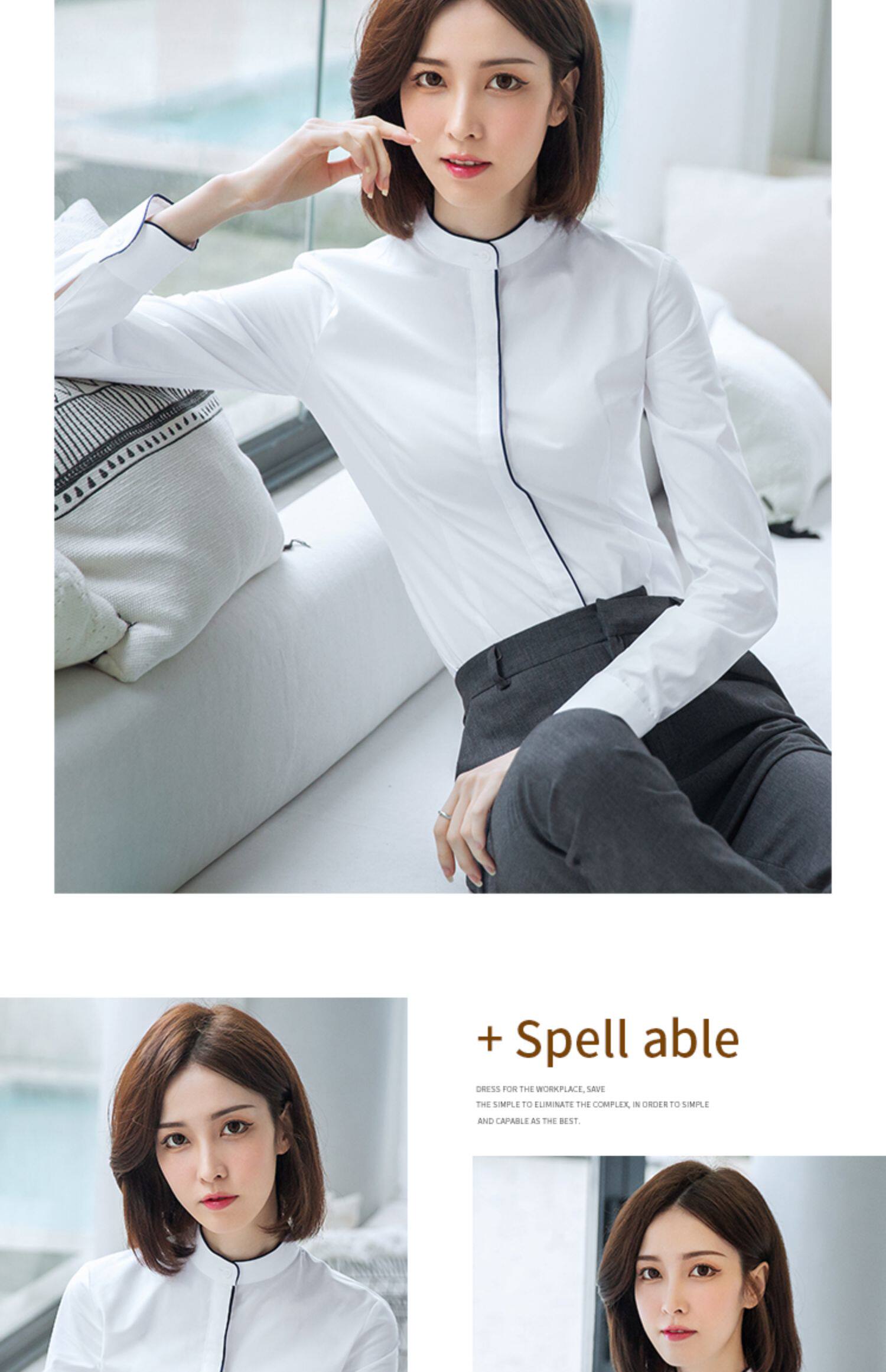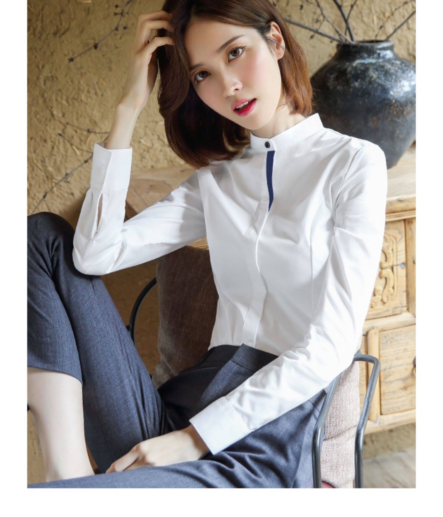 洛禾設計感小衆白色立領職業襯衫女長袖2025春裝新款撞色拼接襯衣