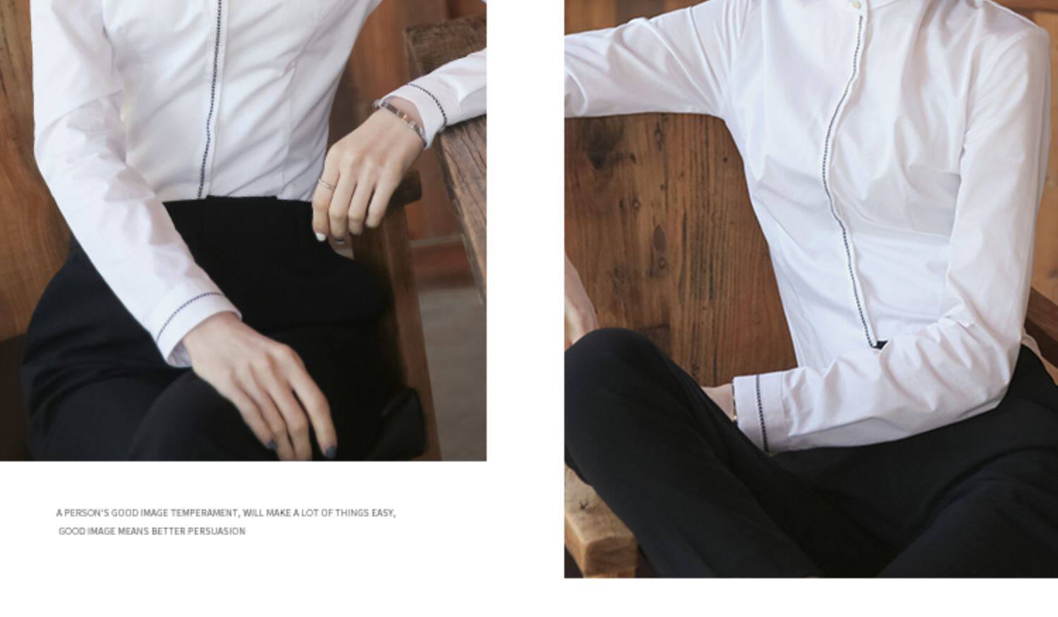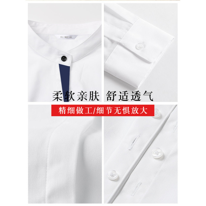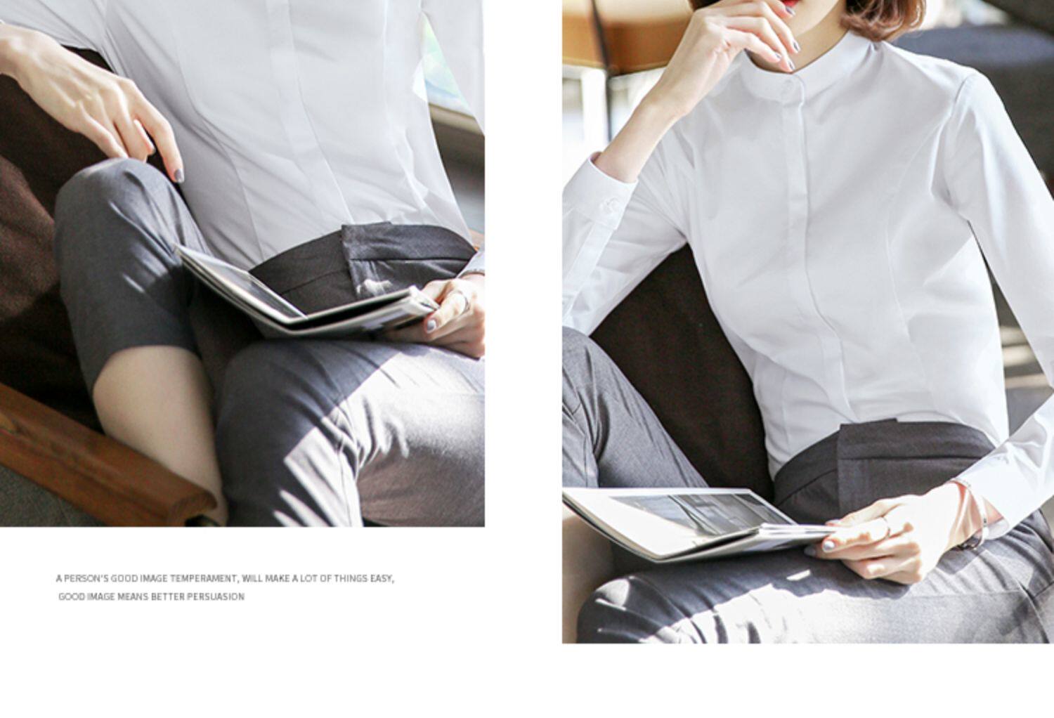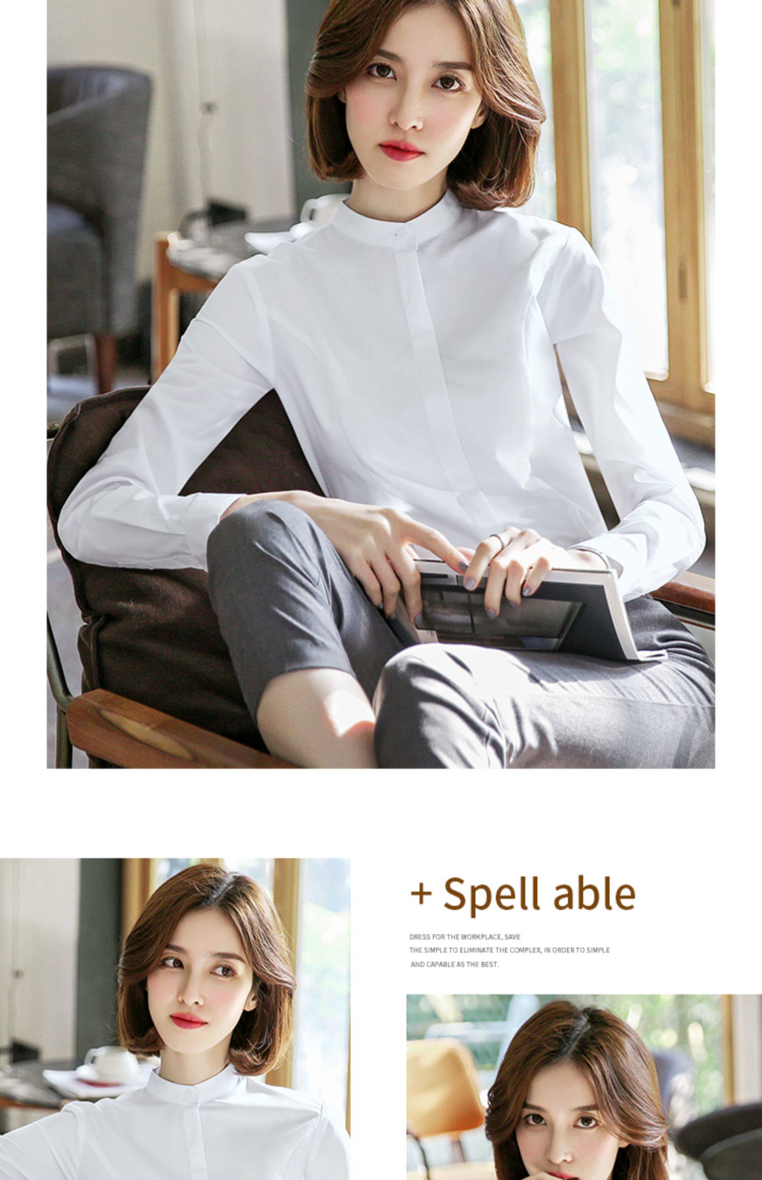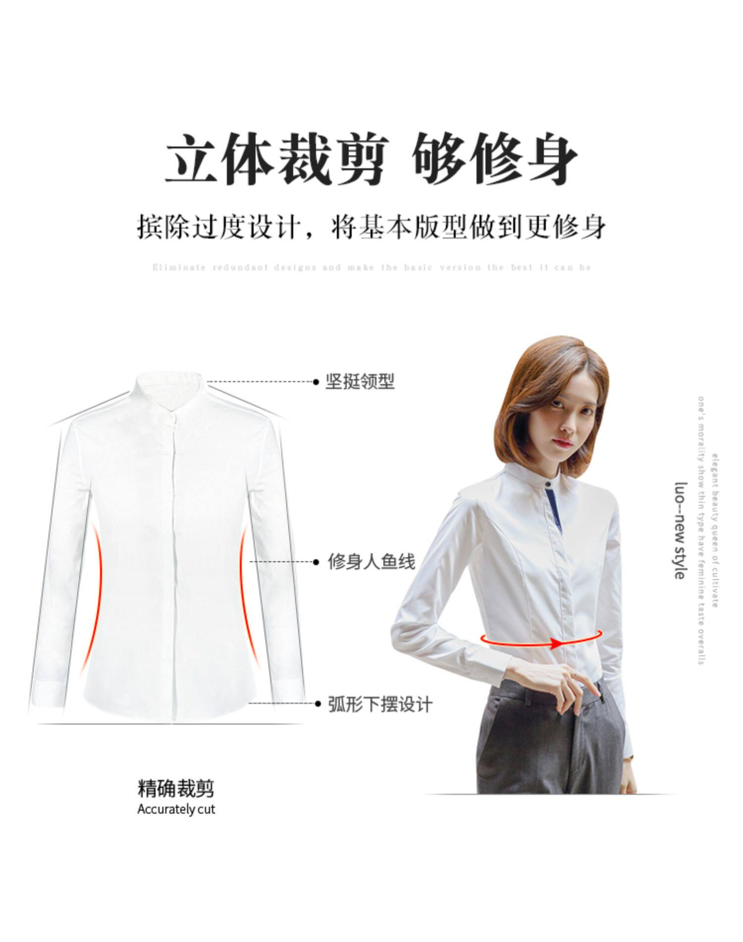 洛禾設計感小衆白色立領職業襯衫女長袖2025春裝新款撞色拼接襯衣