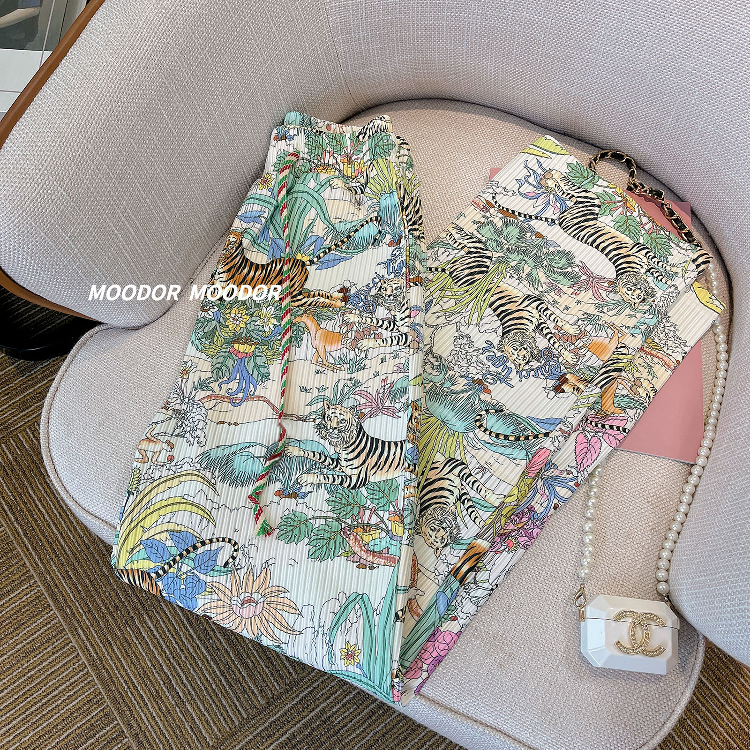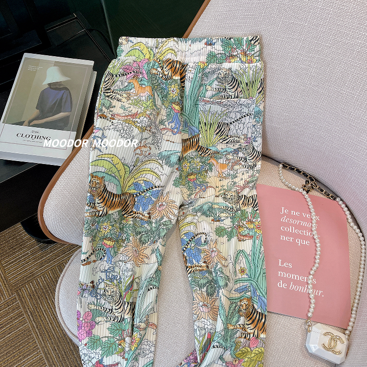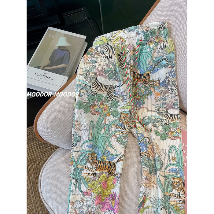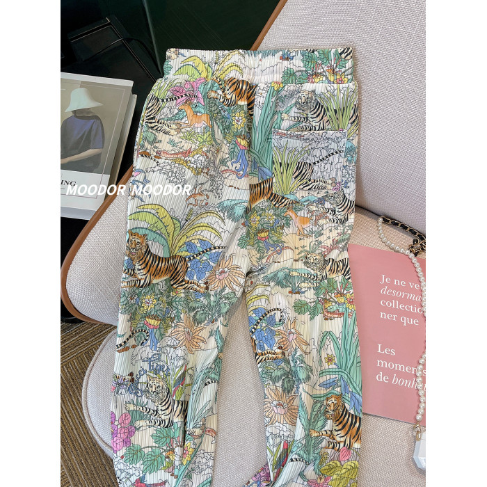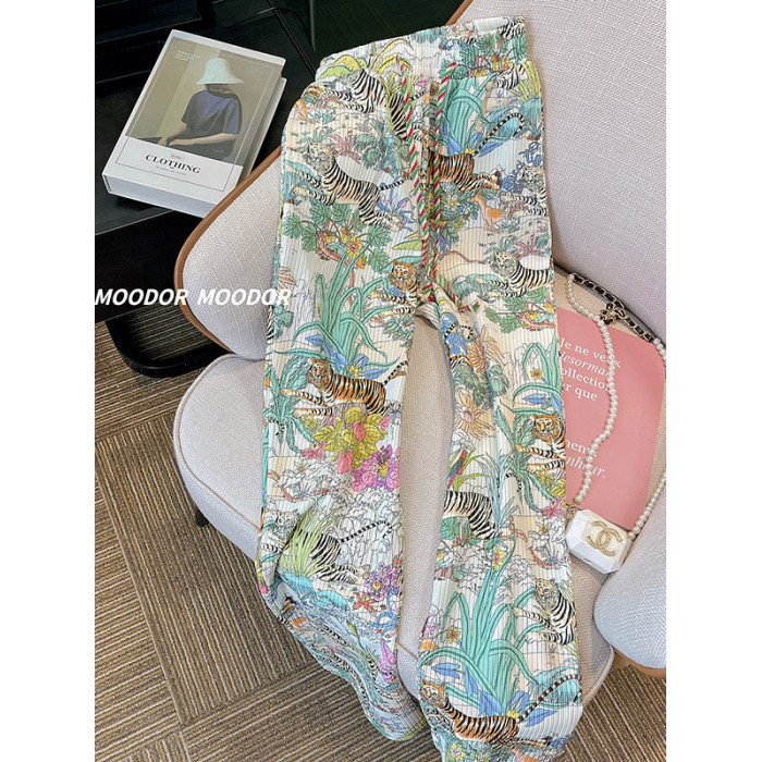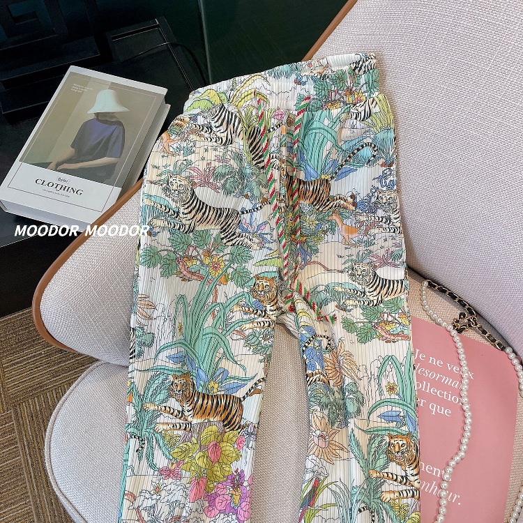 撿漏出口剪標~老虎印花濶腿褲女夏季新款直筒垂感休閒褲