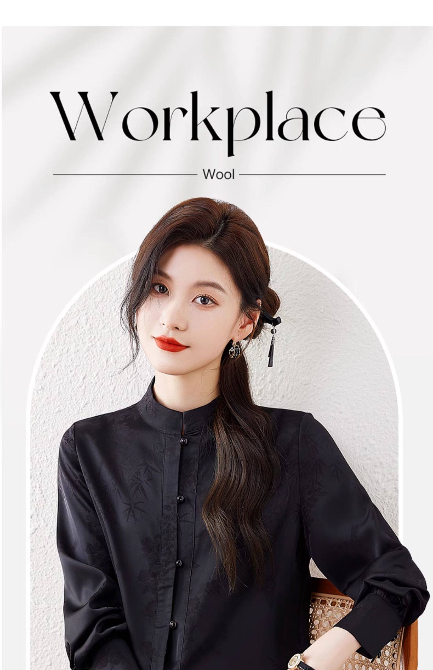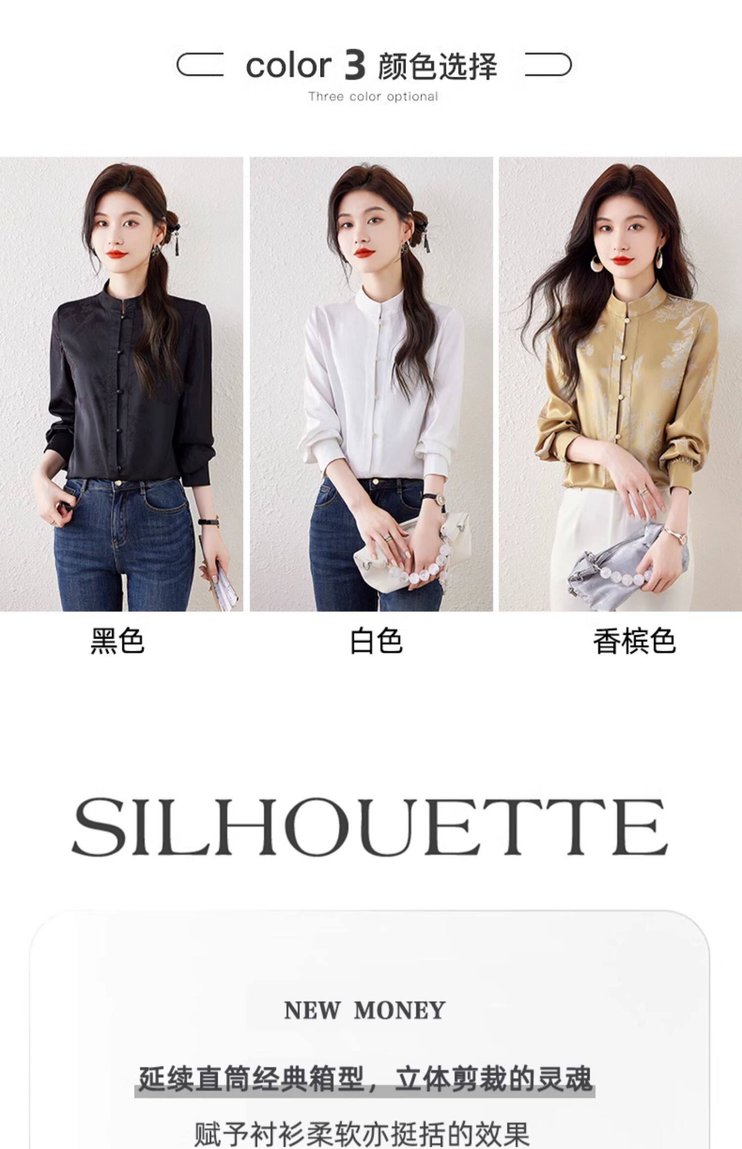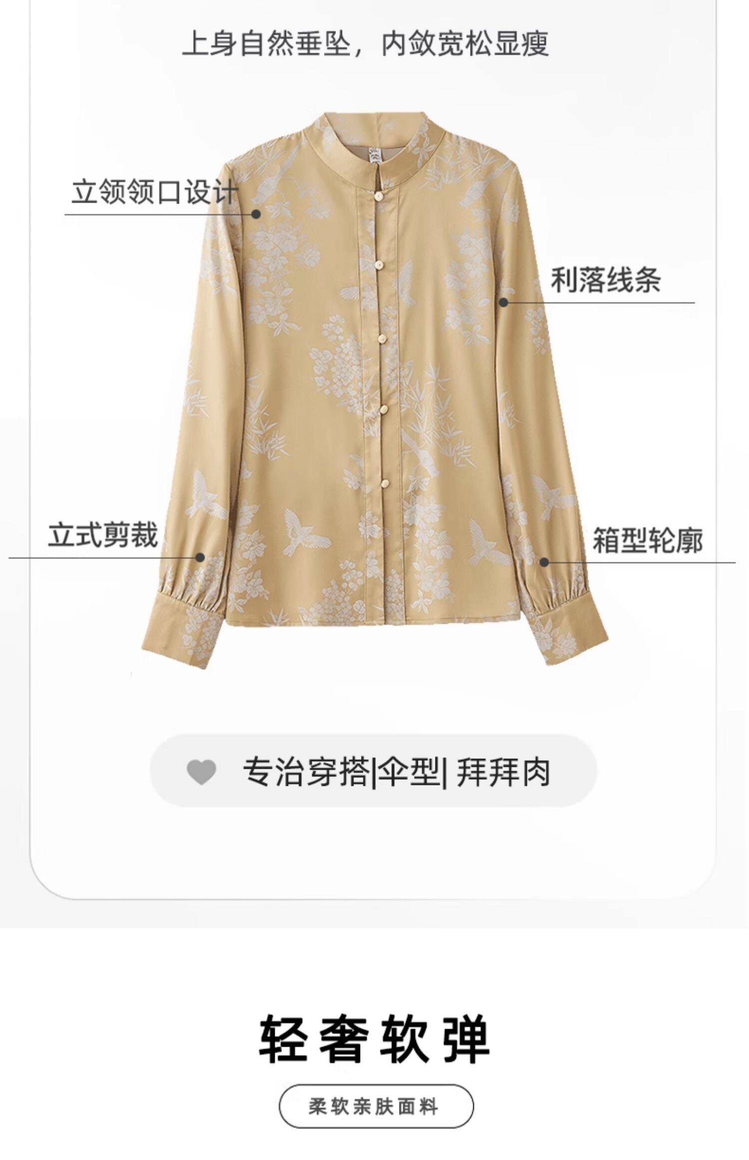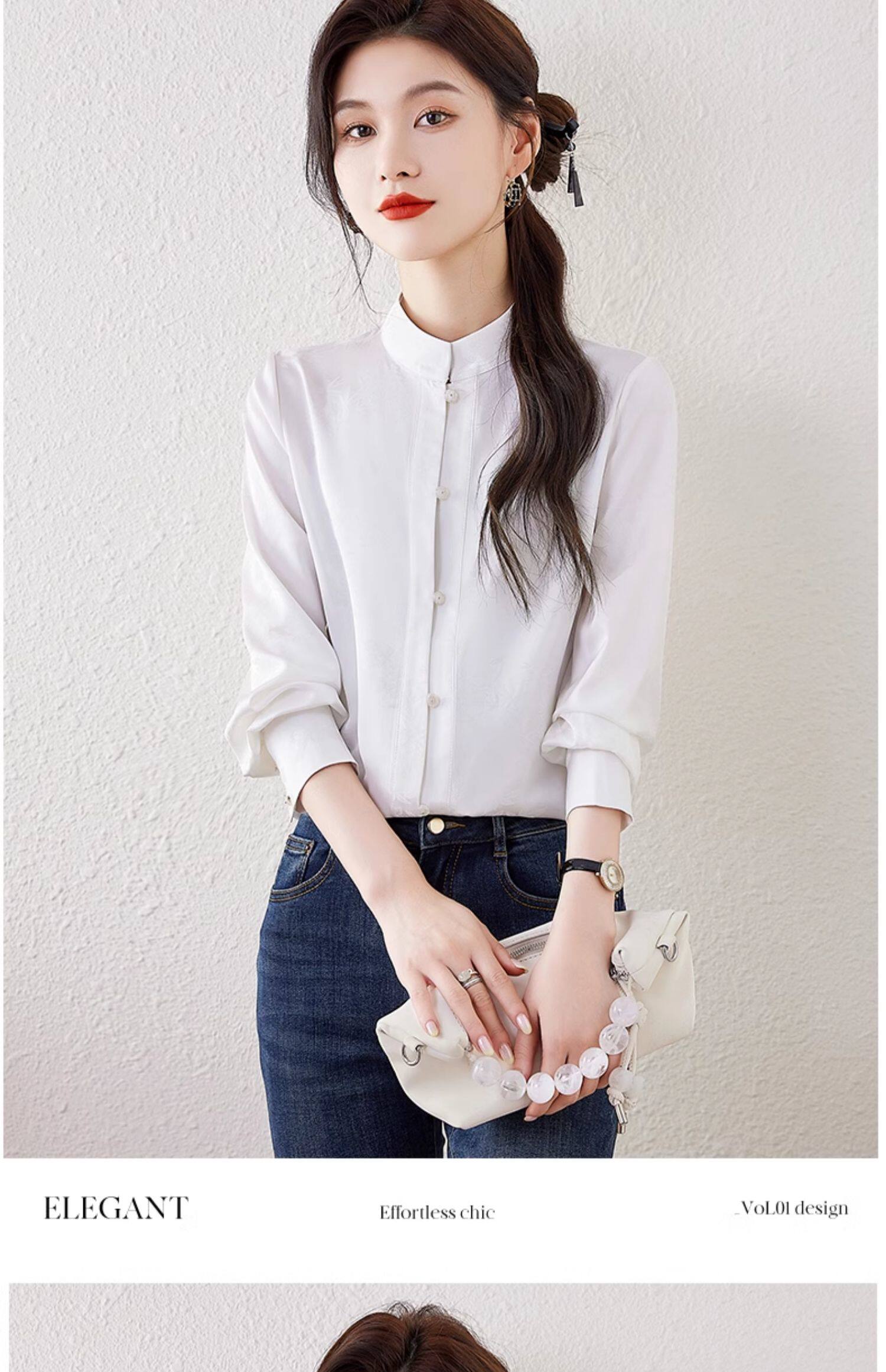 新中式國風長袖襯衫女士春裝新款復古氣質立領襯衣高級感緞面上衣