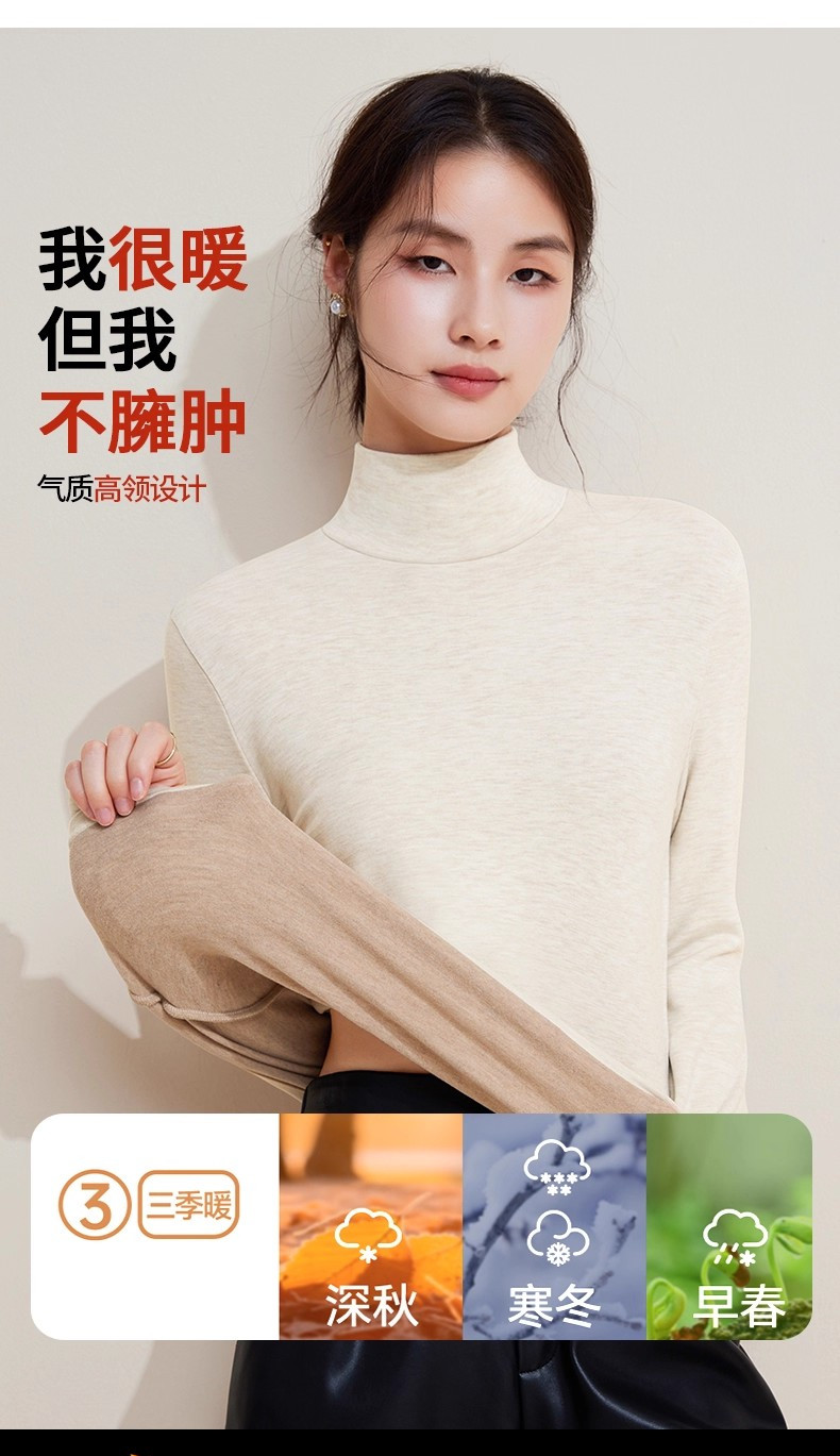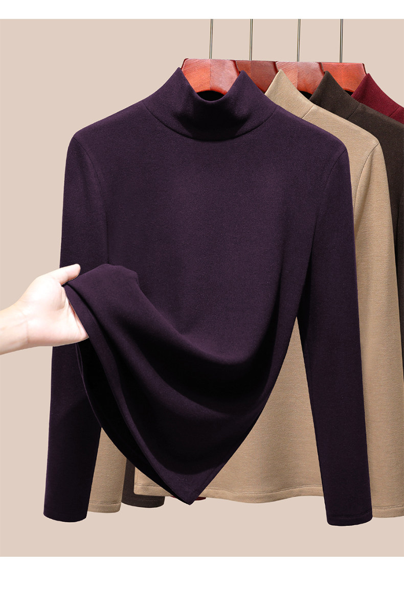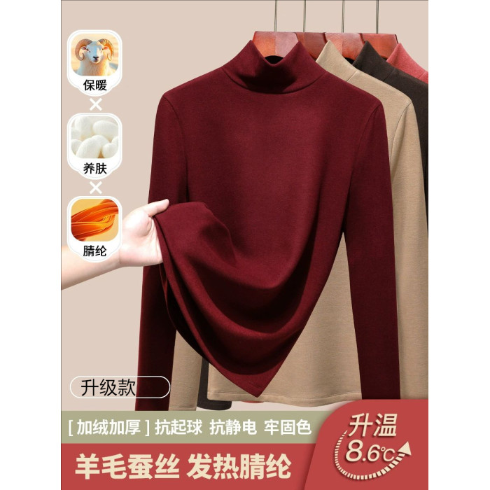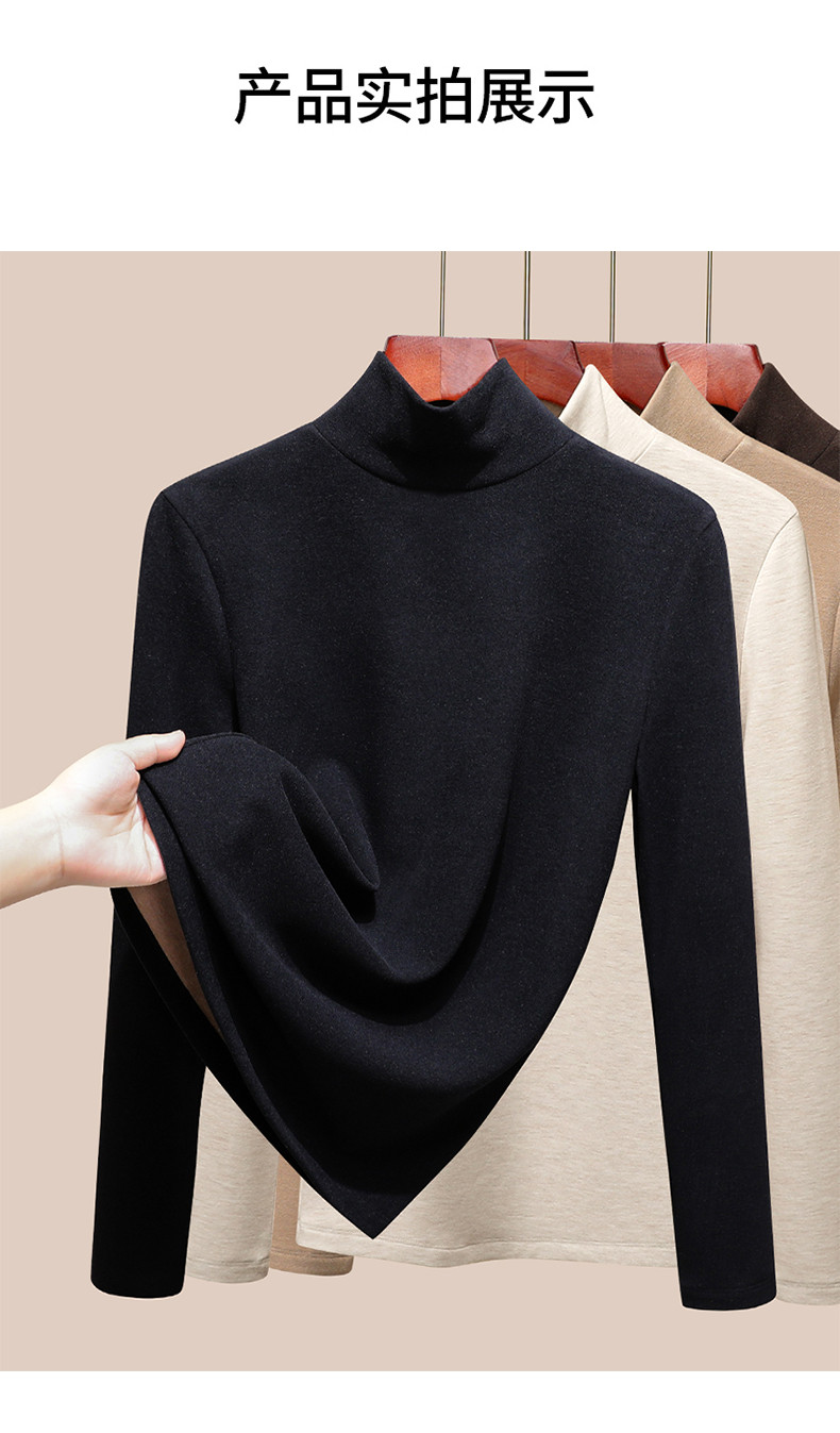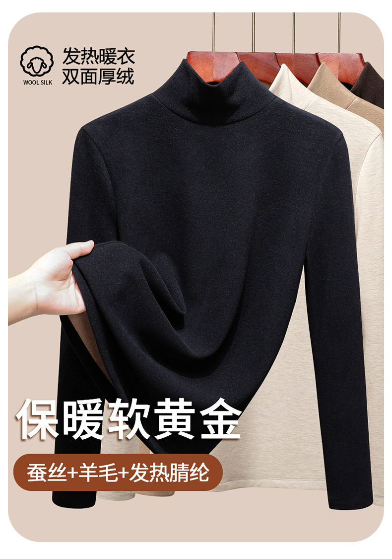發熱保暖雙面腈綸加絨加厚高級蠶絲大碼正肩打底衫高領長袖t恤女