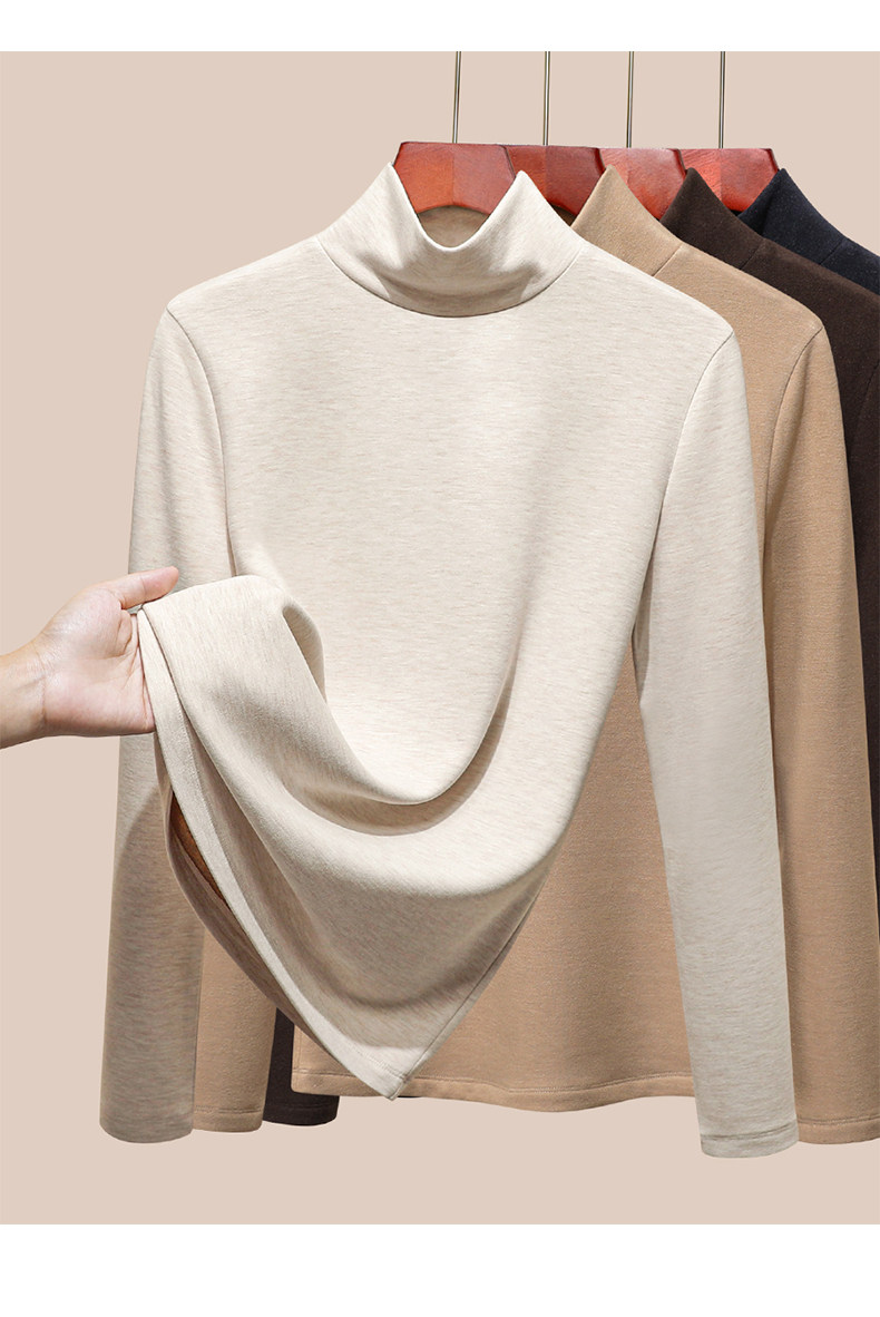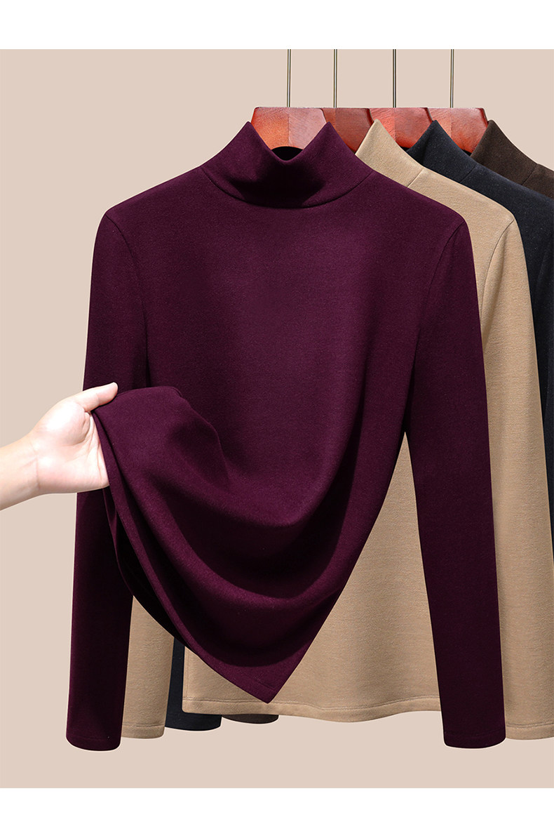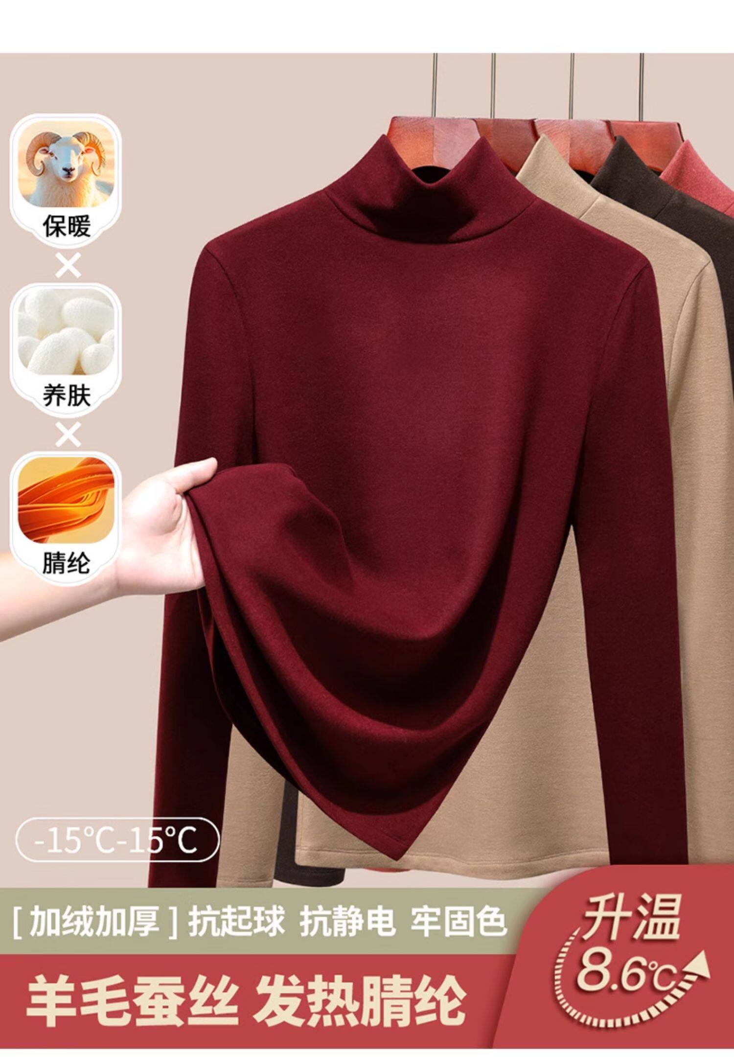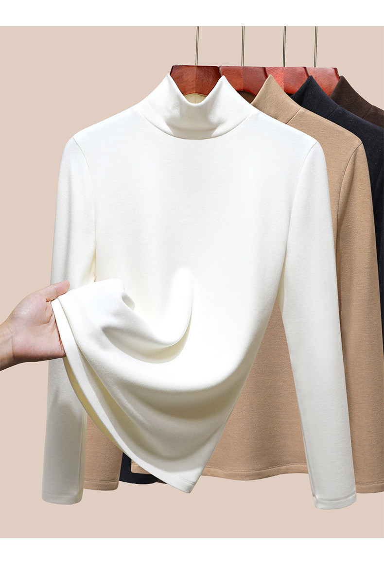 發熱保暖雙面腈綸加絨加厚高級蠶絲大碼正肩打底衫高領長袖t恤女