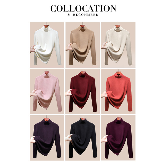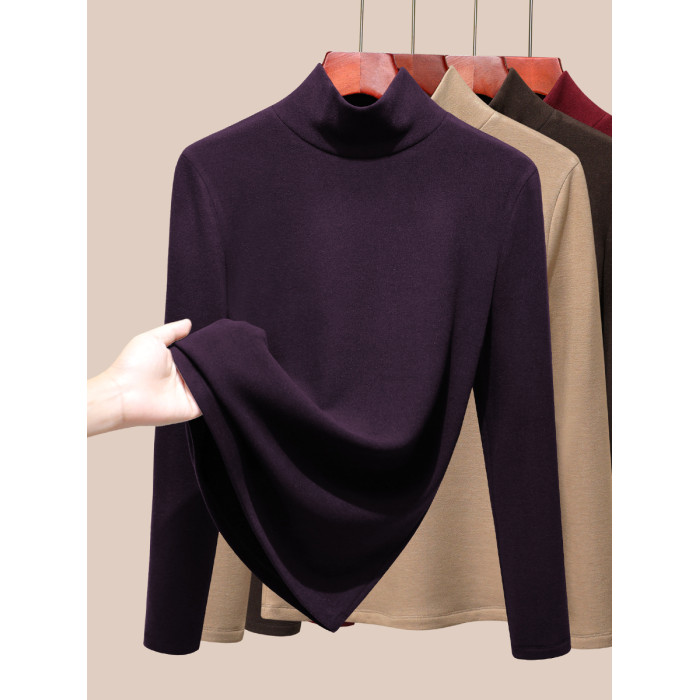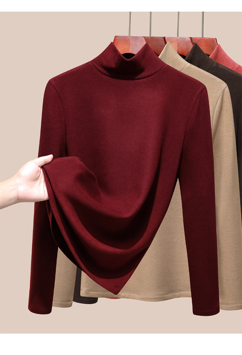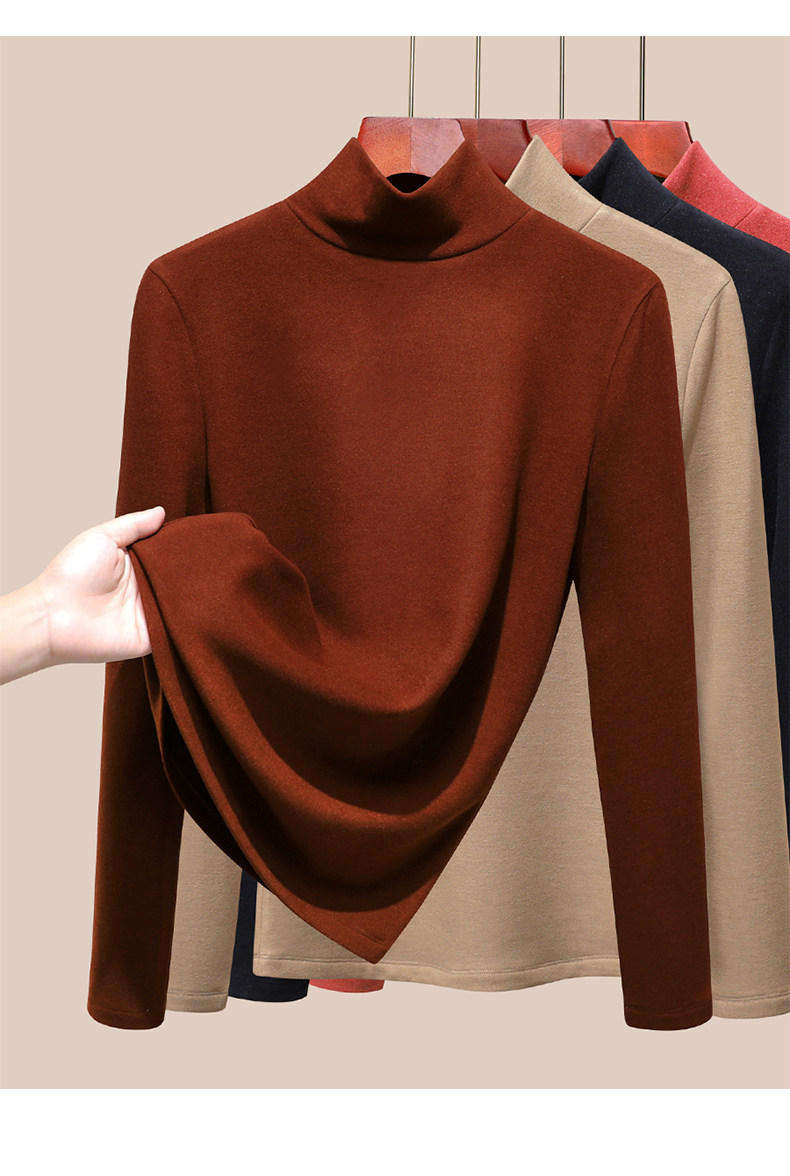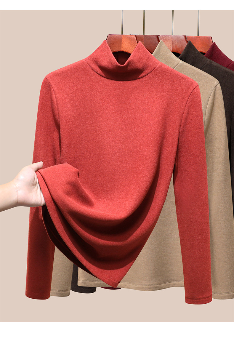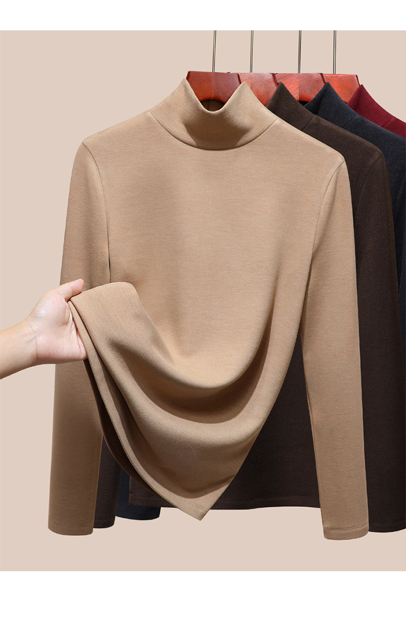 發熱保暖雙面腈綸加絨加厚高級蠶絲大碼正肩打底衫高領長袖t恤女