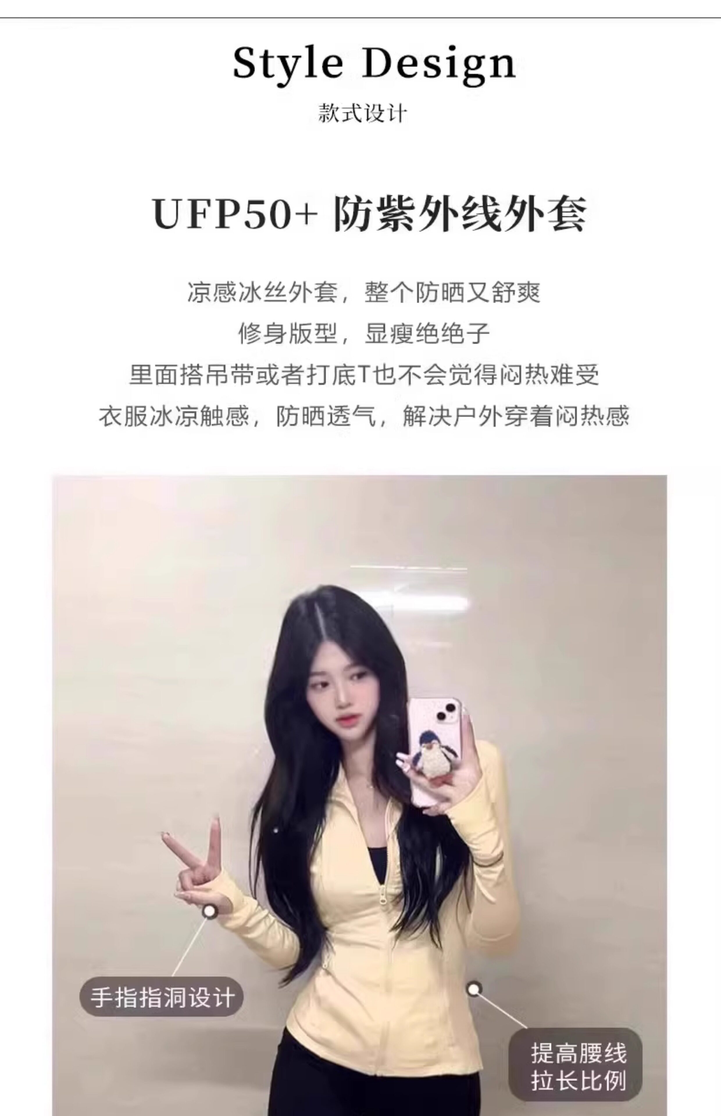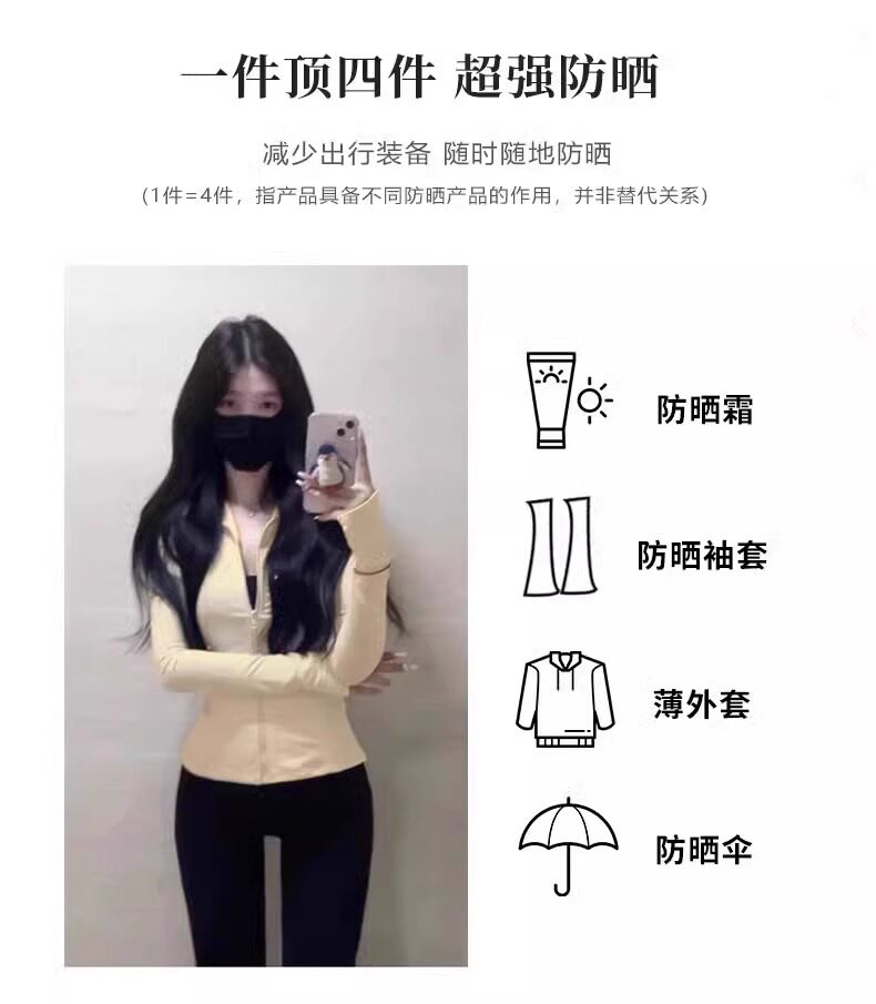 奶油黃修身防曬衣女2025新款立領防曬服運動冰絲瑜珈服健身服收腰