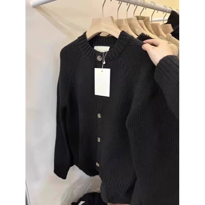 秋冬歐貨輕奢黑色毛衣外套高級感超好看浣熊絨軟糯羊絨針織開衫女