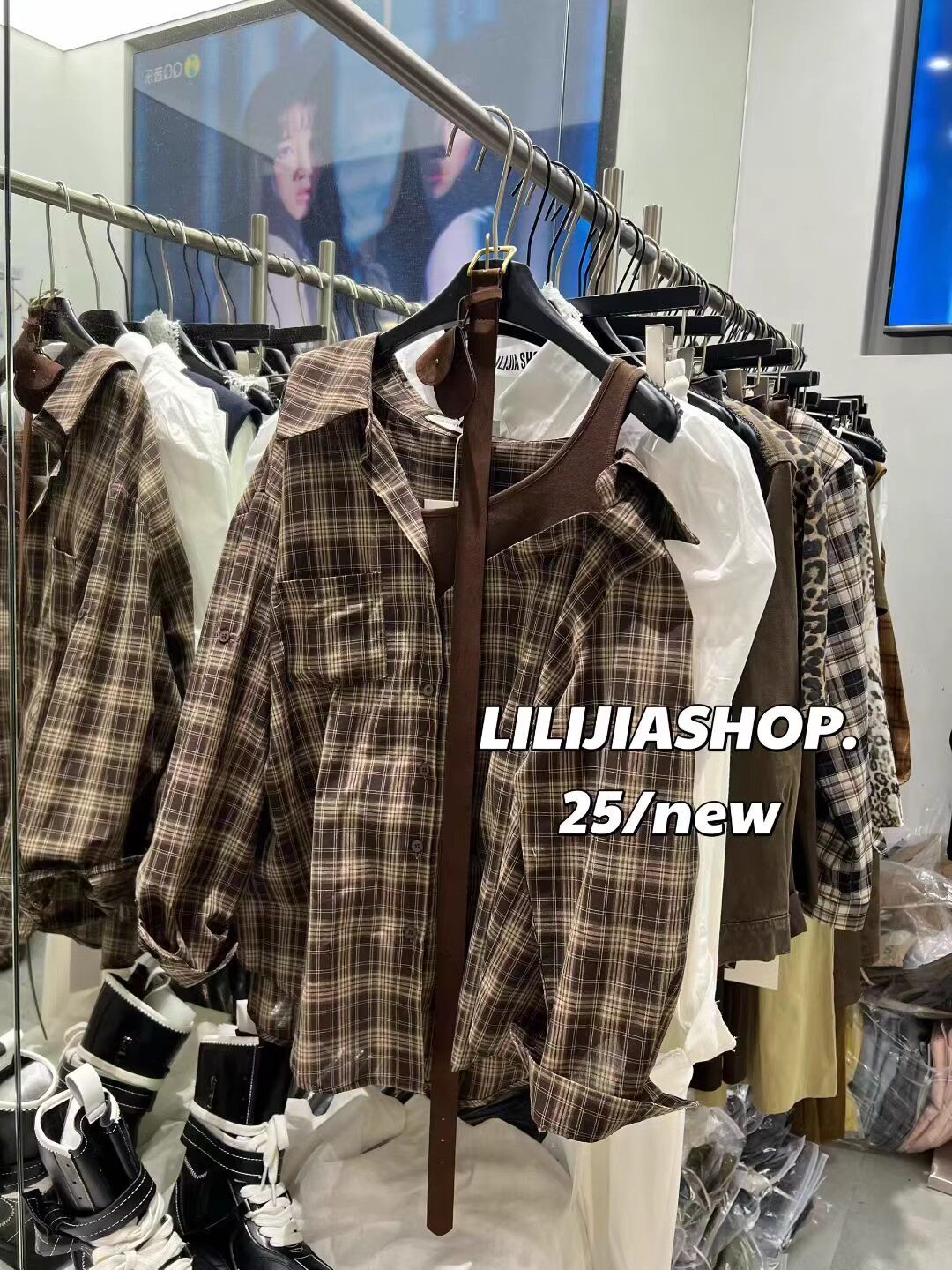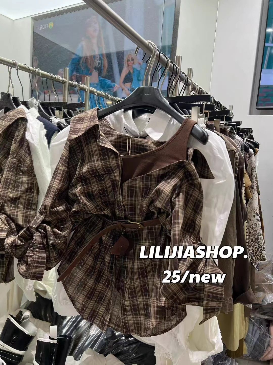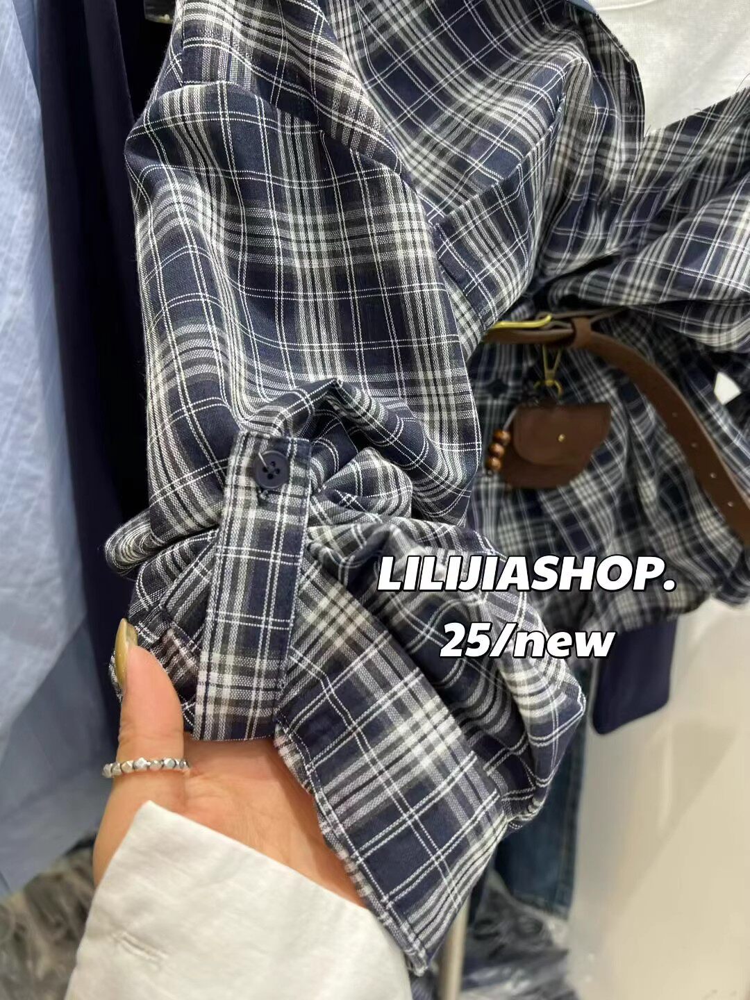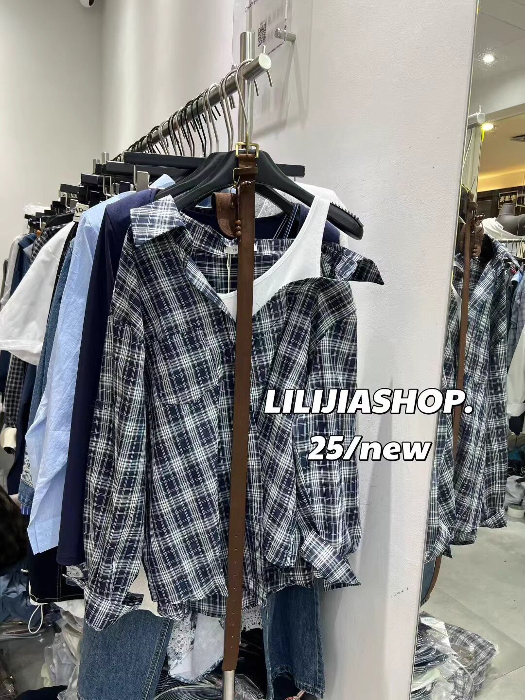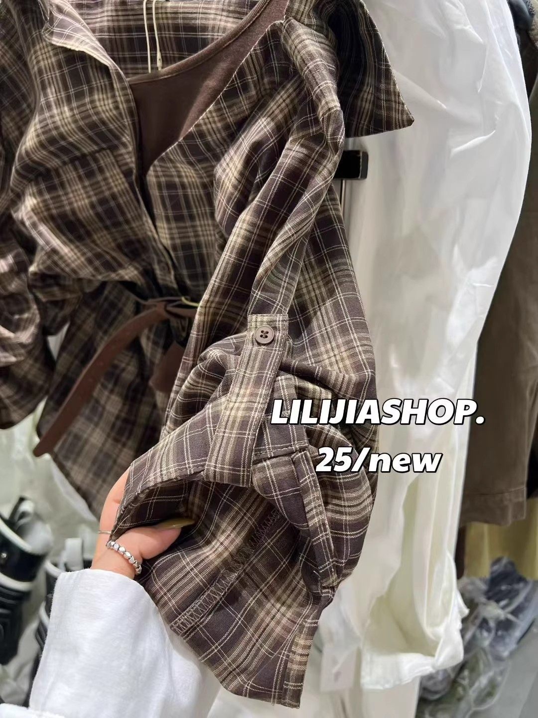 韓國東大門2025秋季新款復古氣質拼接假兩件格子長袖襯衫休閒上衣