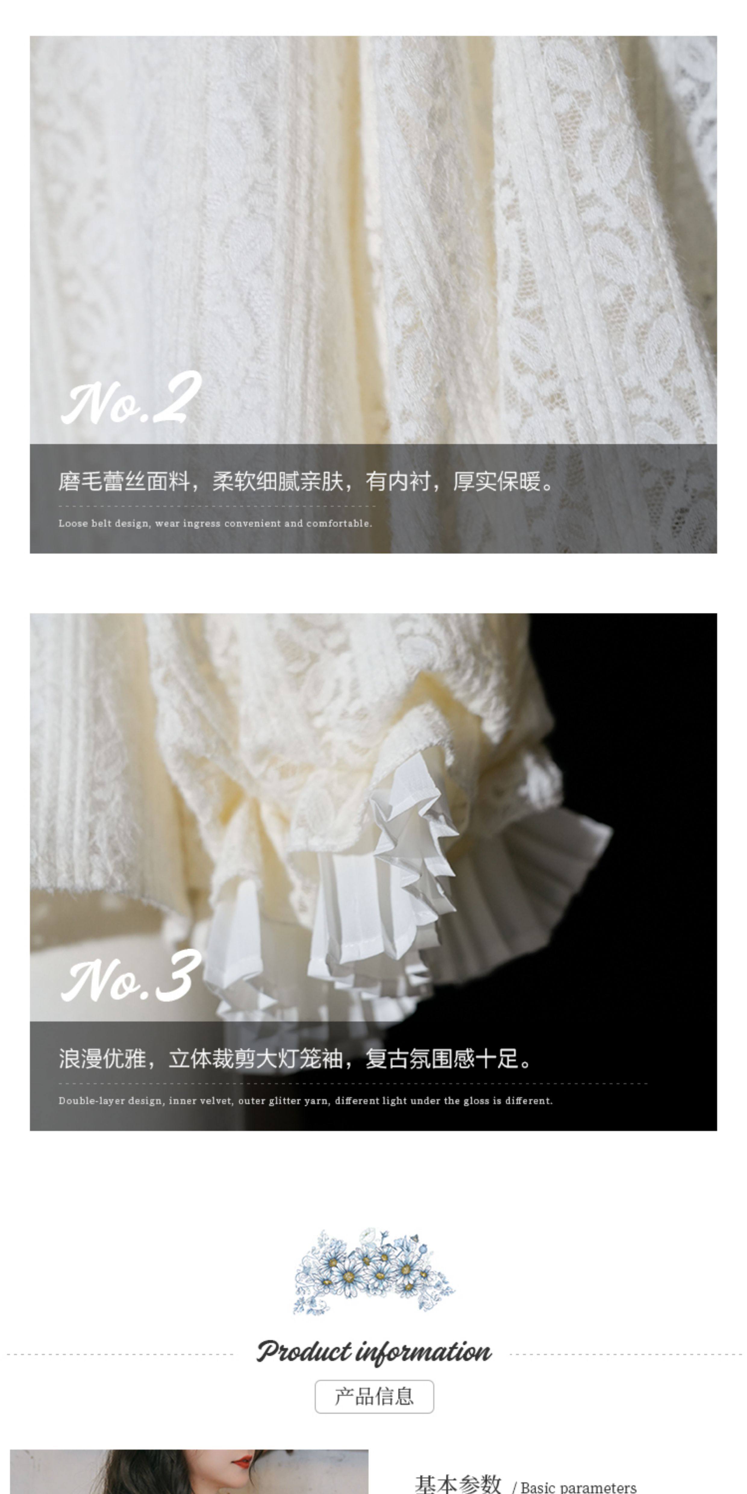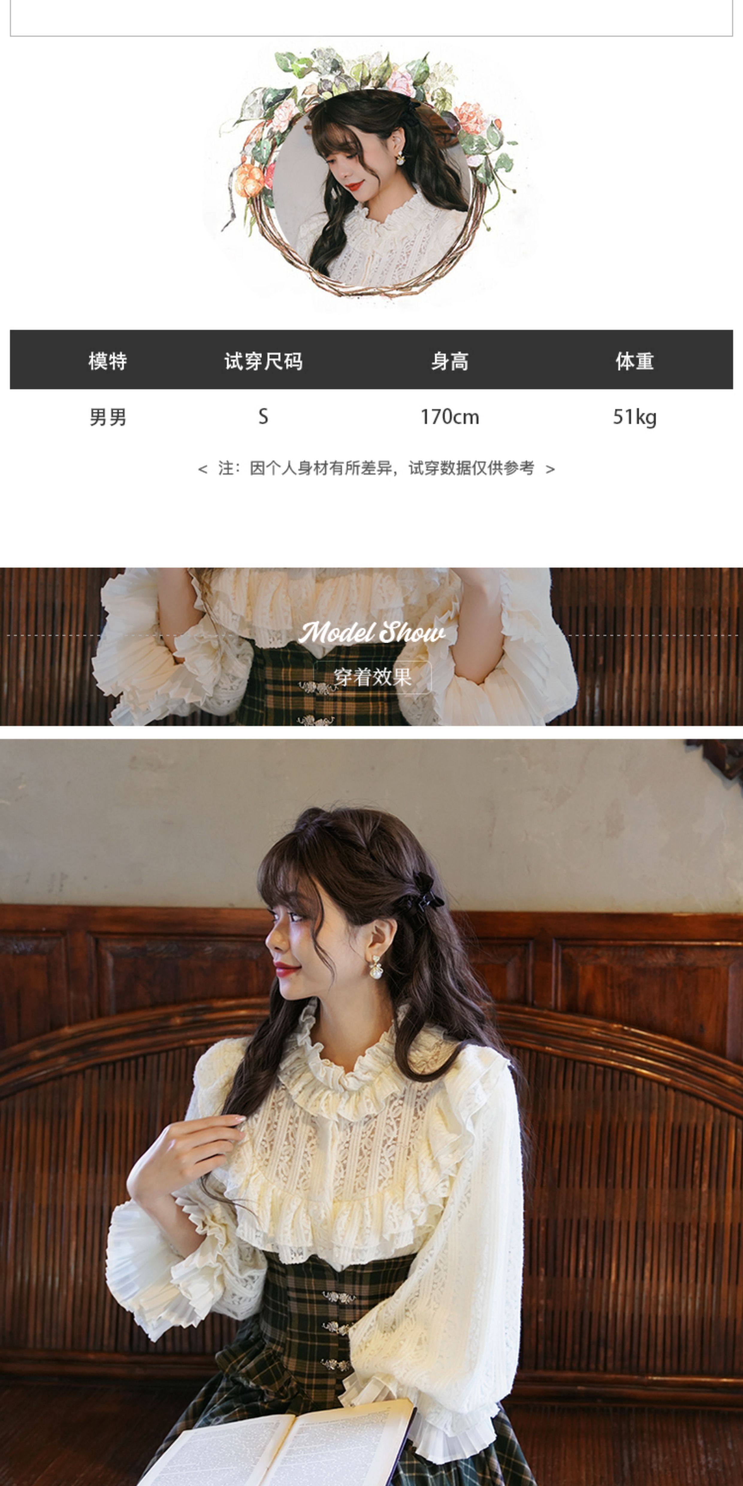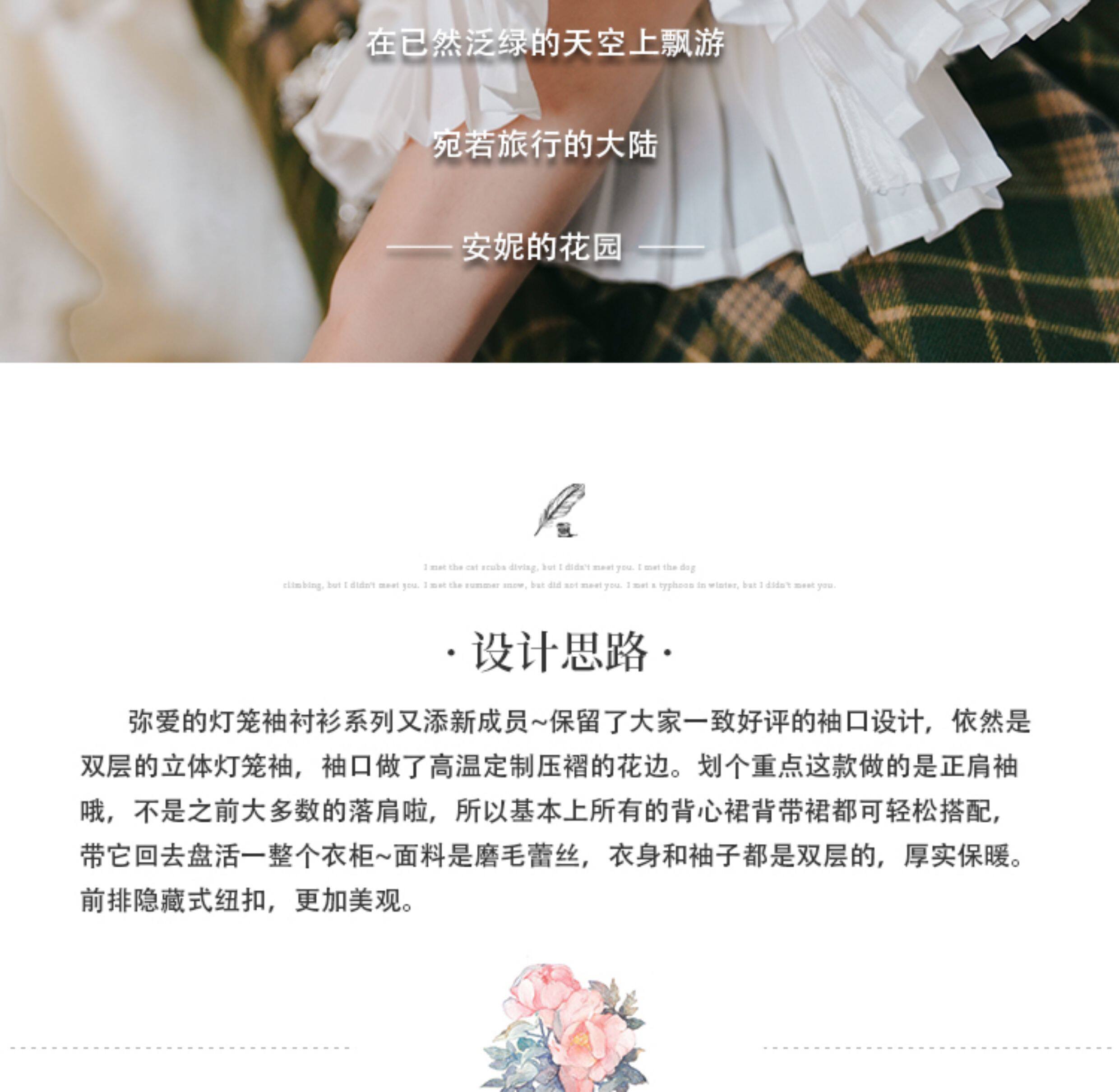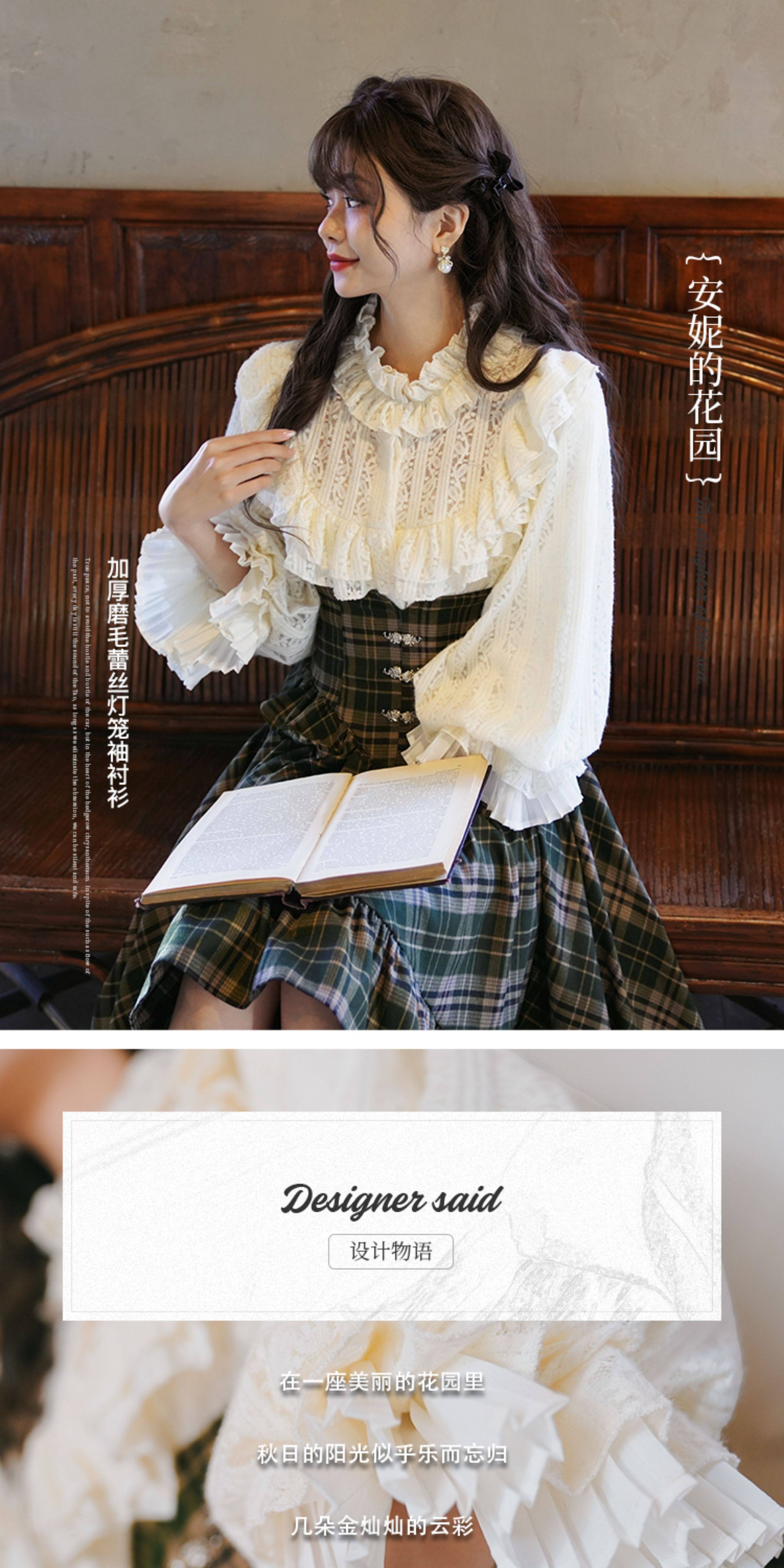 彌愛原創《珍妮的花園》法式復古宮廷加厚磨毛蕾絲燈籠袖襯衫秋冬