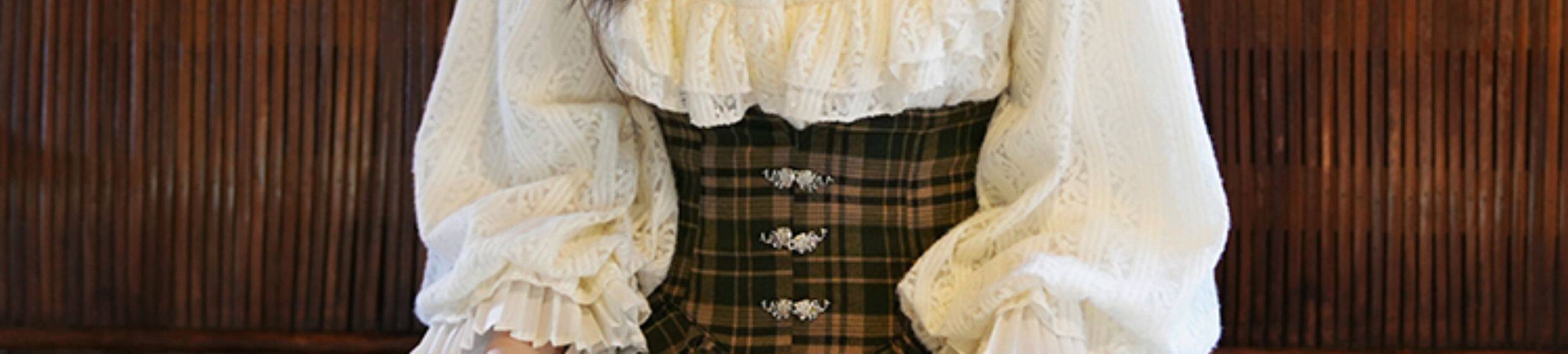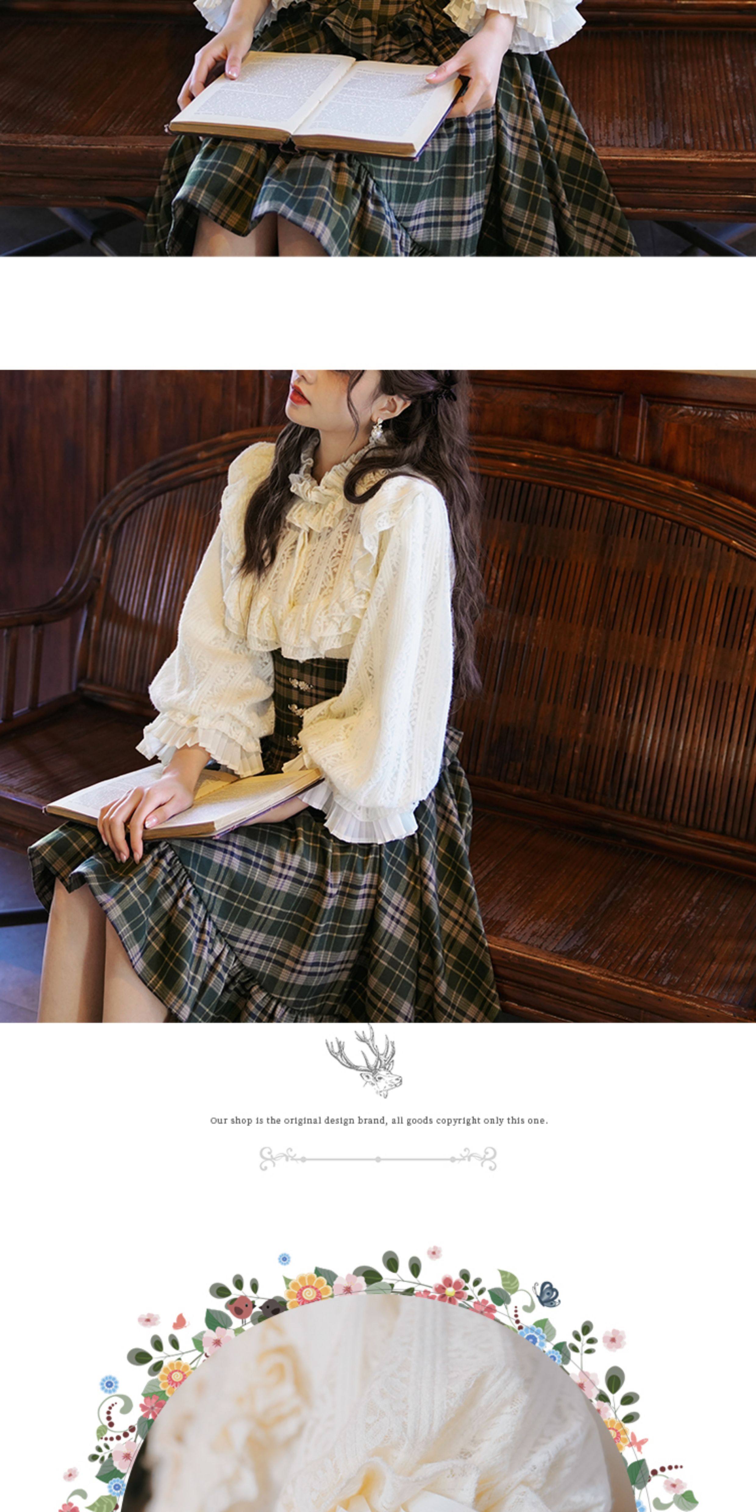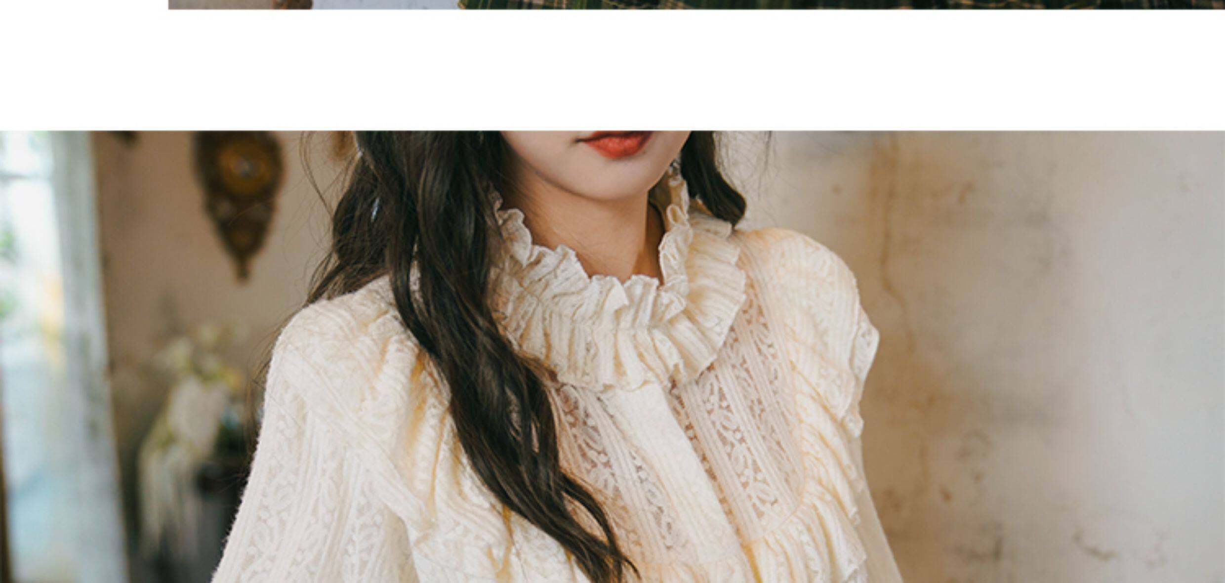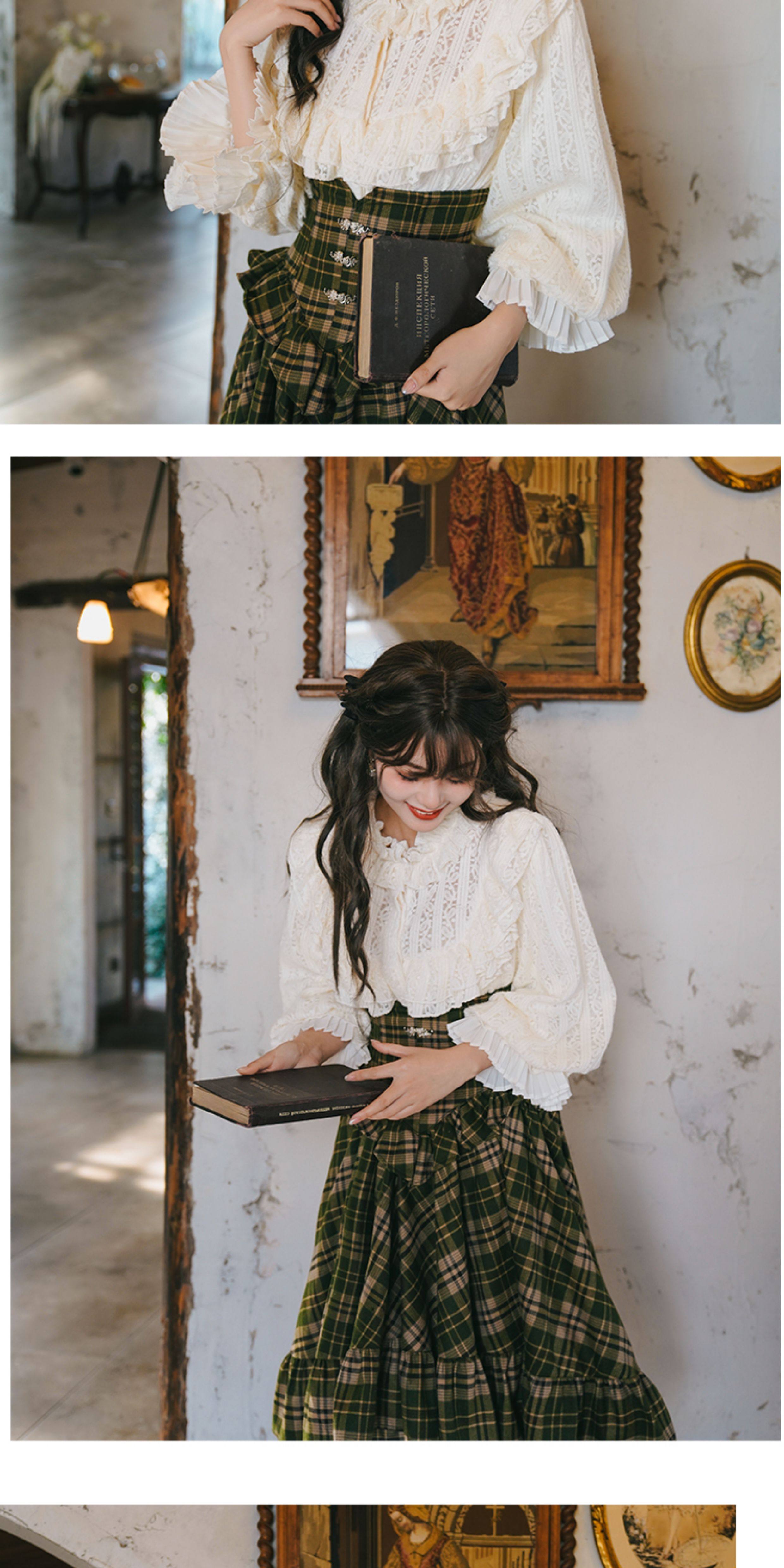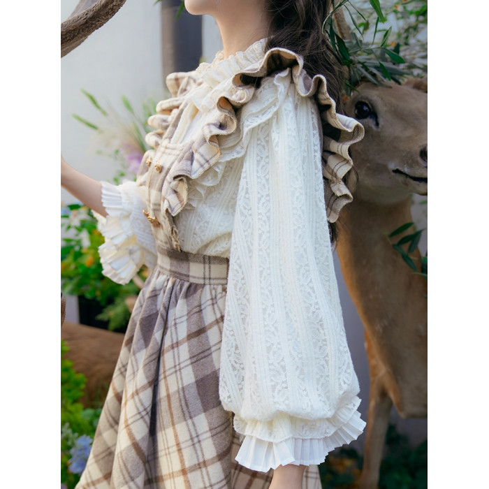 彌愛原創《珍妮的花園》法式復古宮廷加厚磨毛蕾絲燈籠袖襯衫秋冬