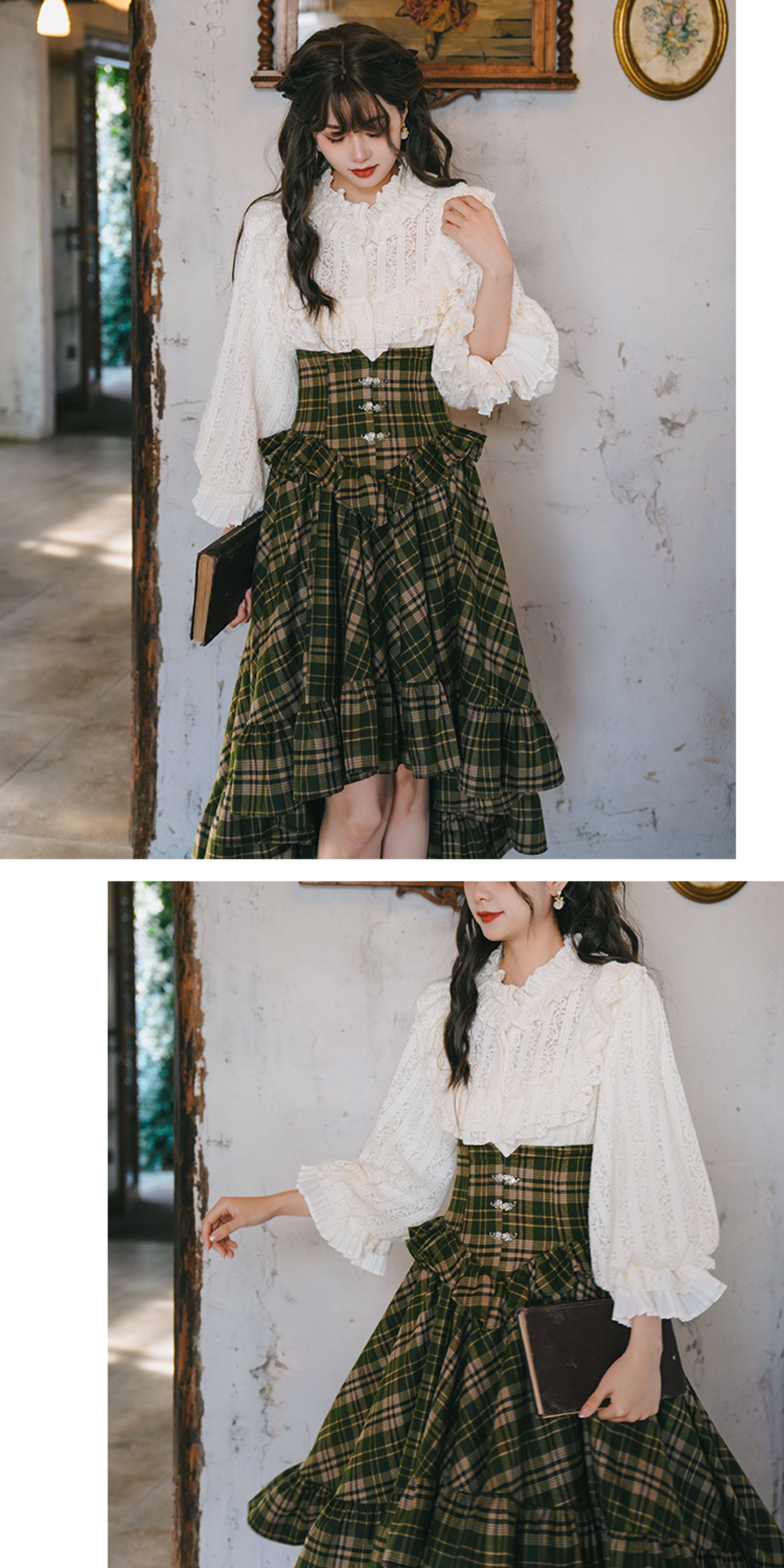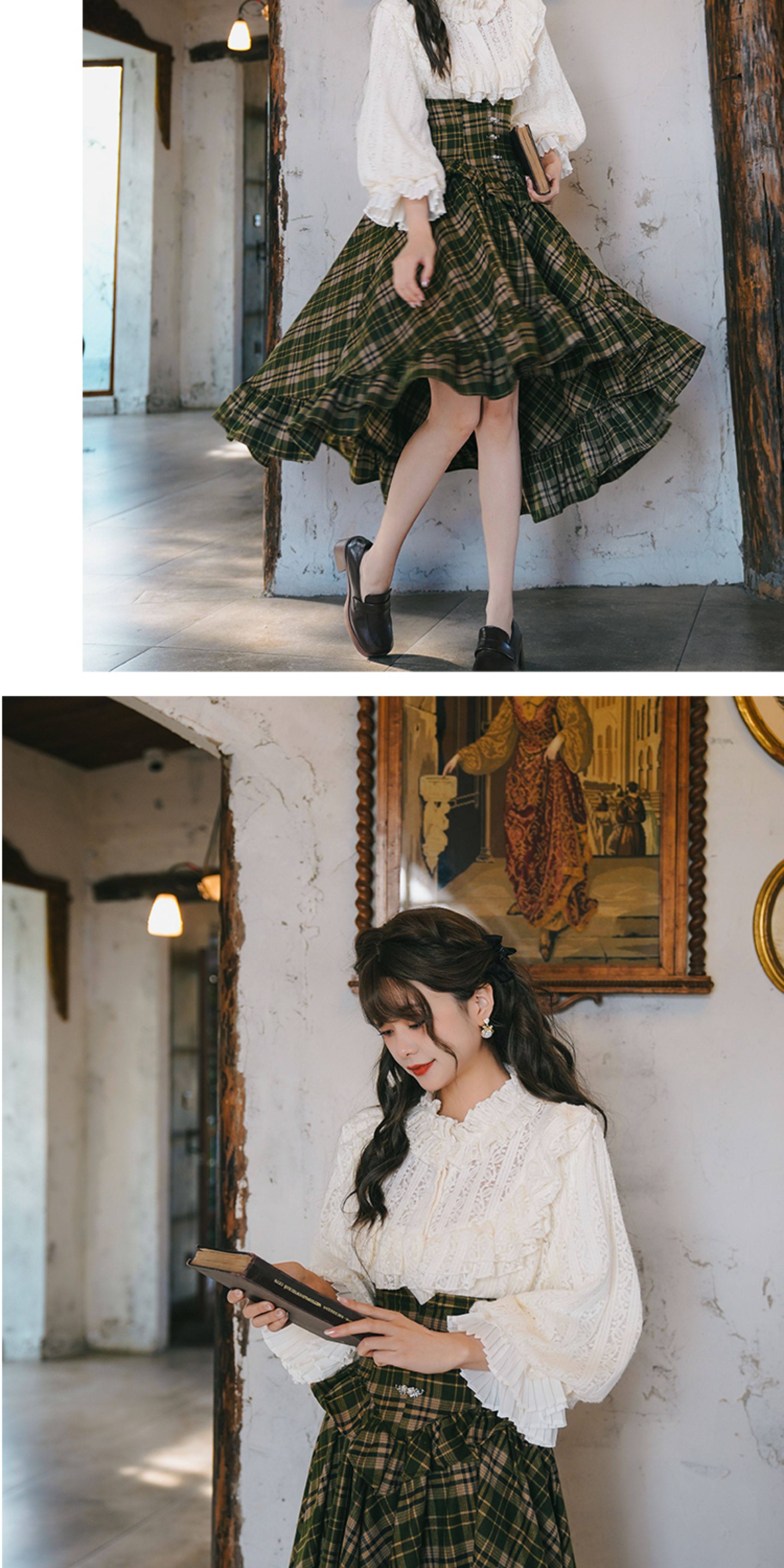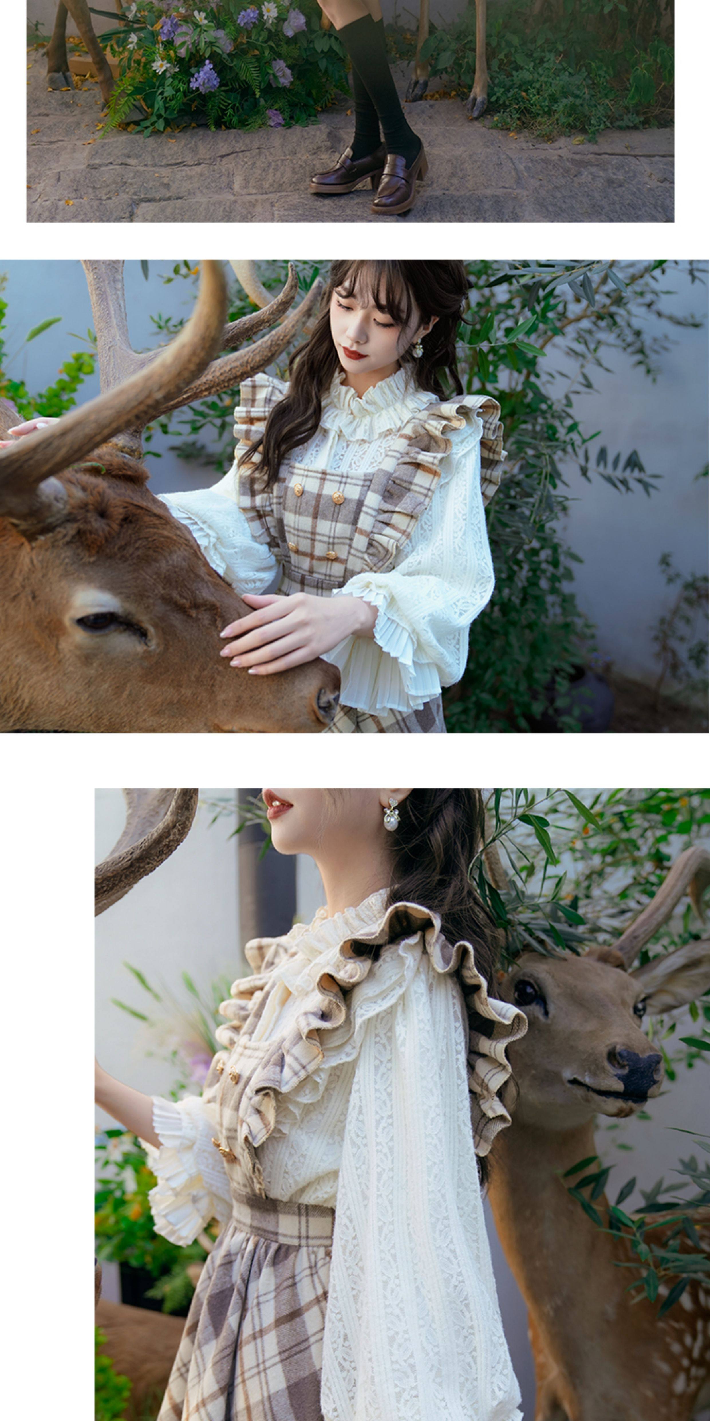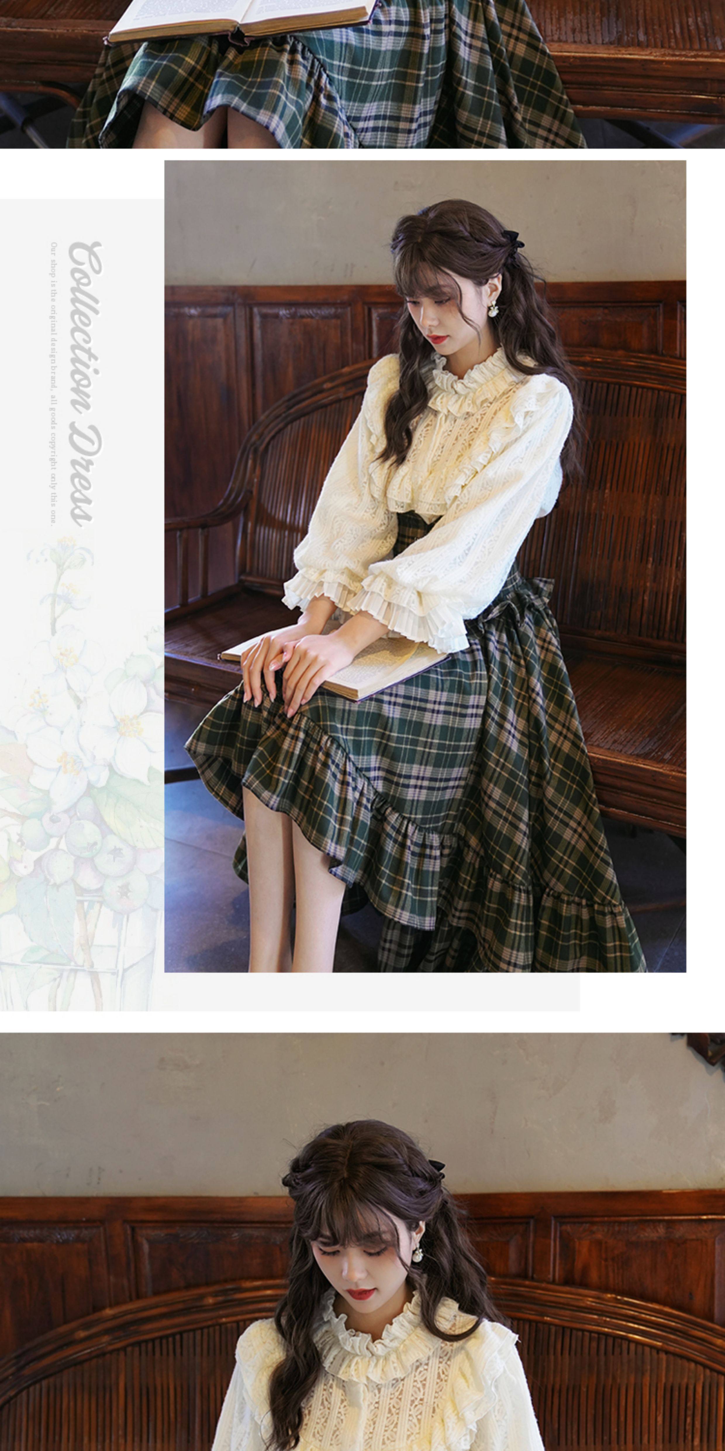 彌愛原創《珍妮的花園》法式復古宮廷加厚磨毛蕾絲燈籠袖襯衫秋冬