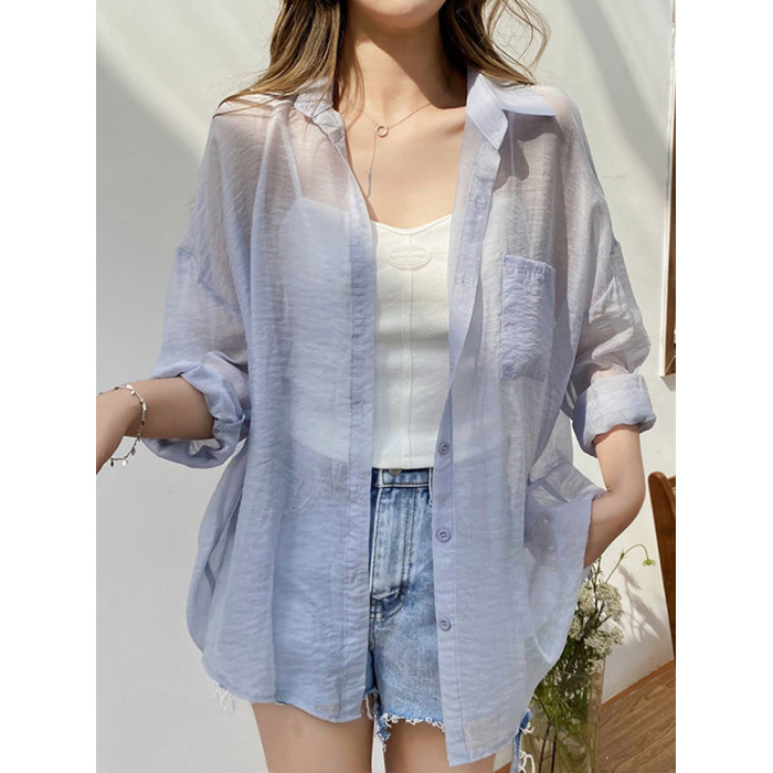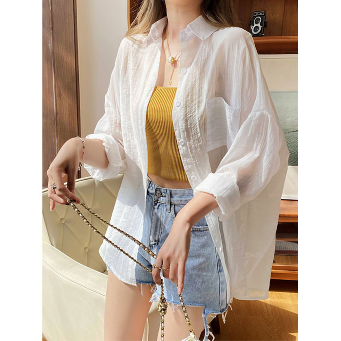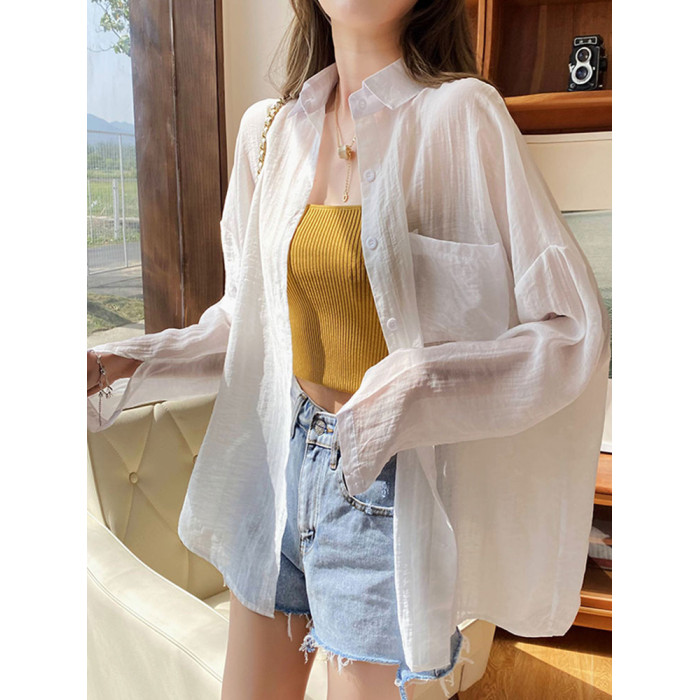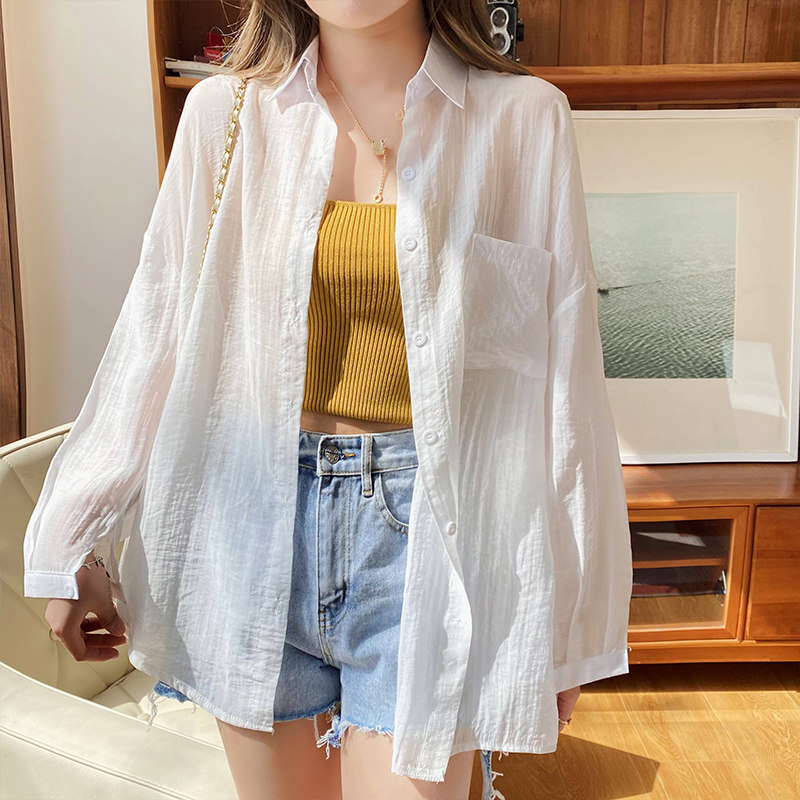 防曬襯衣女披肩外搭2026夏季新款寬鬆防曬服開衫上衣透氣輕薄外套