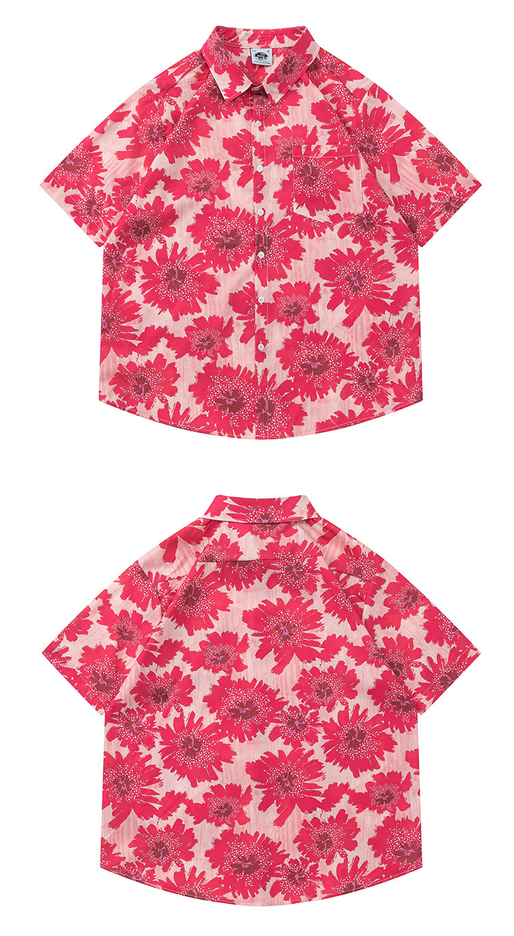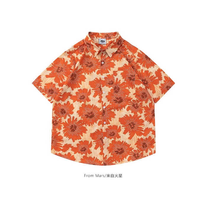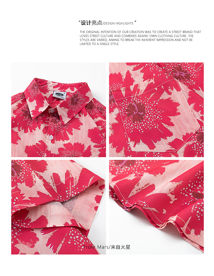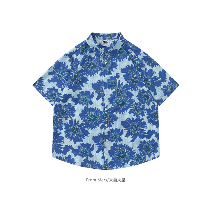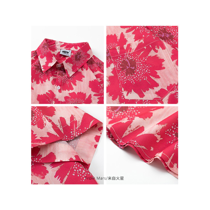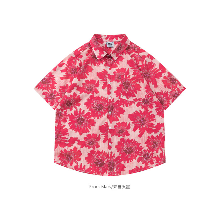 From Mars 花開正好 夏威夷風碎花滿印短袖襯衫寬鬆休閒情侶潮ins