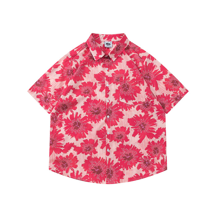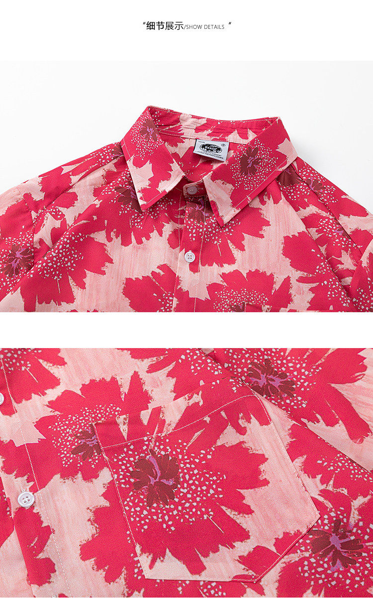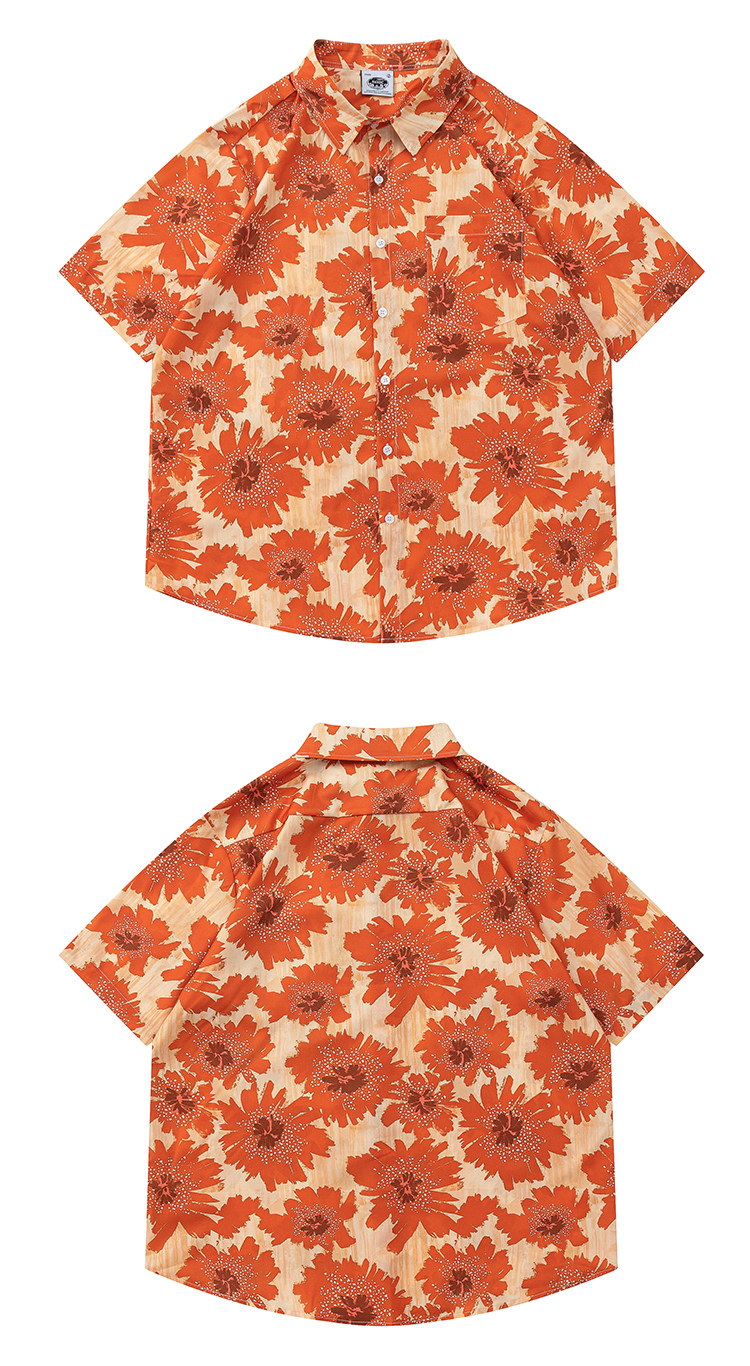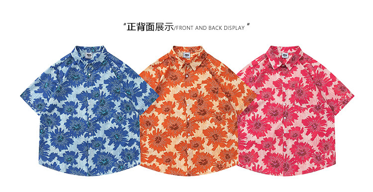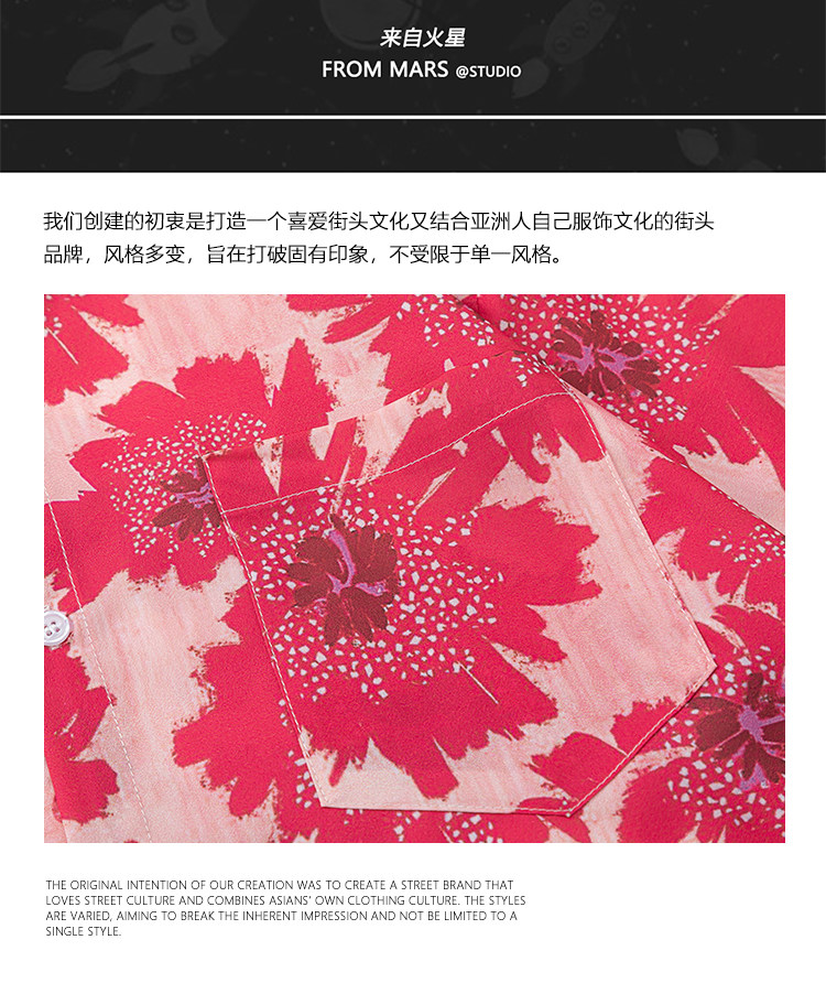 From Mars 花開正好 夏威夷風碎花滿印短袖襯衫寬鬆休閒情侶潮ins