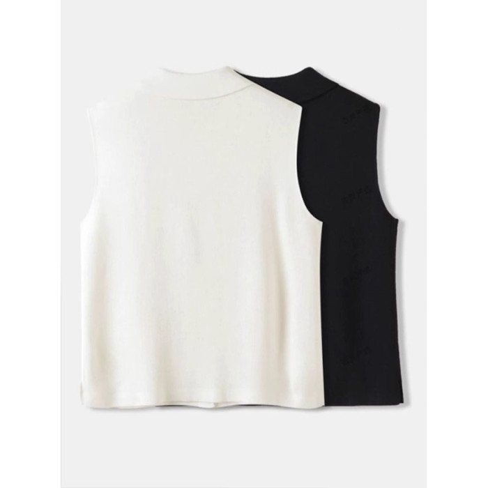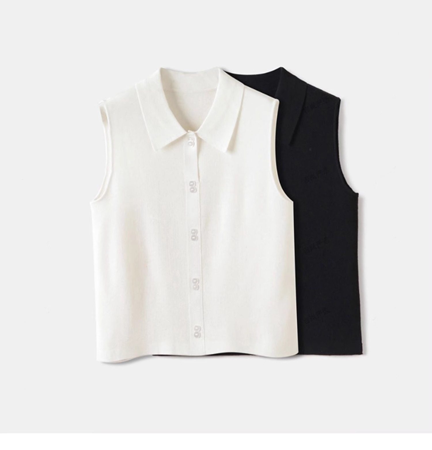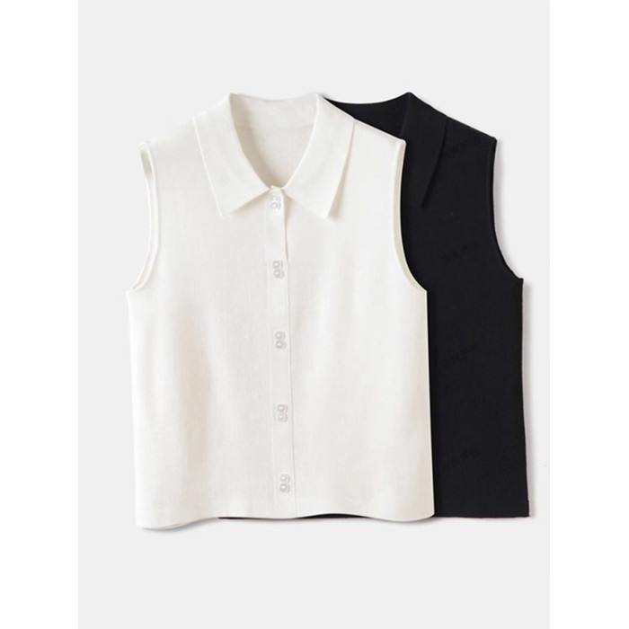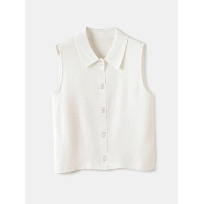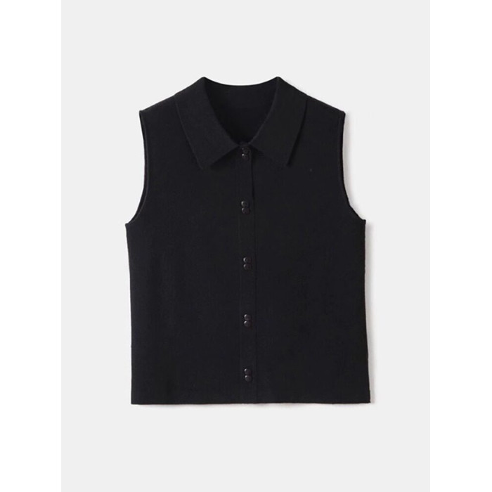 襯衫領針織背心女美利奴羊毛無袖打底衫馬甲繙領曡穿內搭無袖襯衫