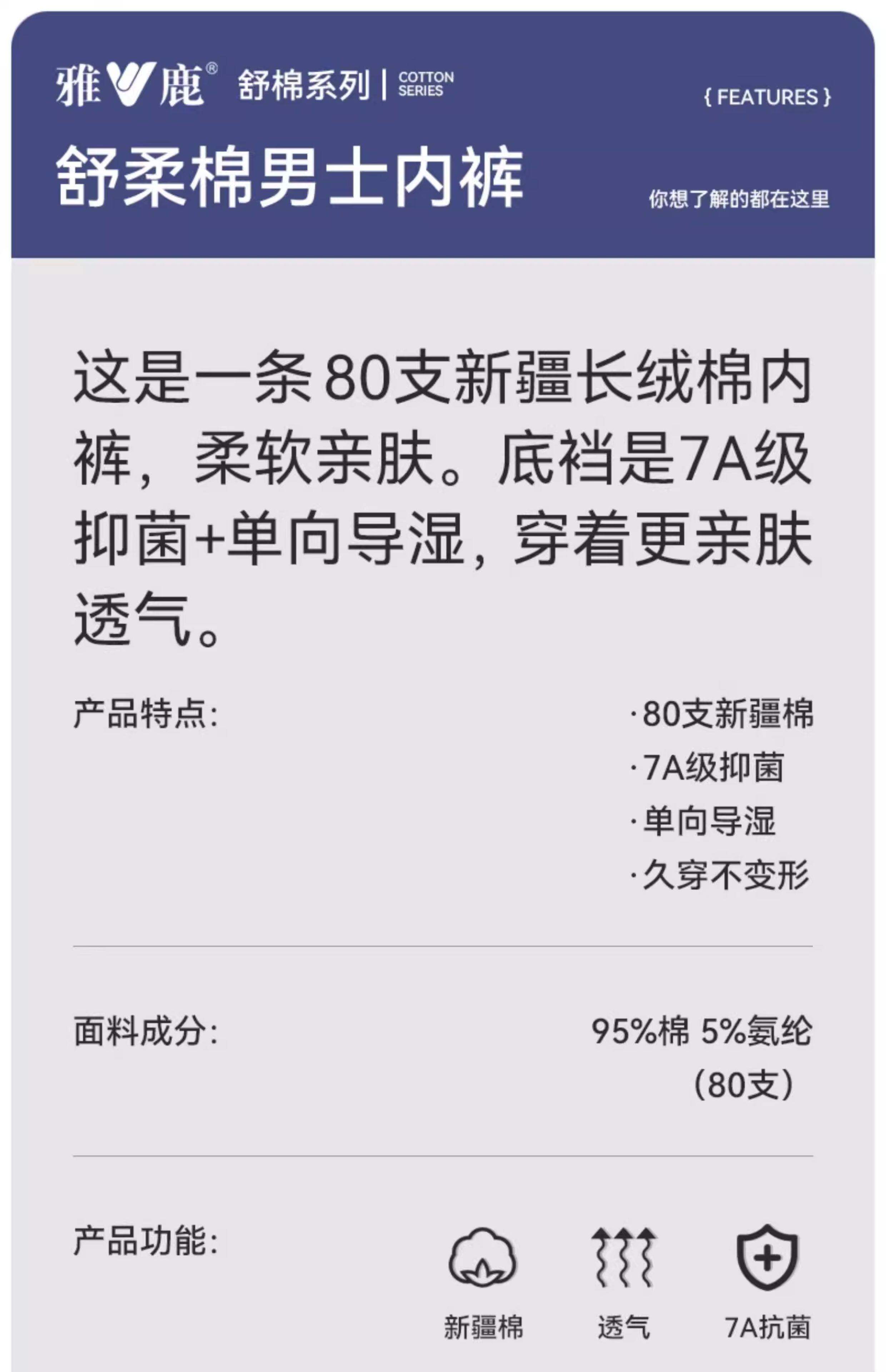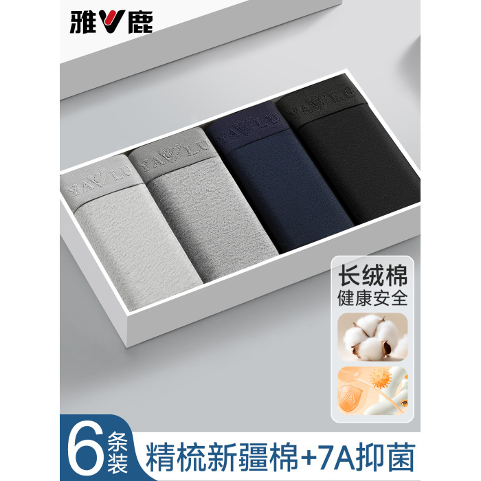 雅鹿純棉男士內褲平角短褲頭透氣四角褲衩抗菌襠2026新款男生男款