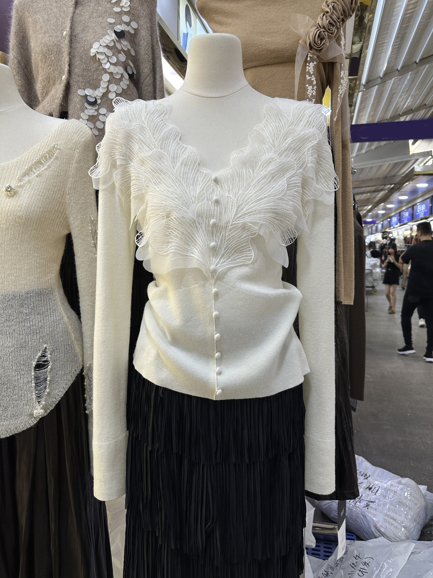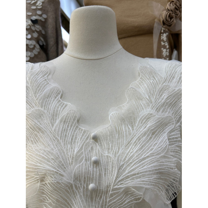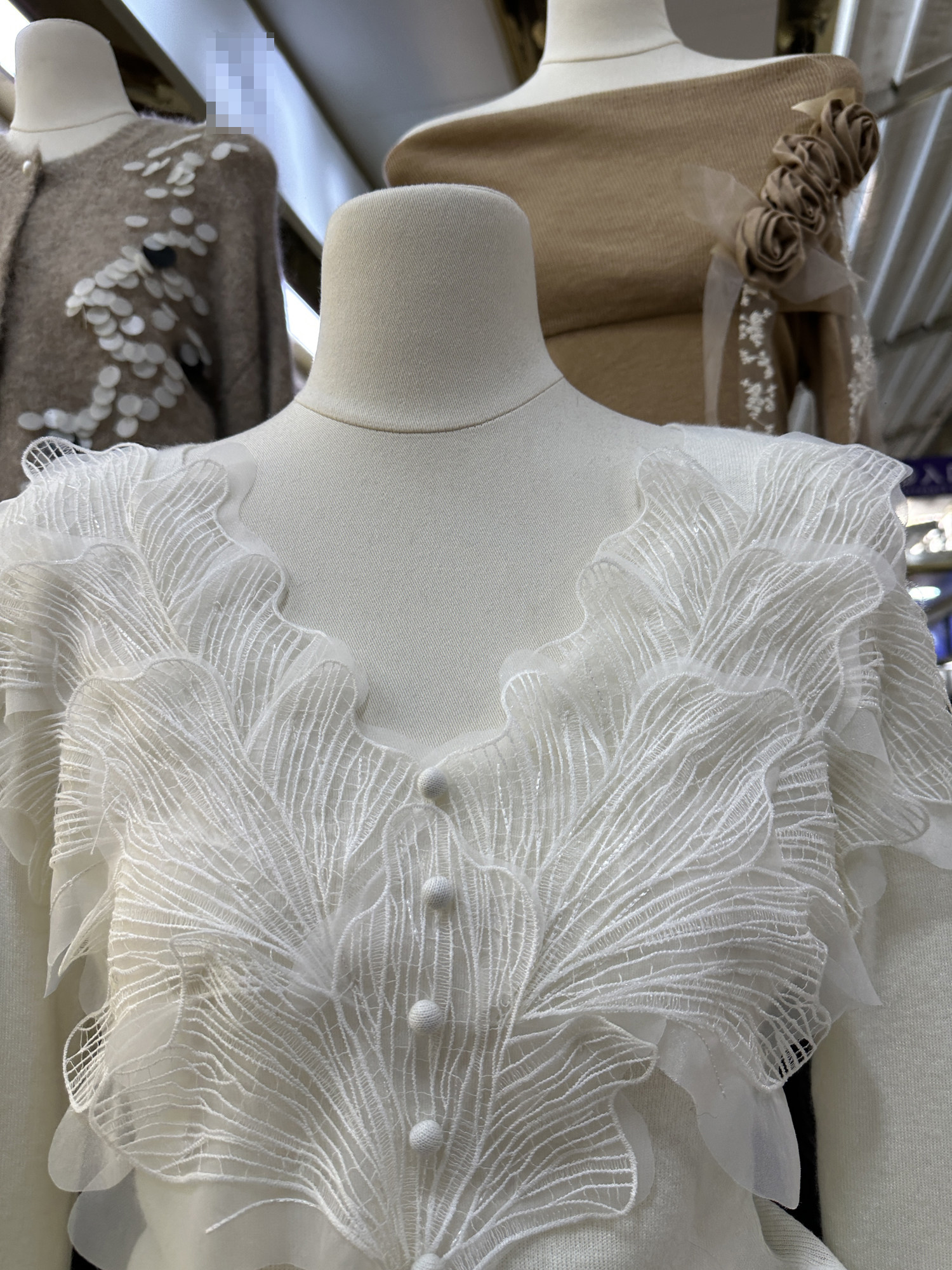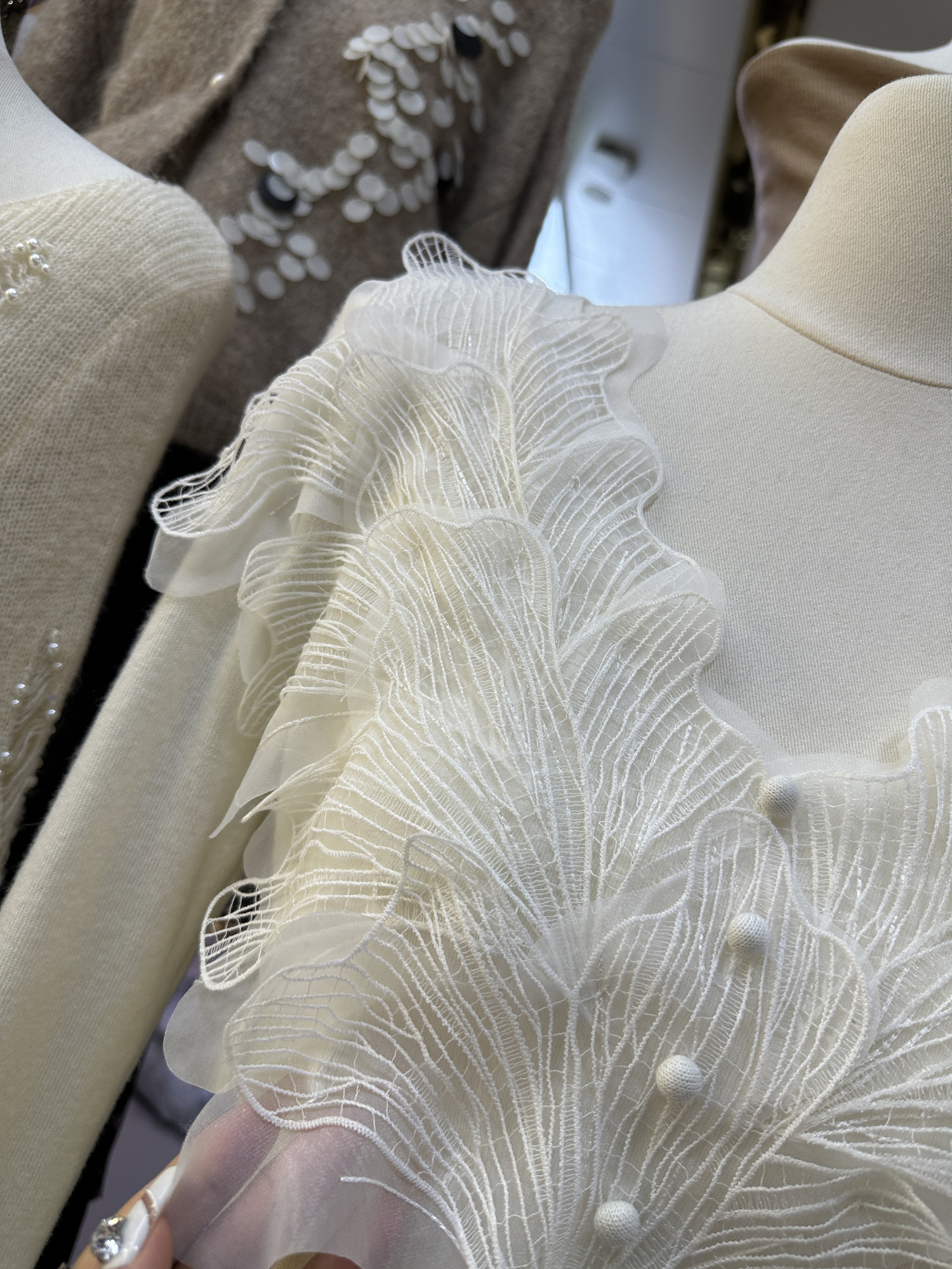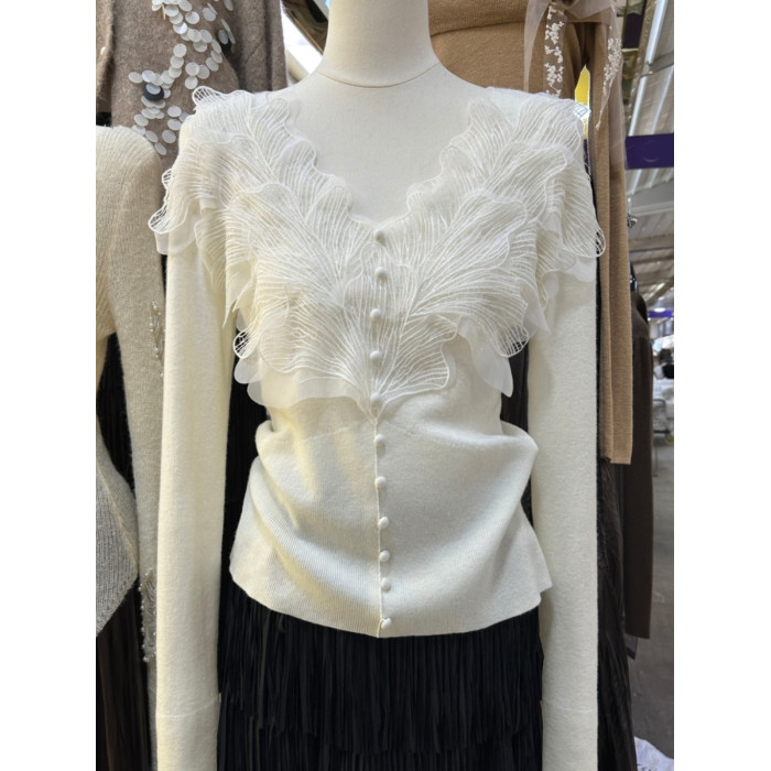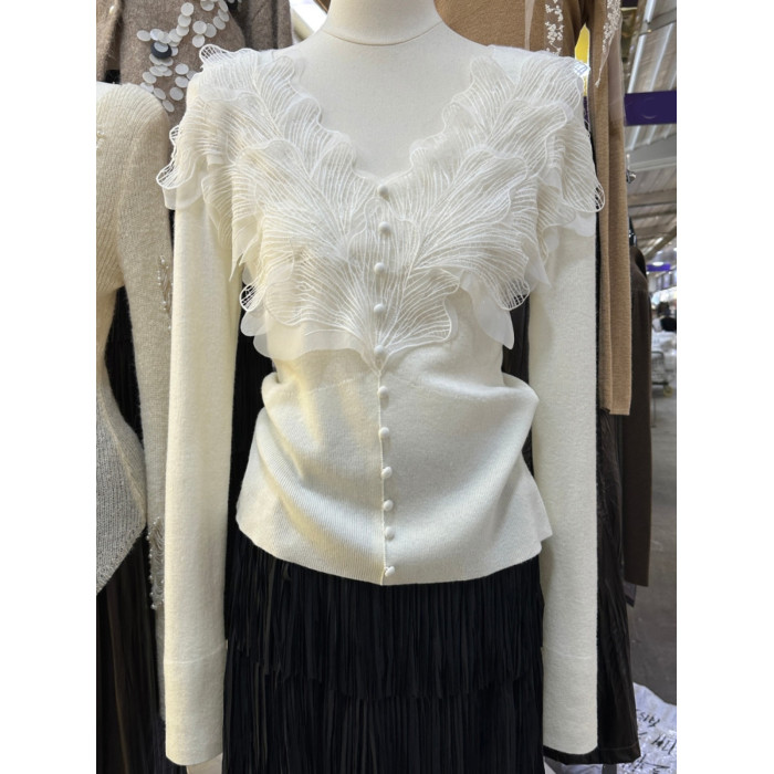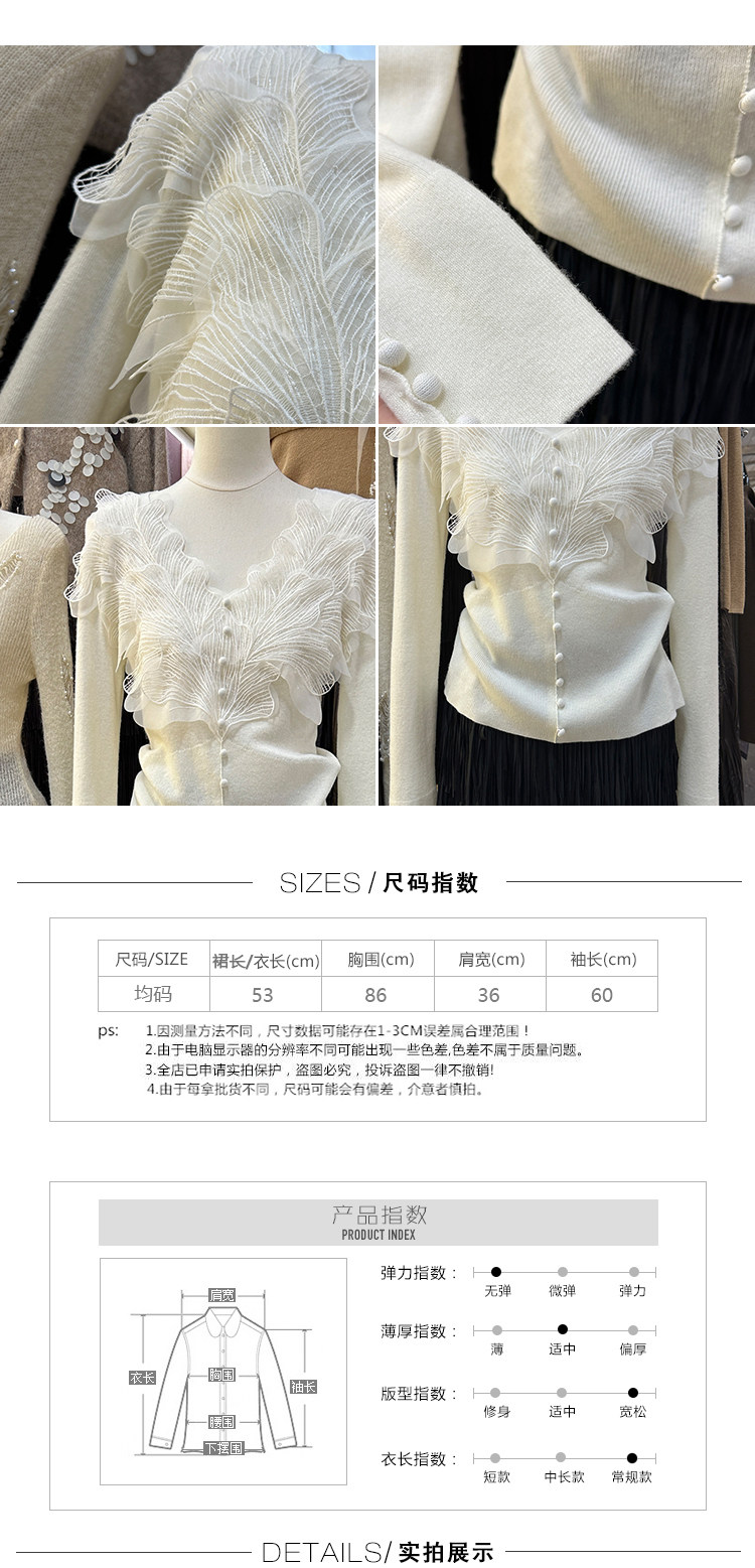 南油高奢女裝秋冬新款重工花瓣刺綉V領設計感顯瘦羊毛針織衫