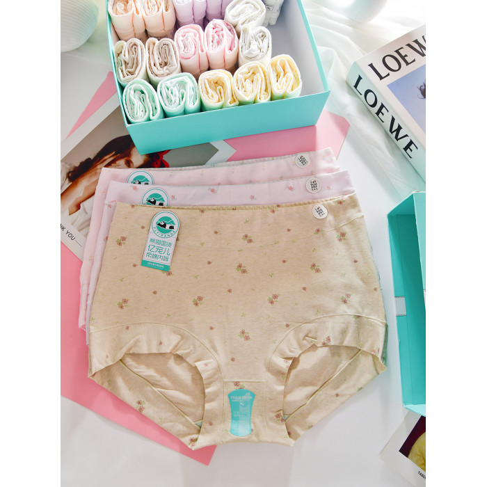 億寵兒 女士高腰大碼4XL純棉簡約包臀內褲有機棉潔淨化內褲媽媽款