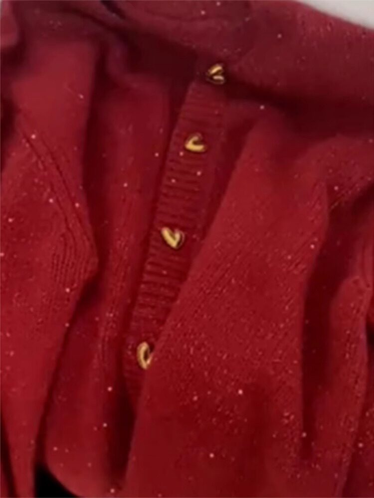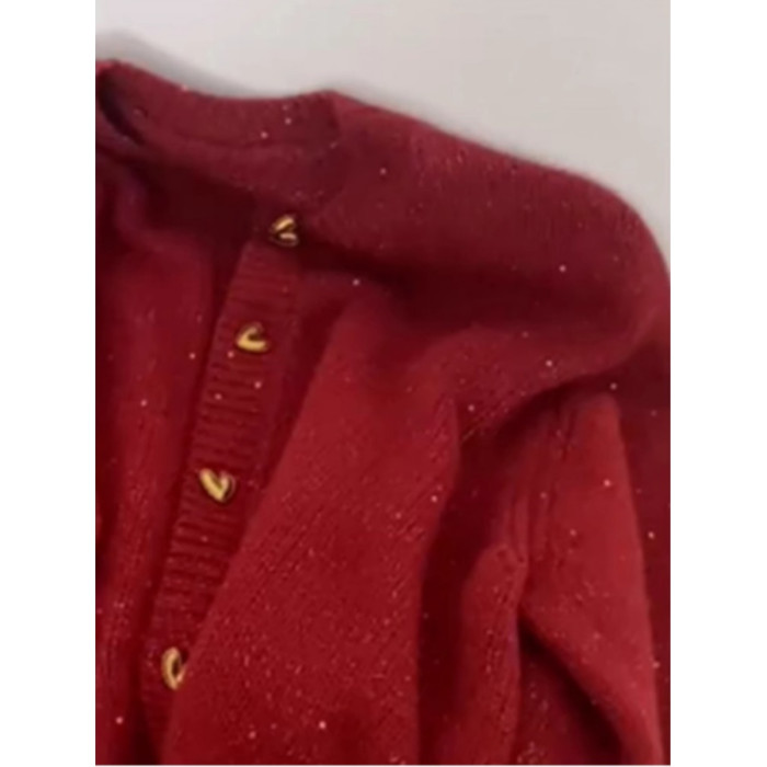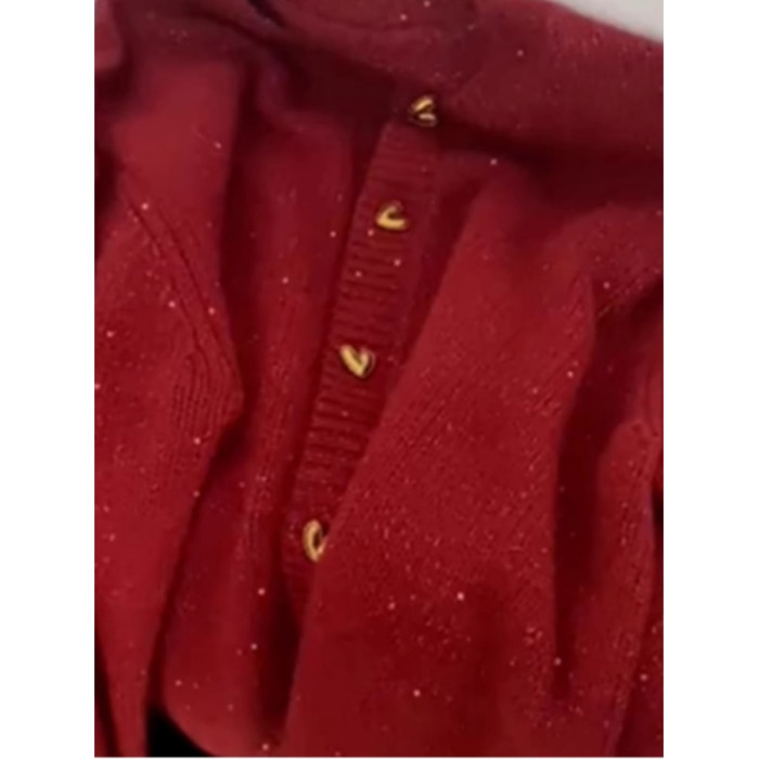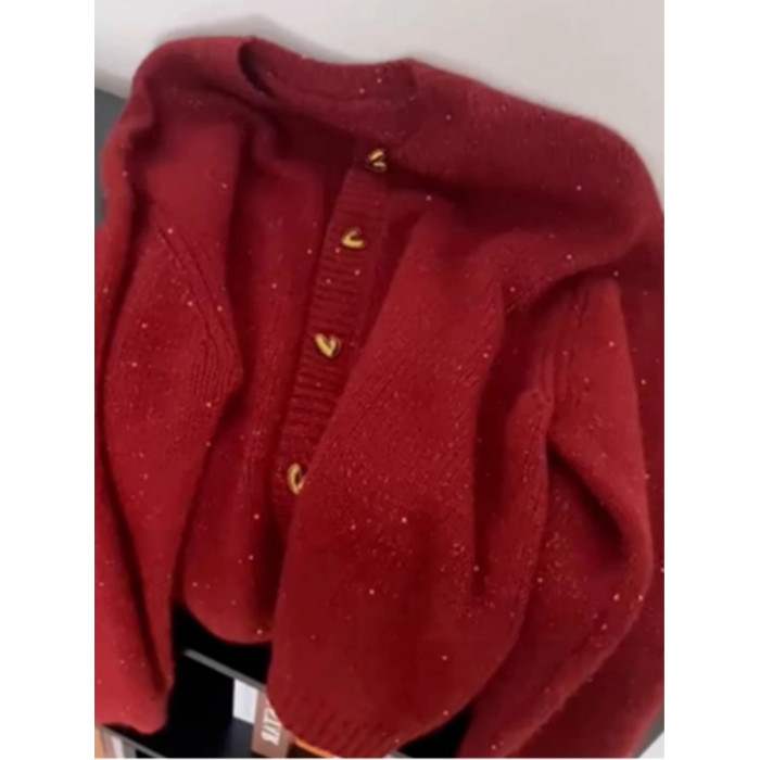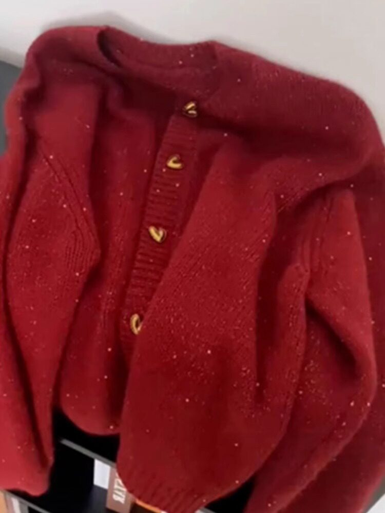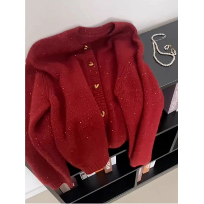 歐貨漂亮新年紅色亮絲毛衣外套女秋冬季高級感超好看針織開衫上衣