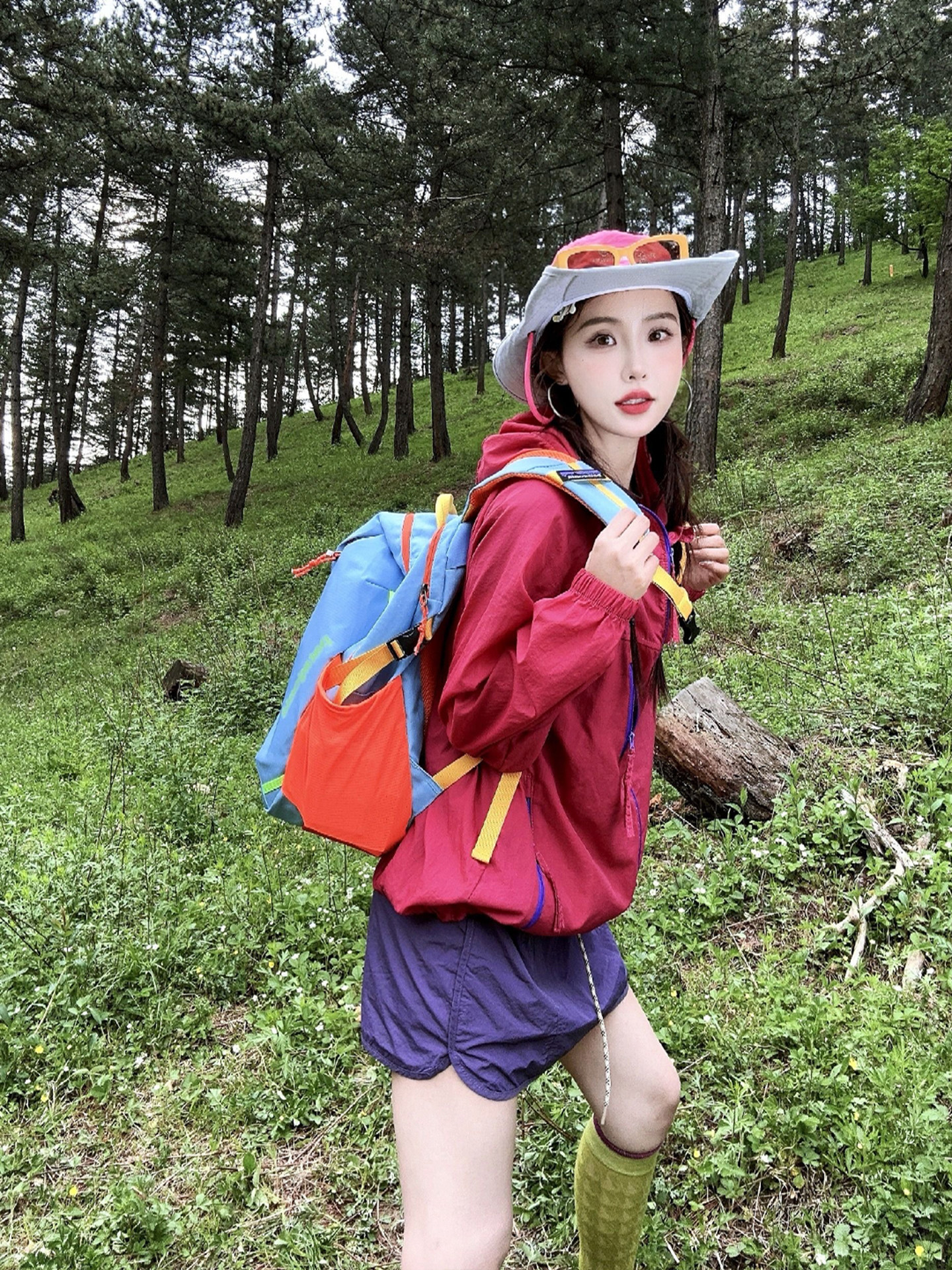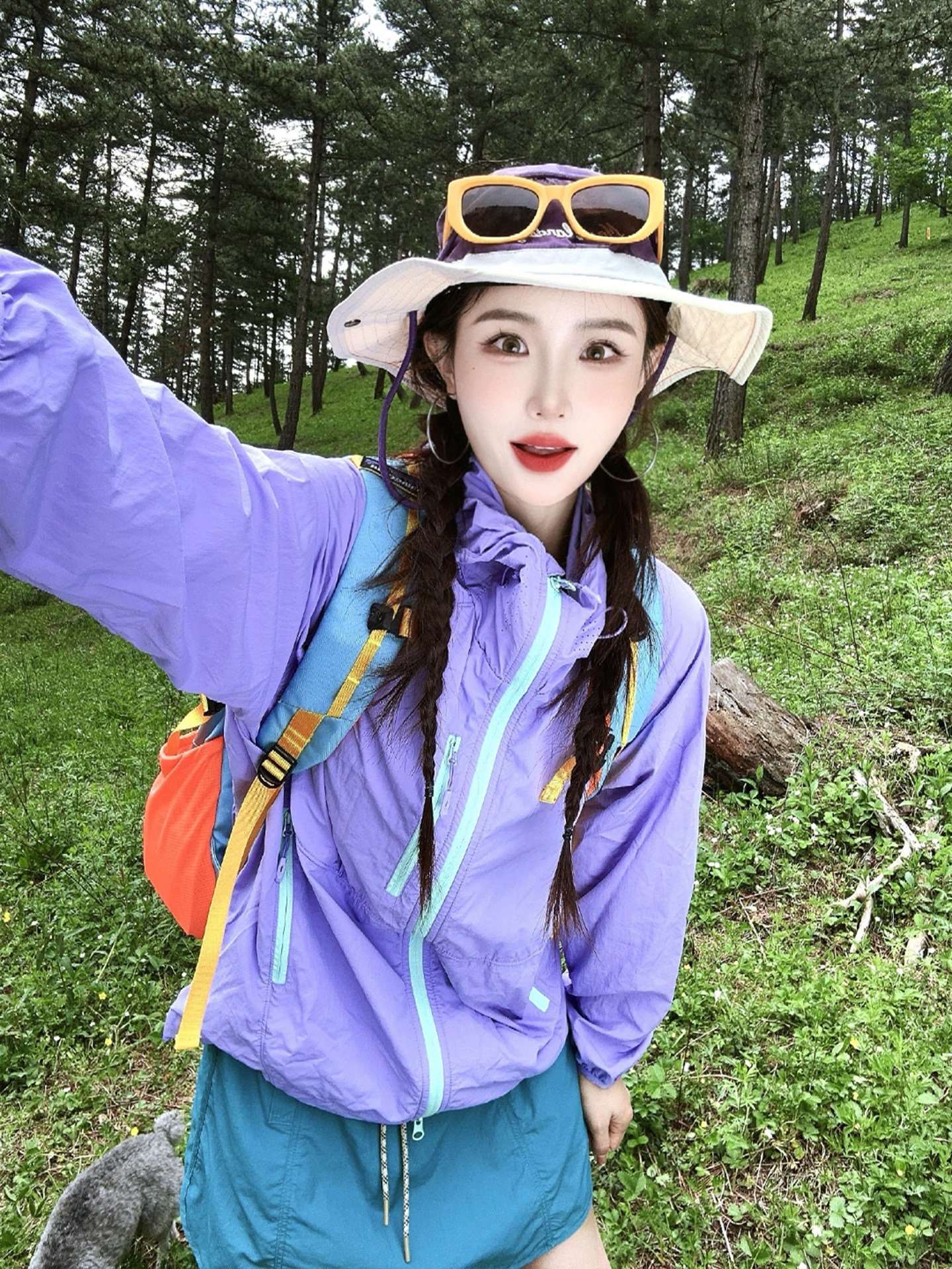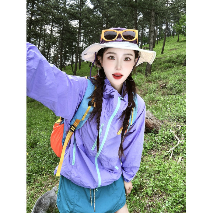 多巴胺夏季爬山穿搭輕薄防曬衣女山系戶外速乾沖鋒衣運動防曬外套