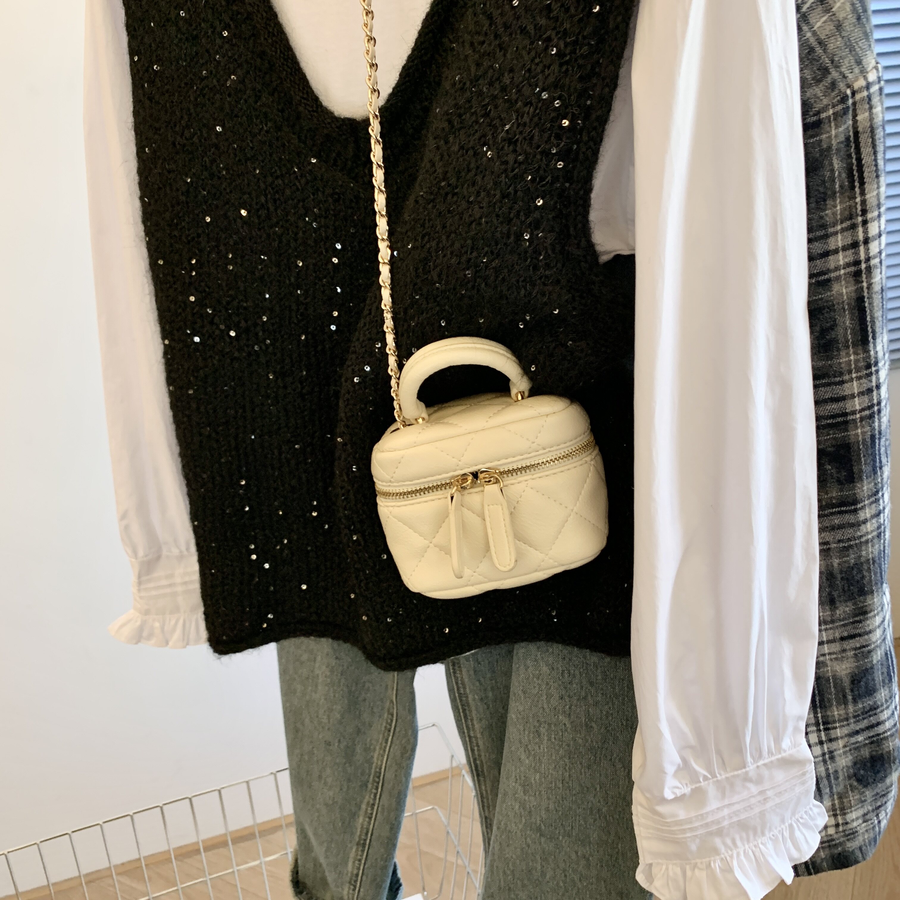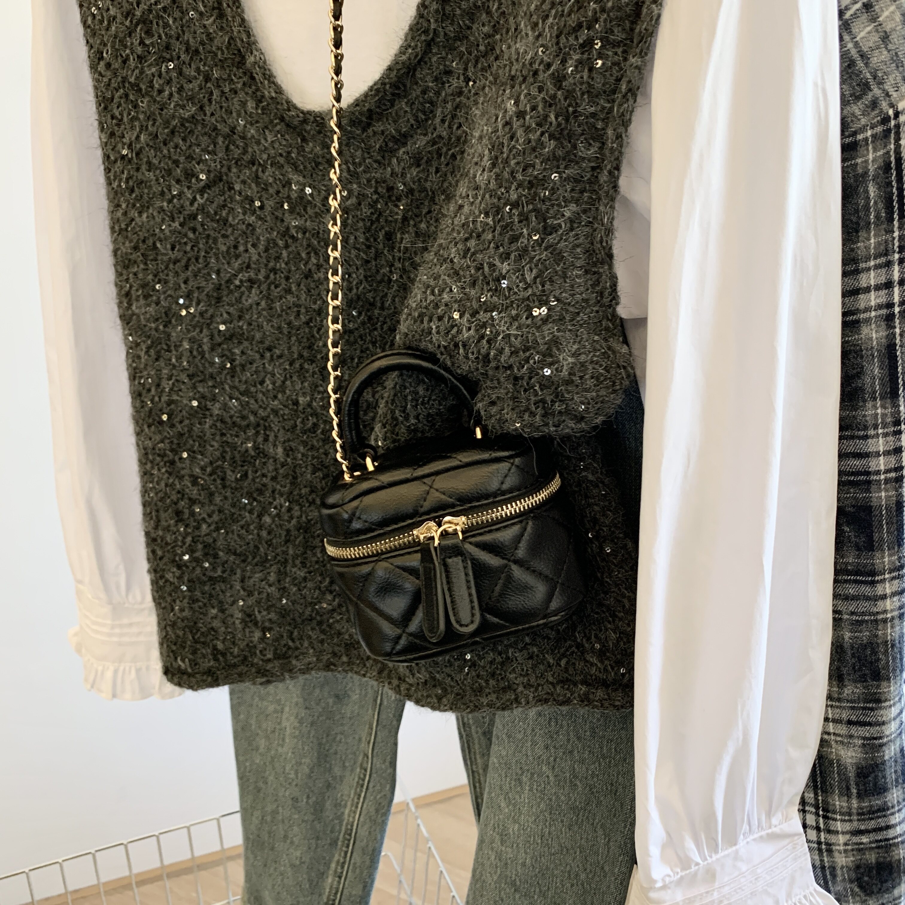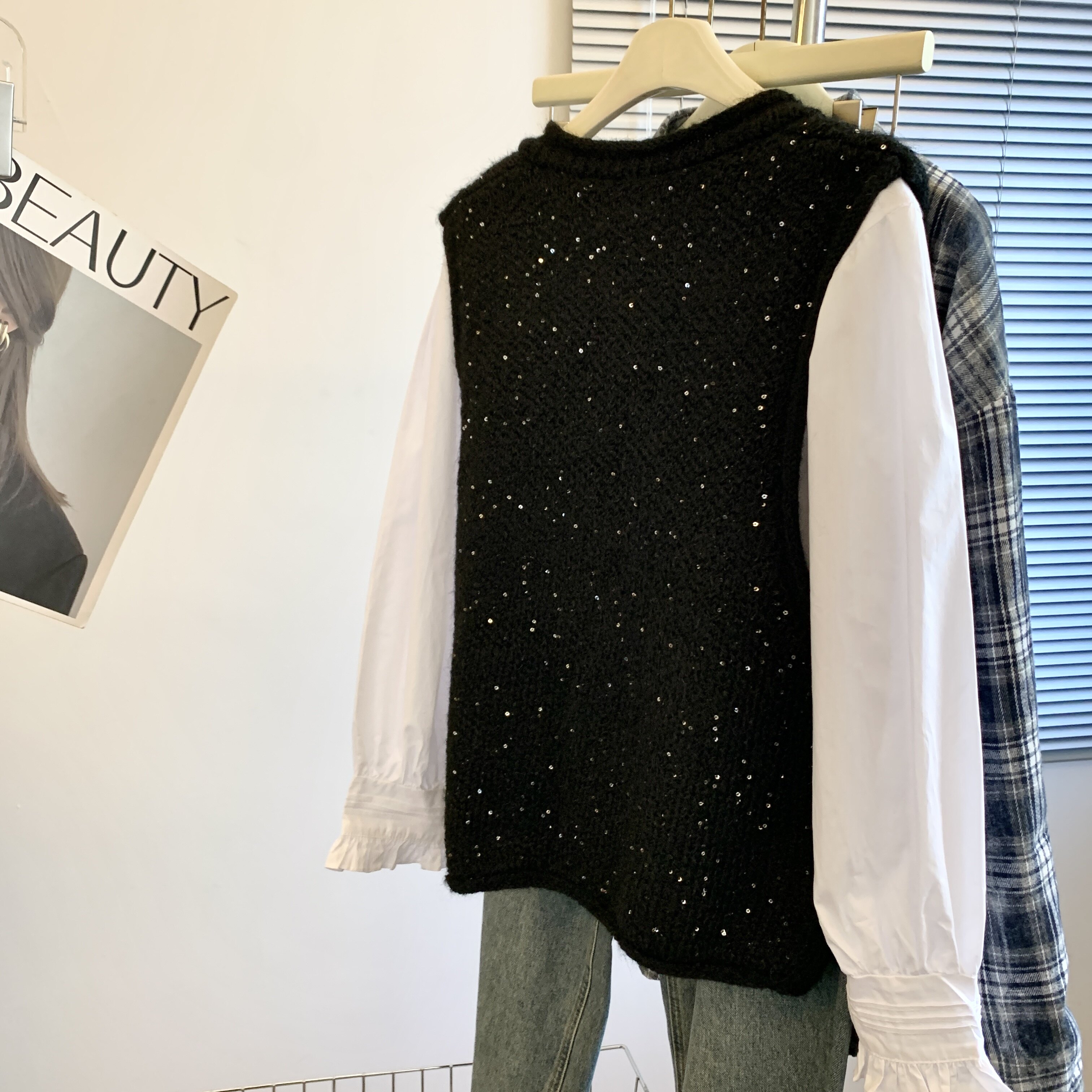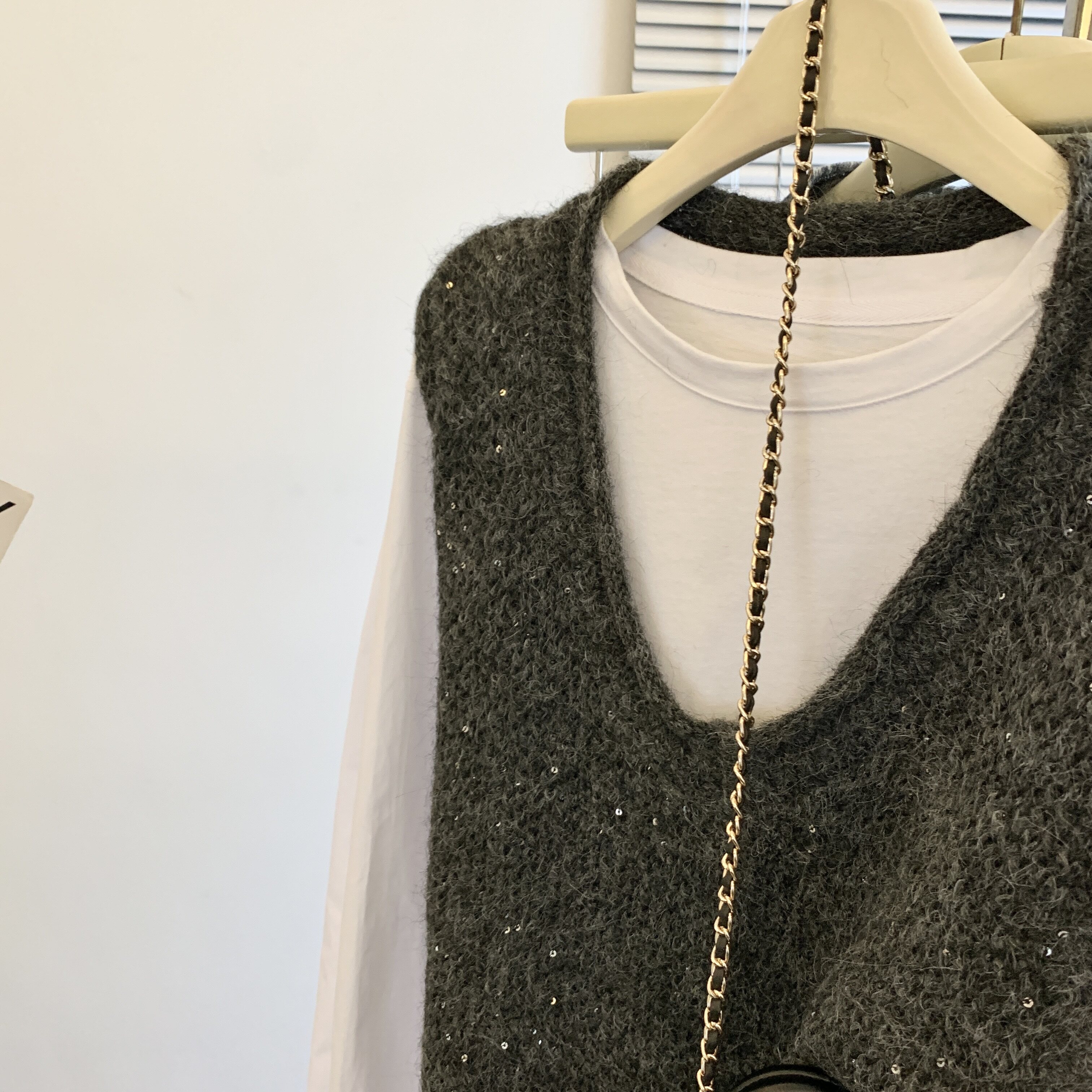 專櫃撤廻剪標重工亮片V領針織馬甲女2025新款百搭上衣曡穿兩件套