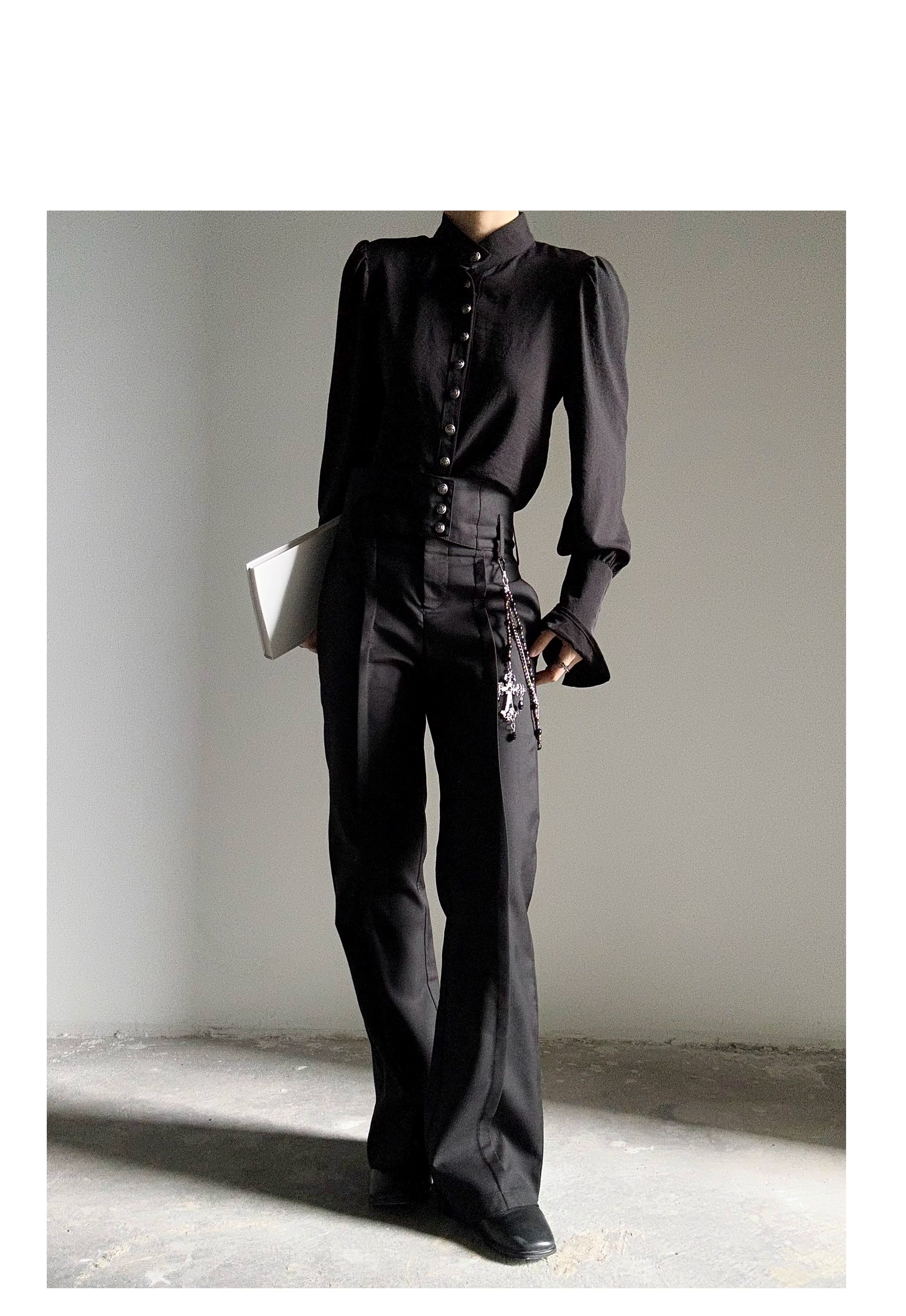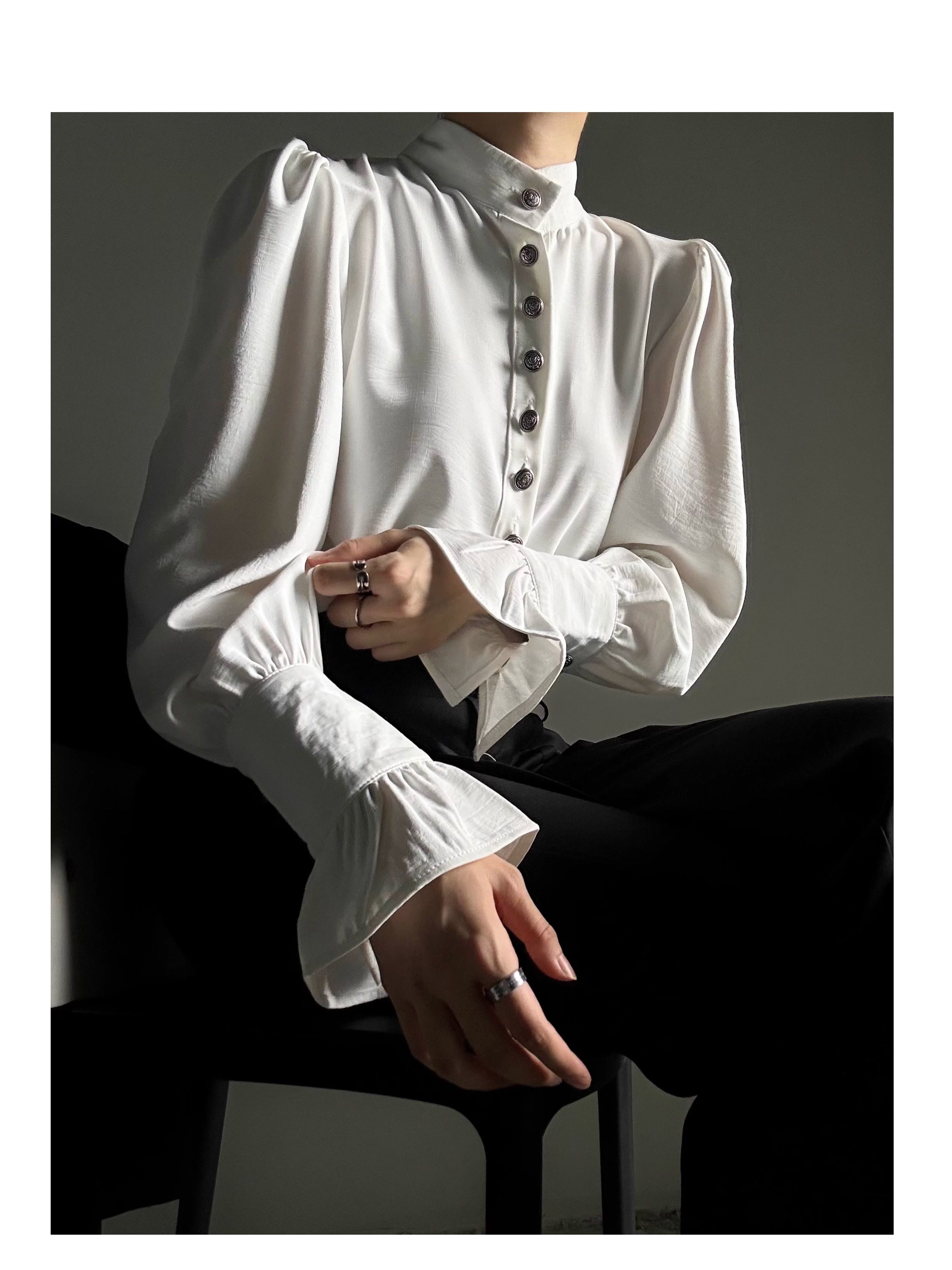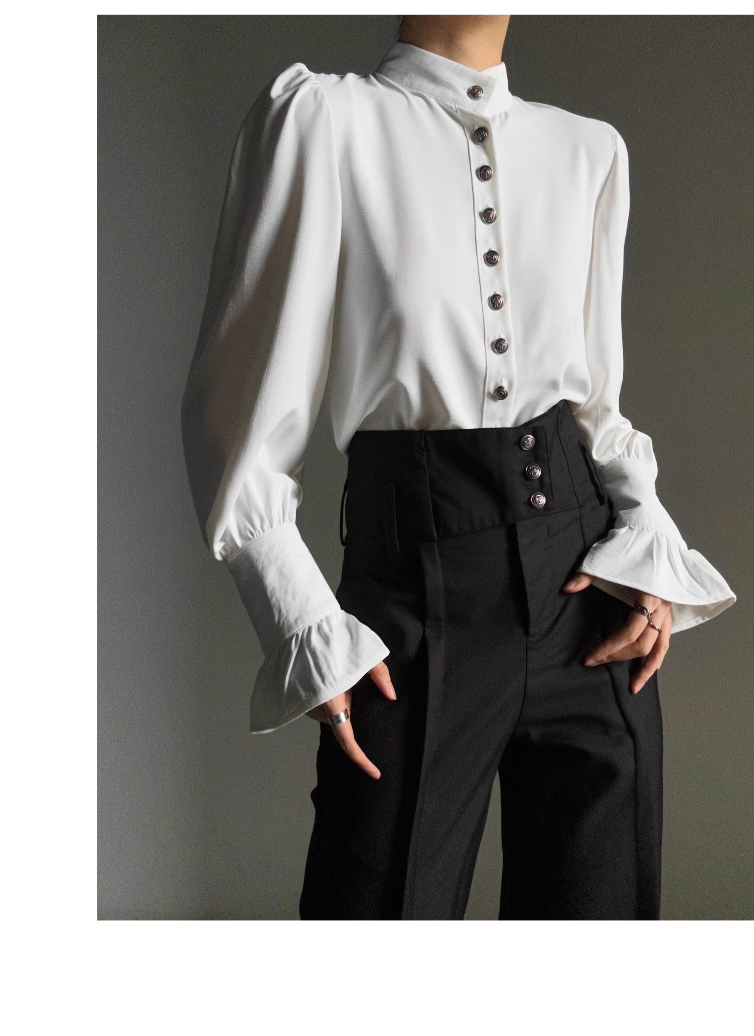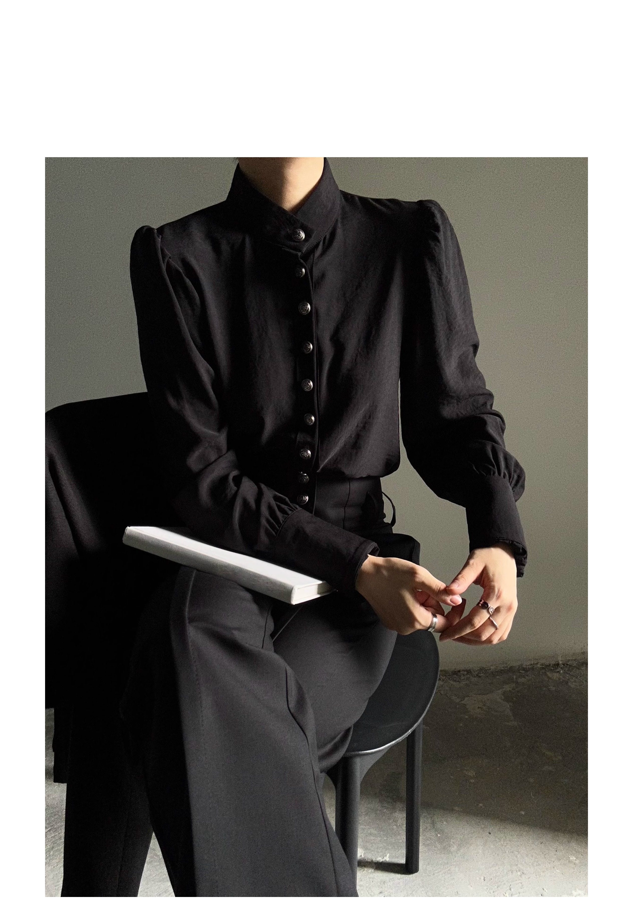 ASAE 宮廷風復古感立領襯衫設計感法式垂墜上衣男女中性風襯衣