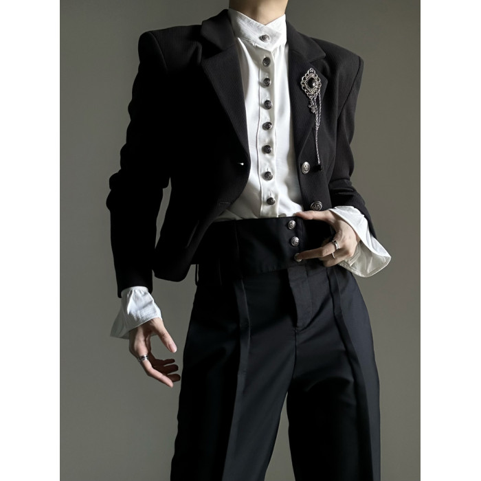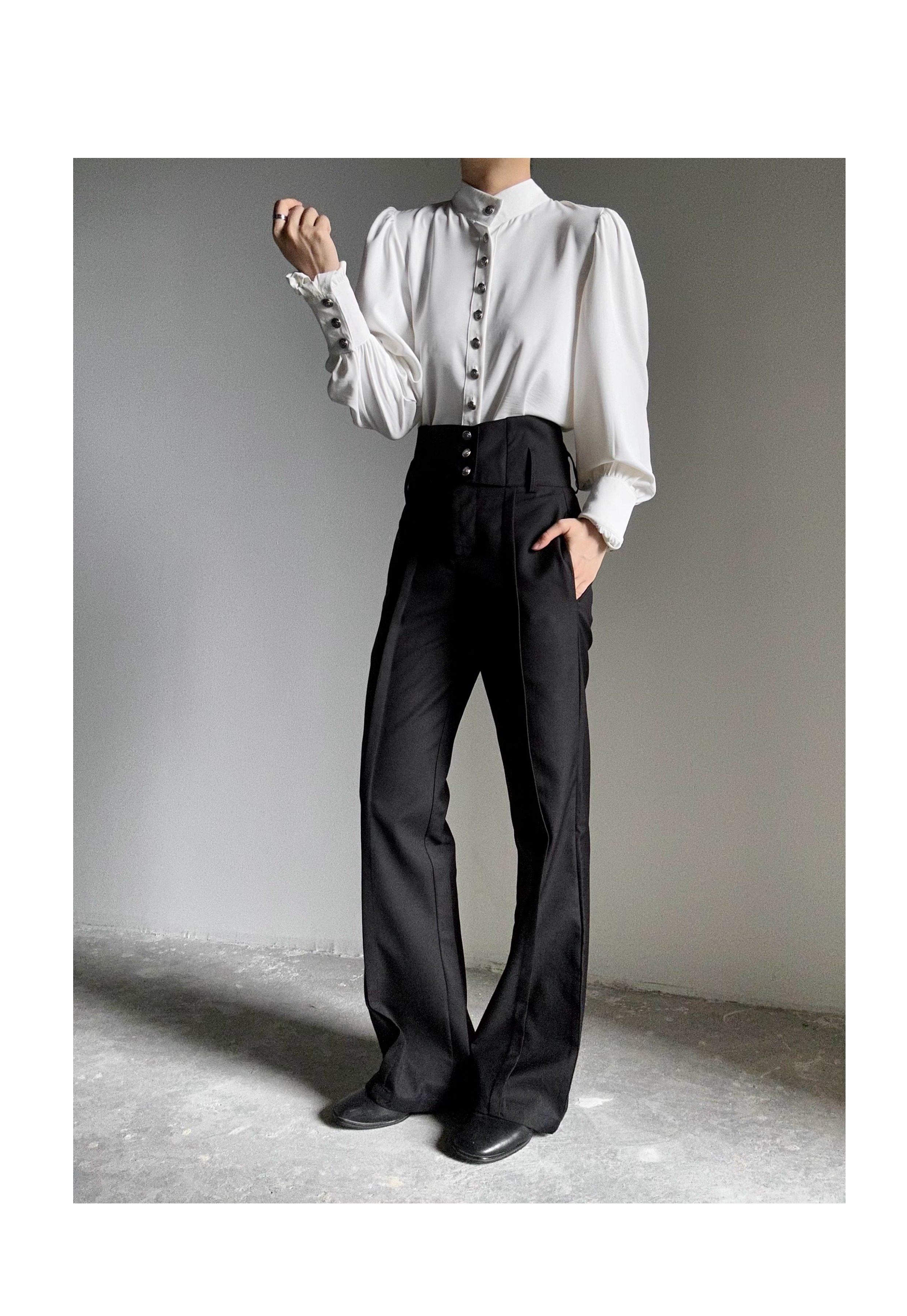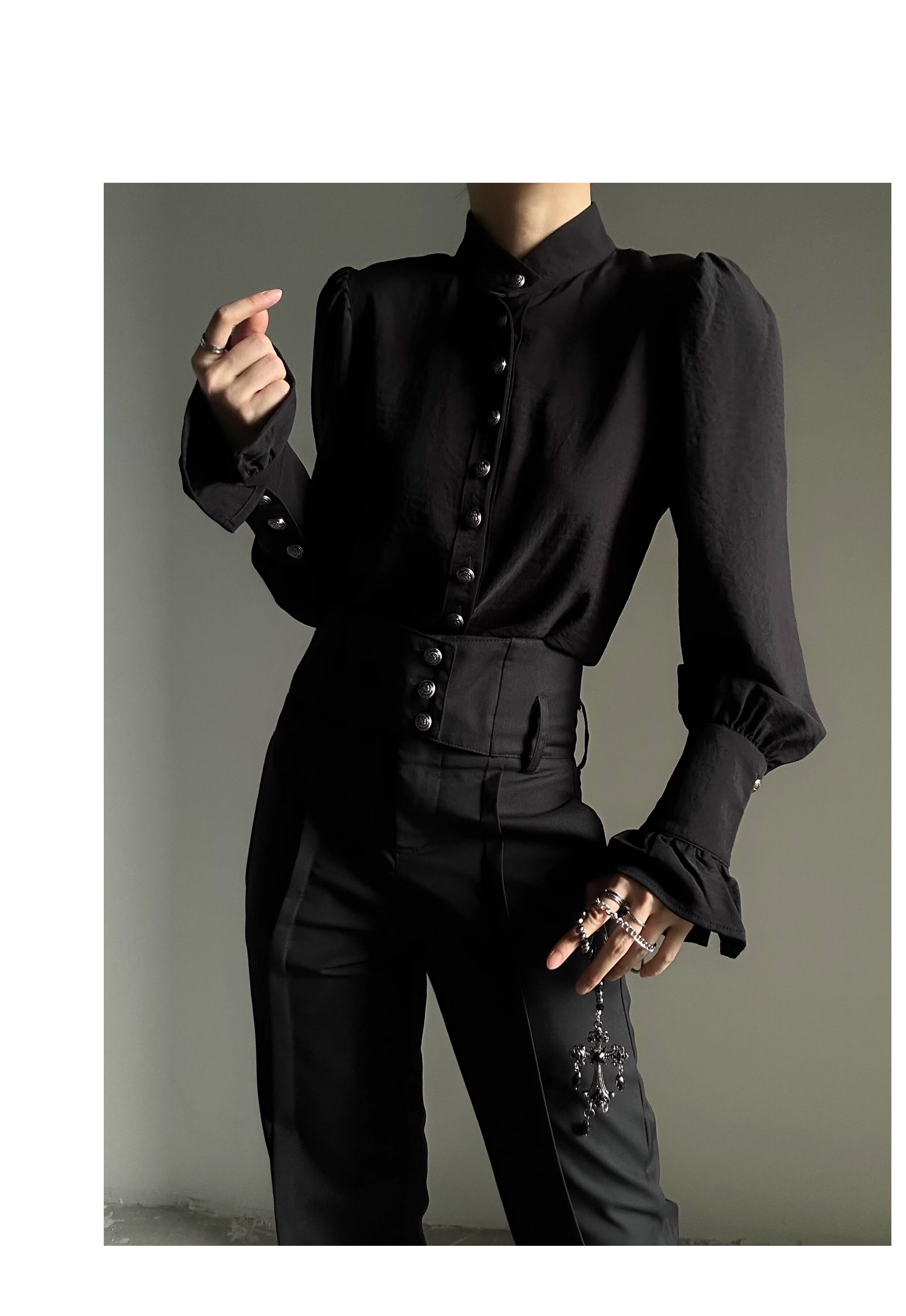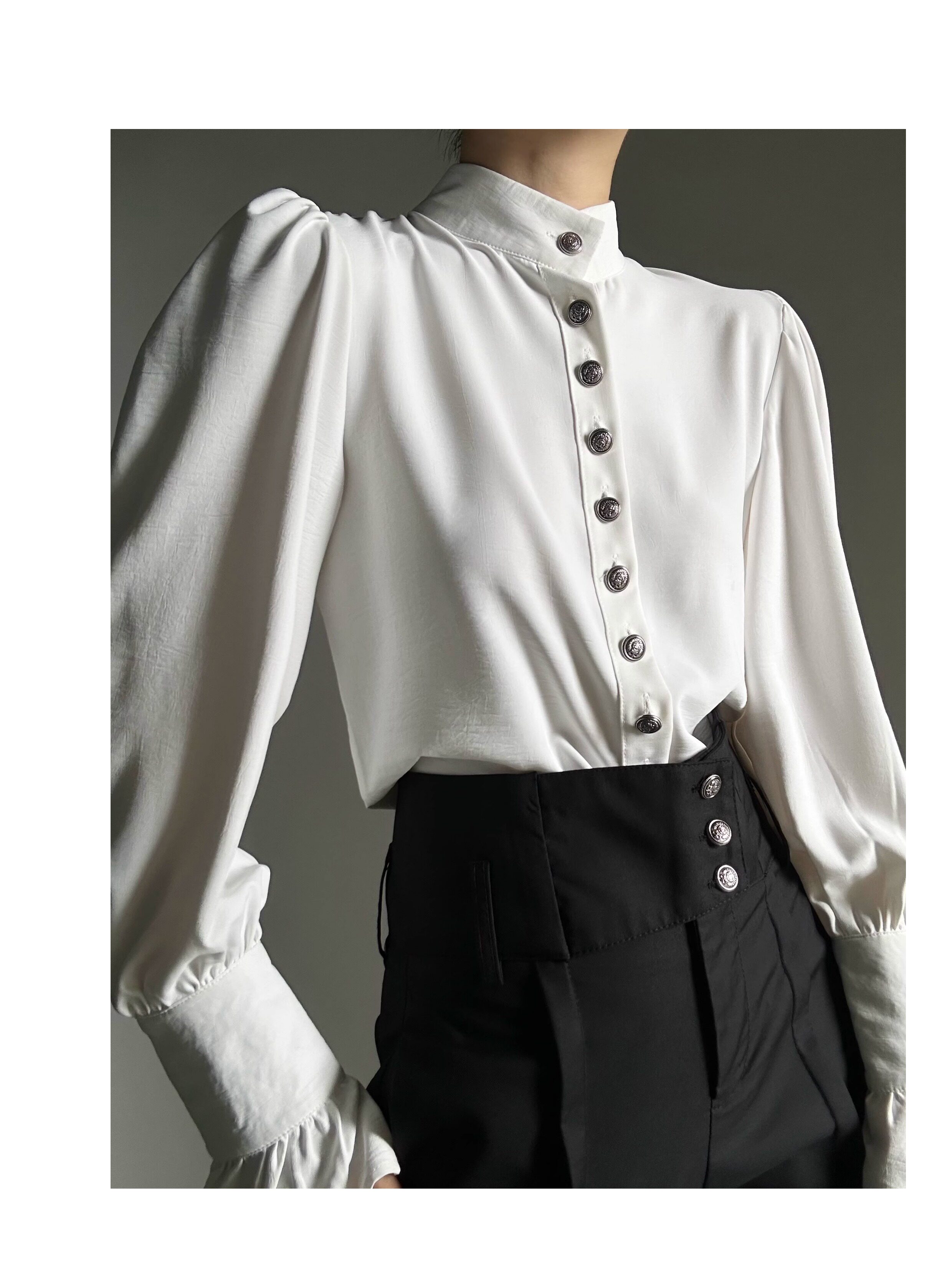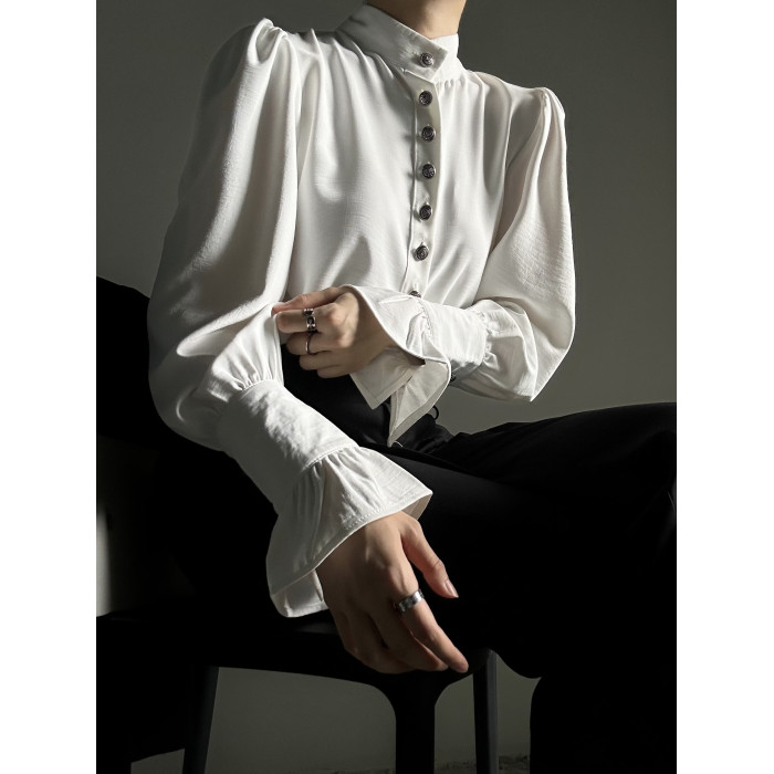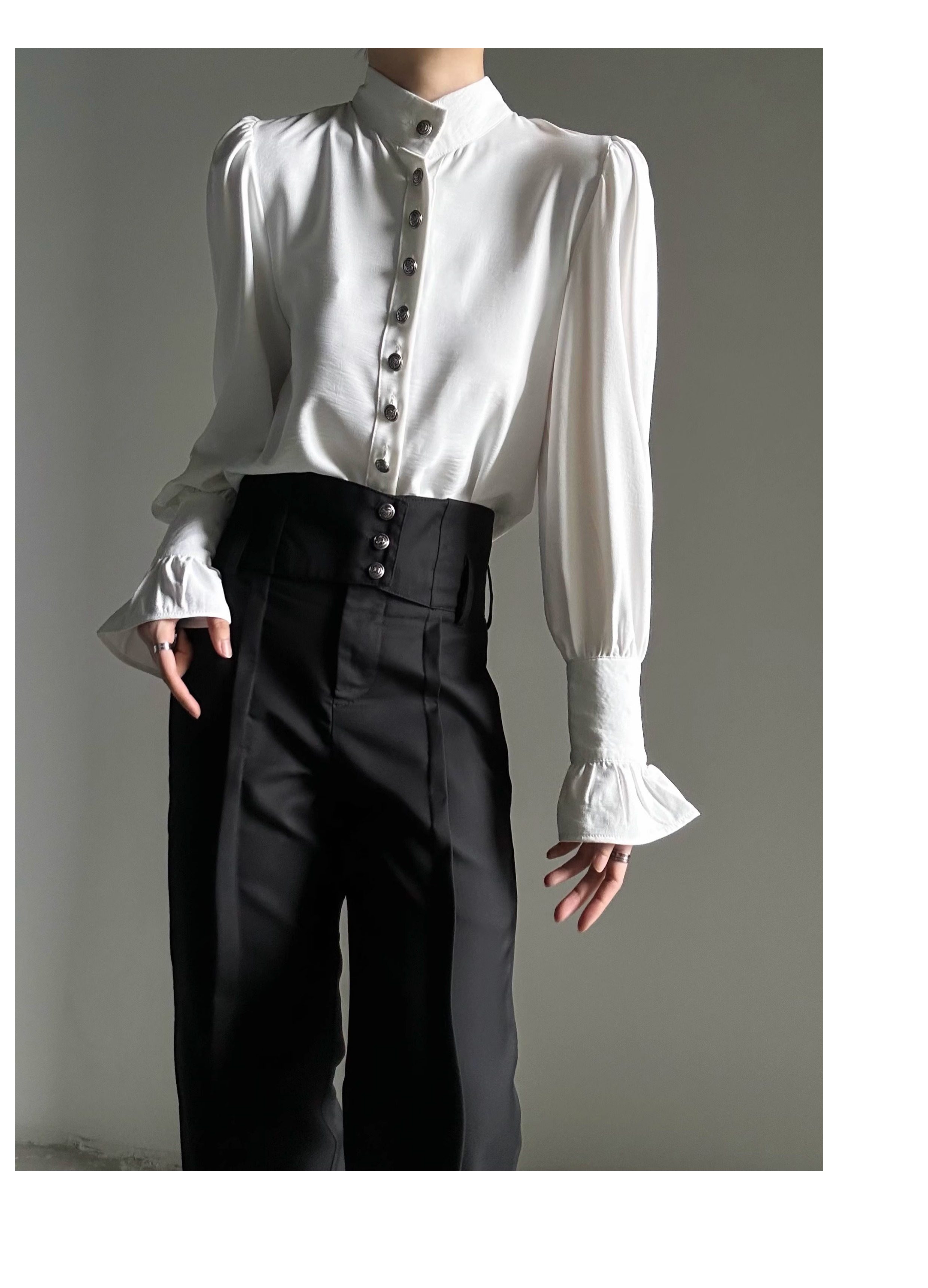ASAE 宮廷風復古感立領襯衫設計感法式垂墜上衣男女中性風襯衣