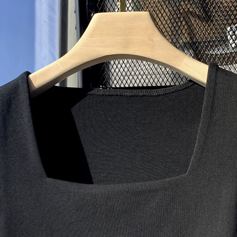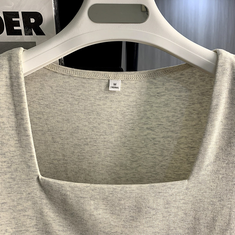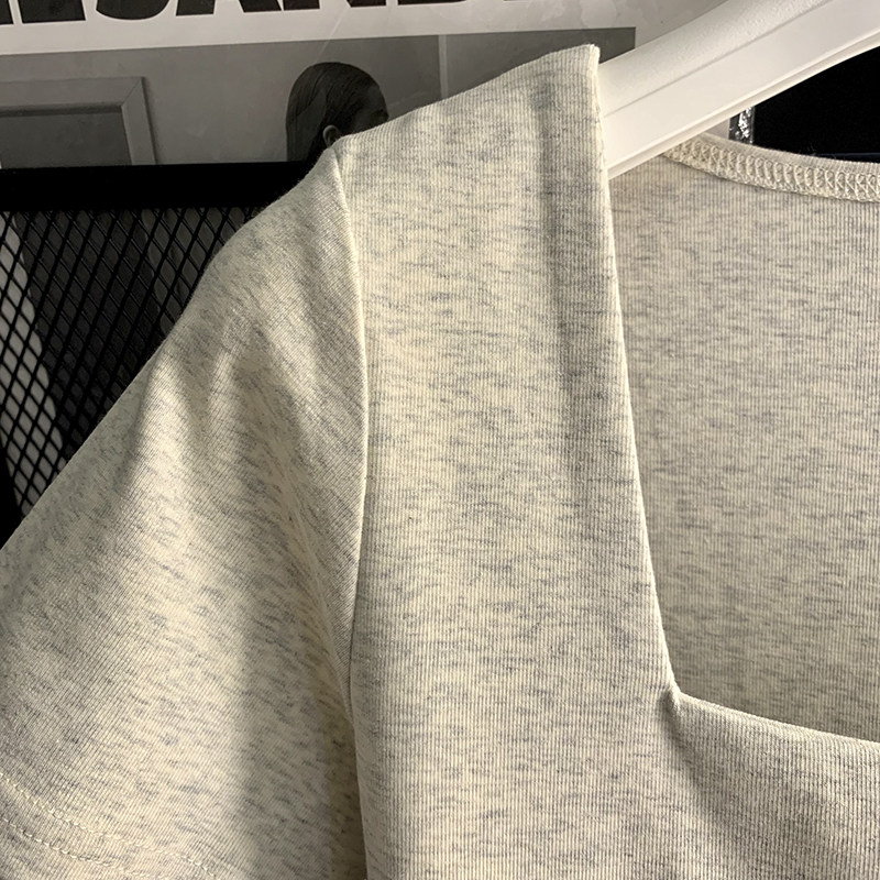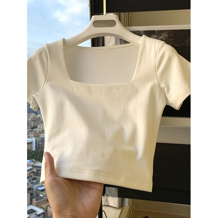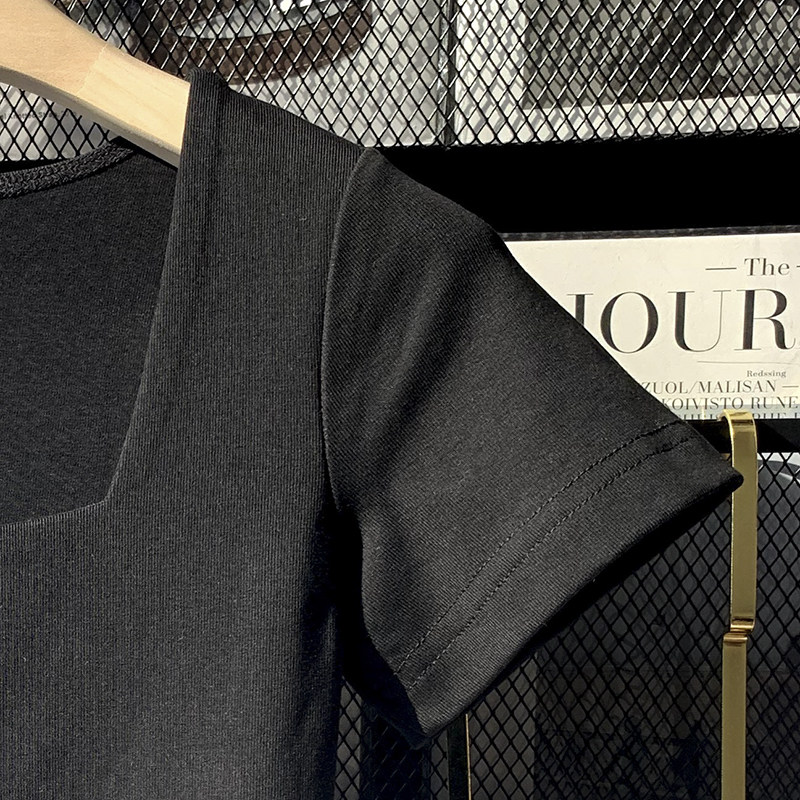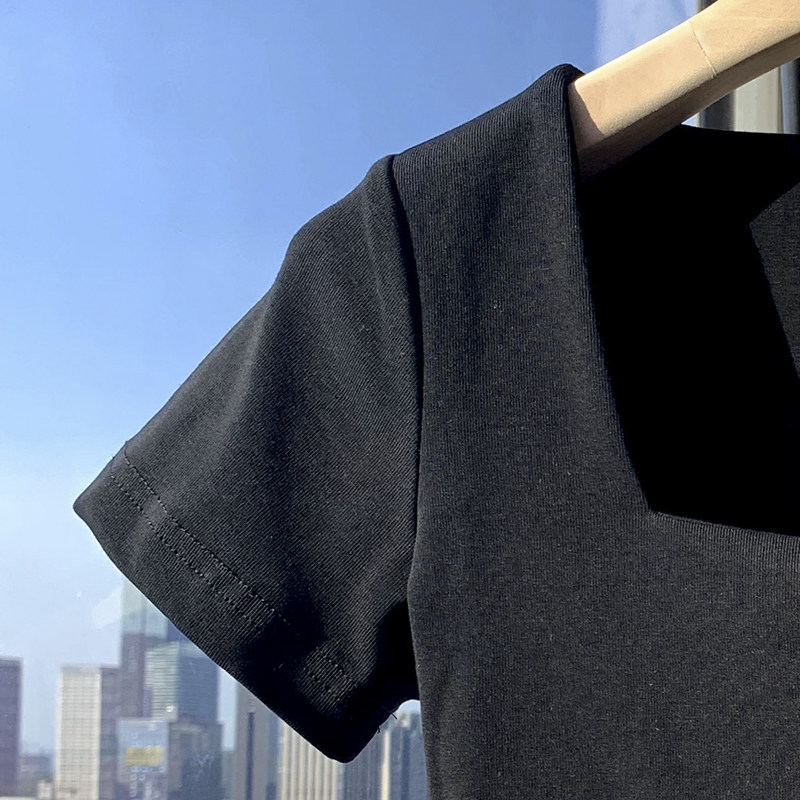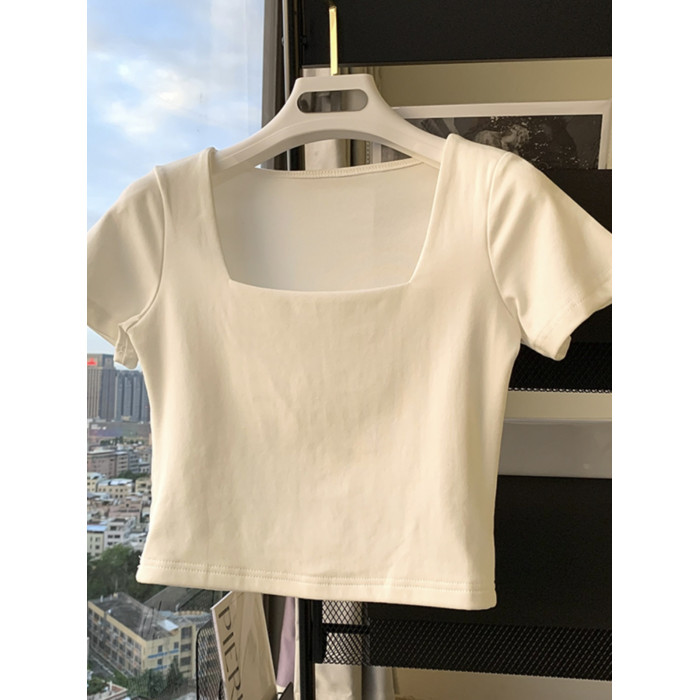 純棉短袖t恤女夏季方領緊身短款高腰小衆露臍高腰別致上衣打底衫