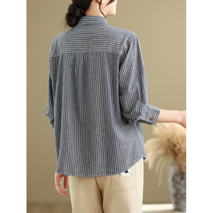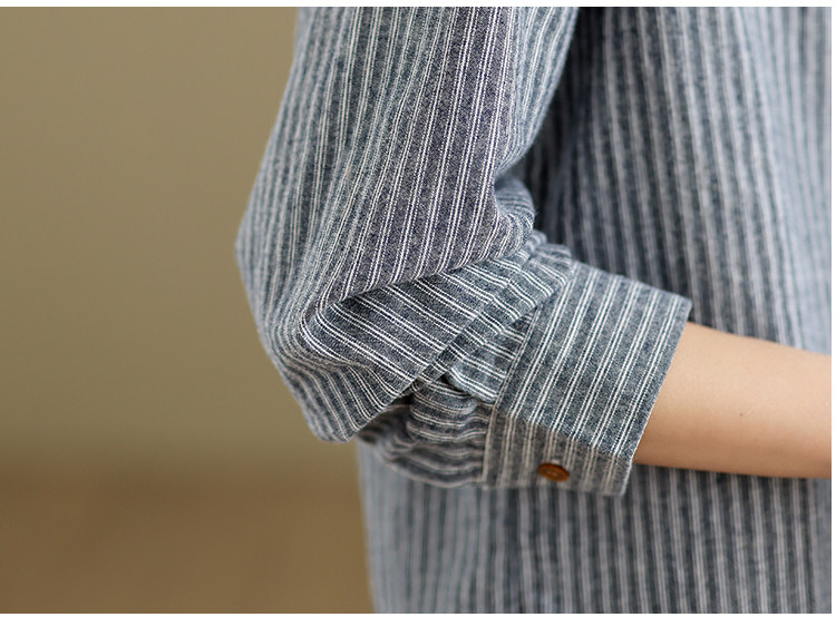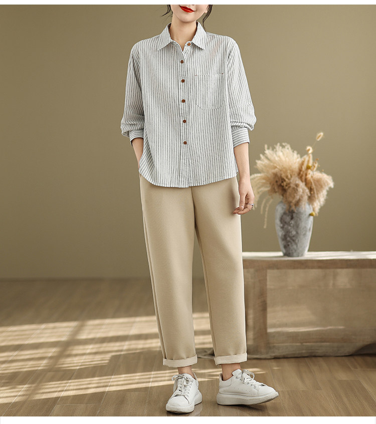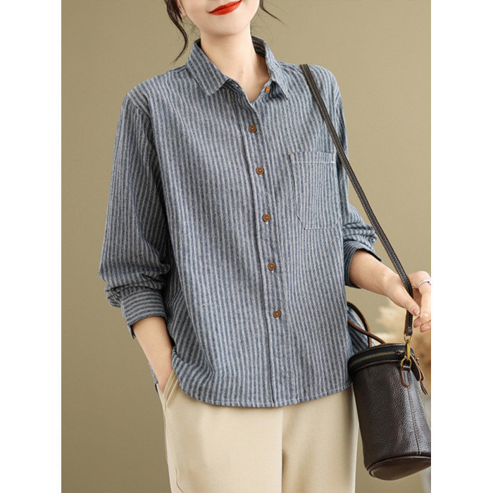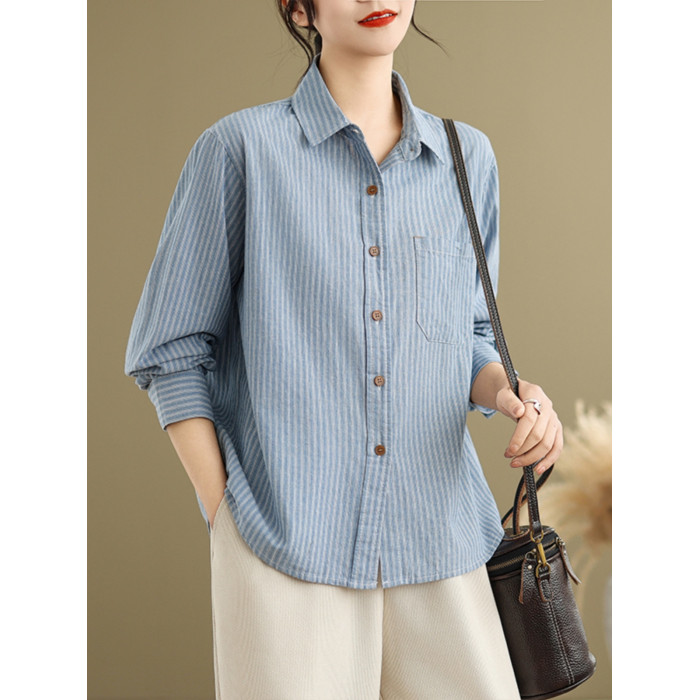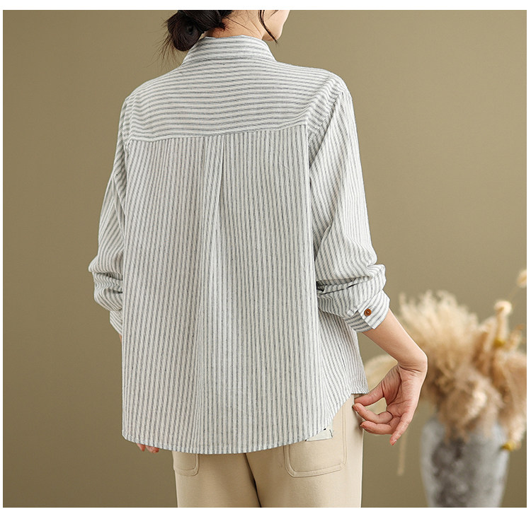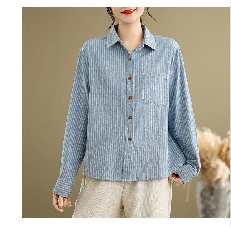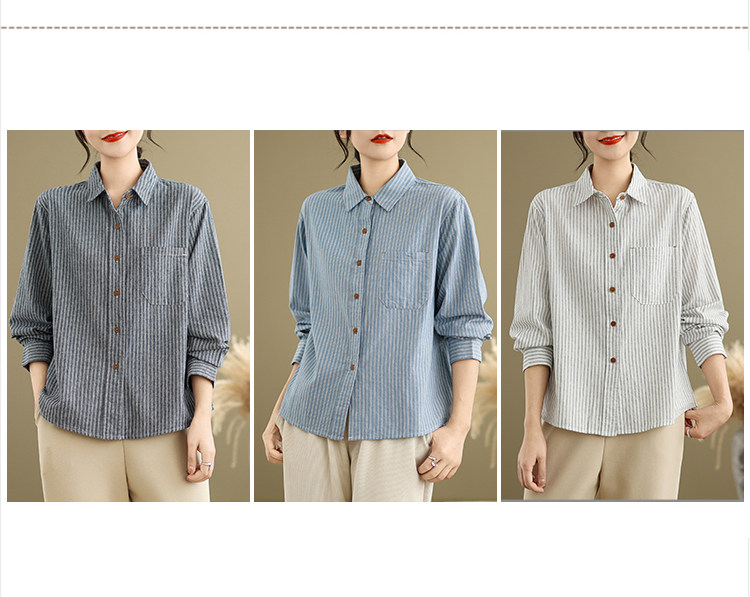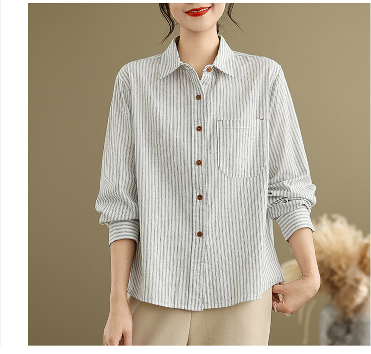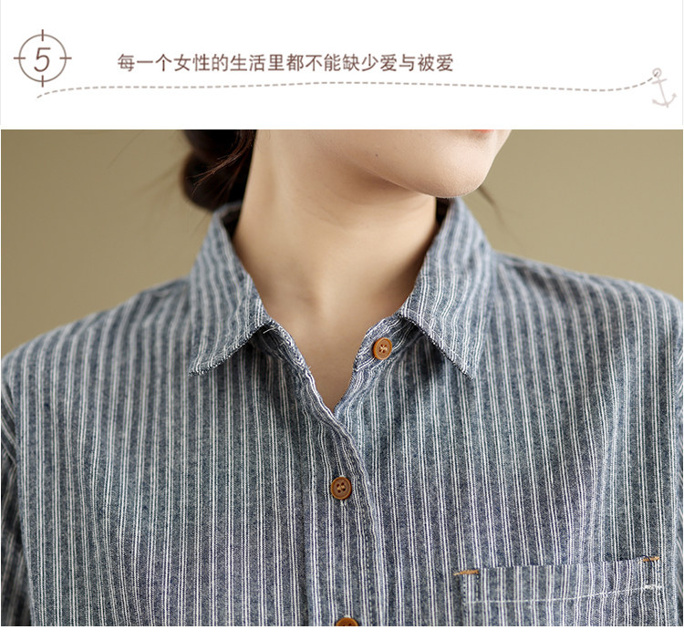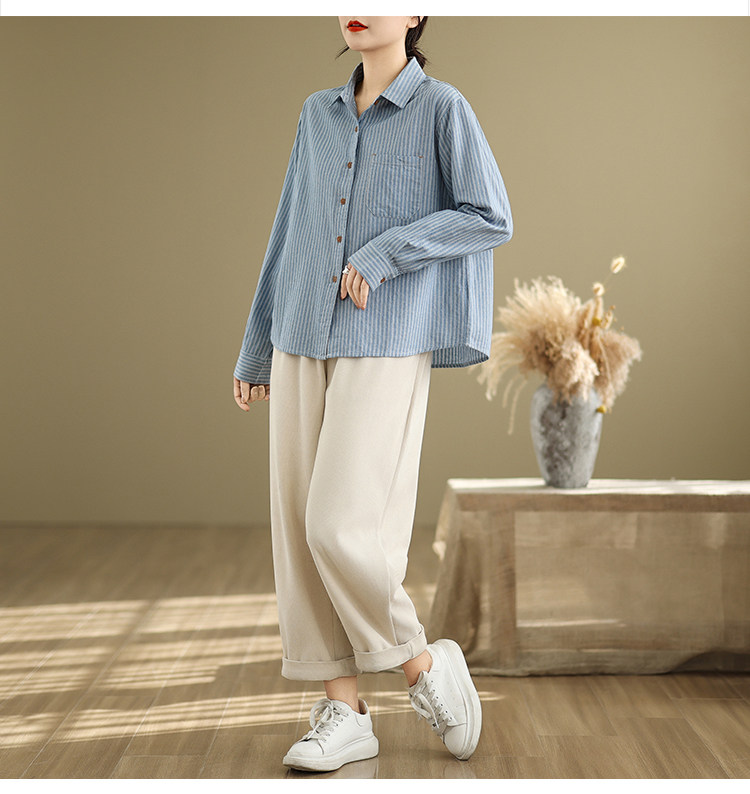 商場折釦~專櫃撤廻大碼春季純棉條紋襯衫女休閒寬鬆顯瘦長袖襯衣