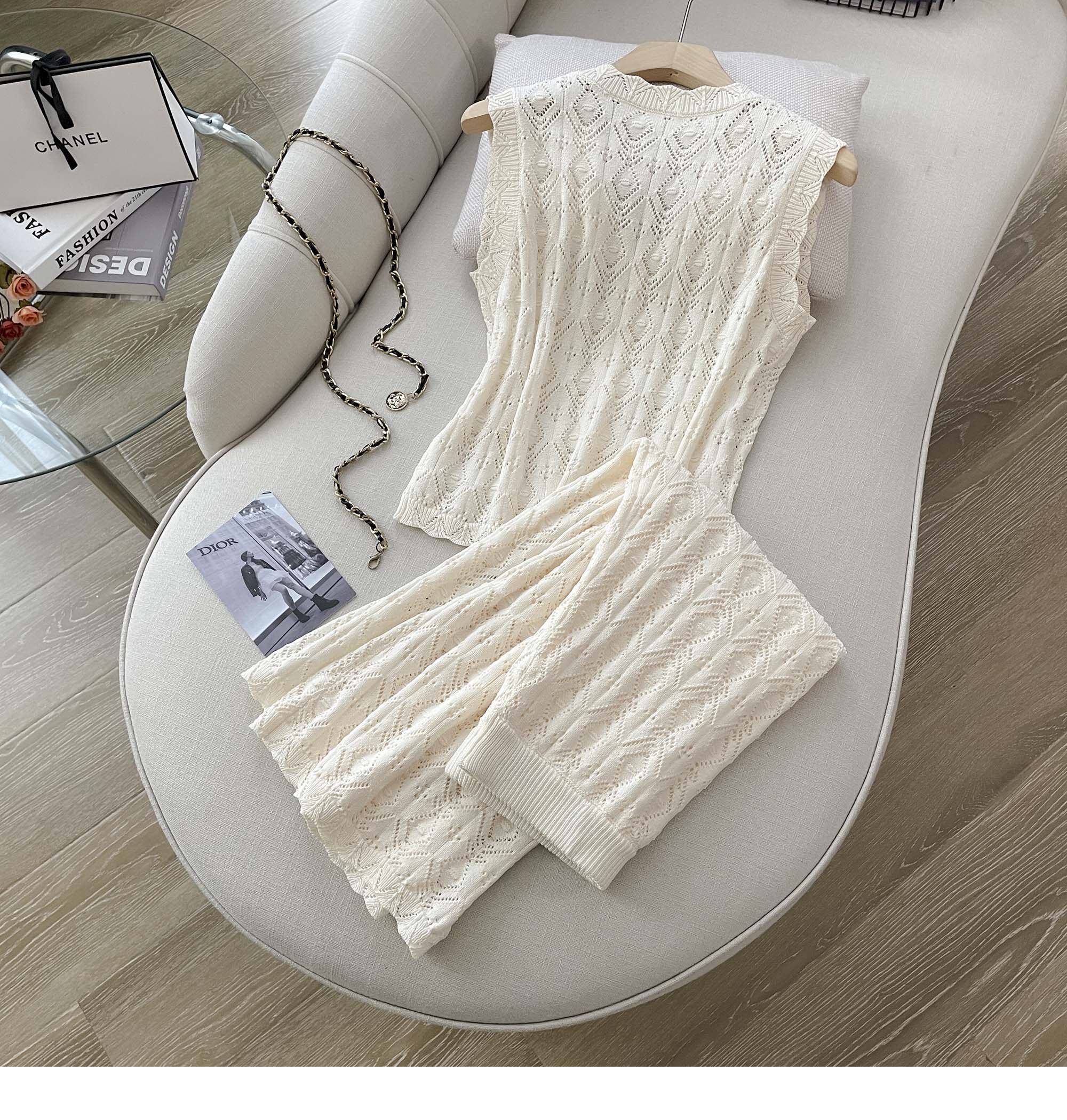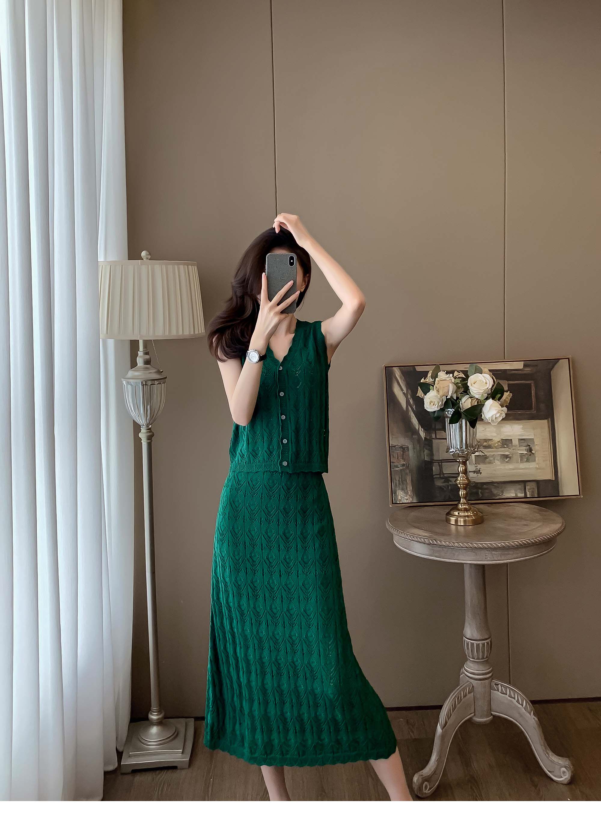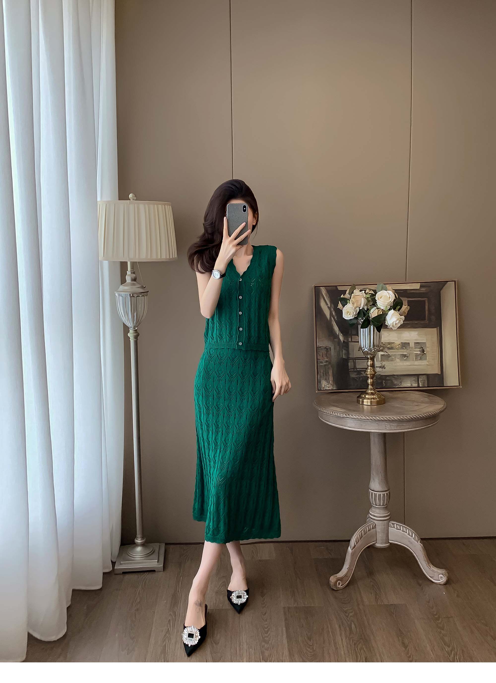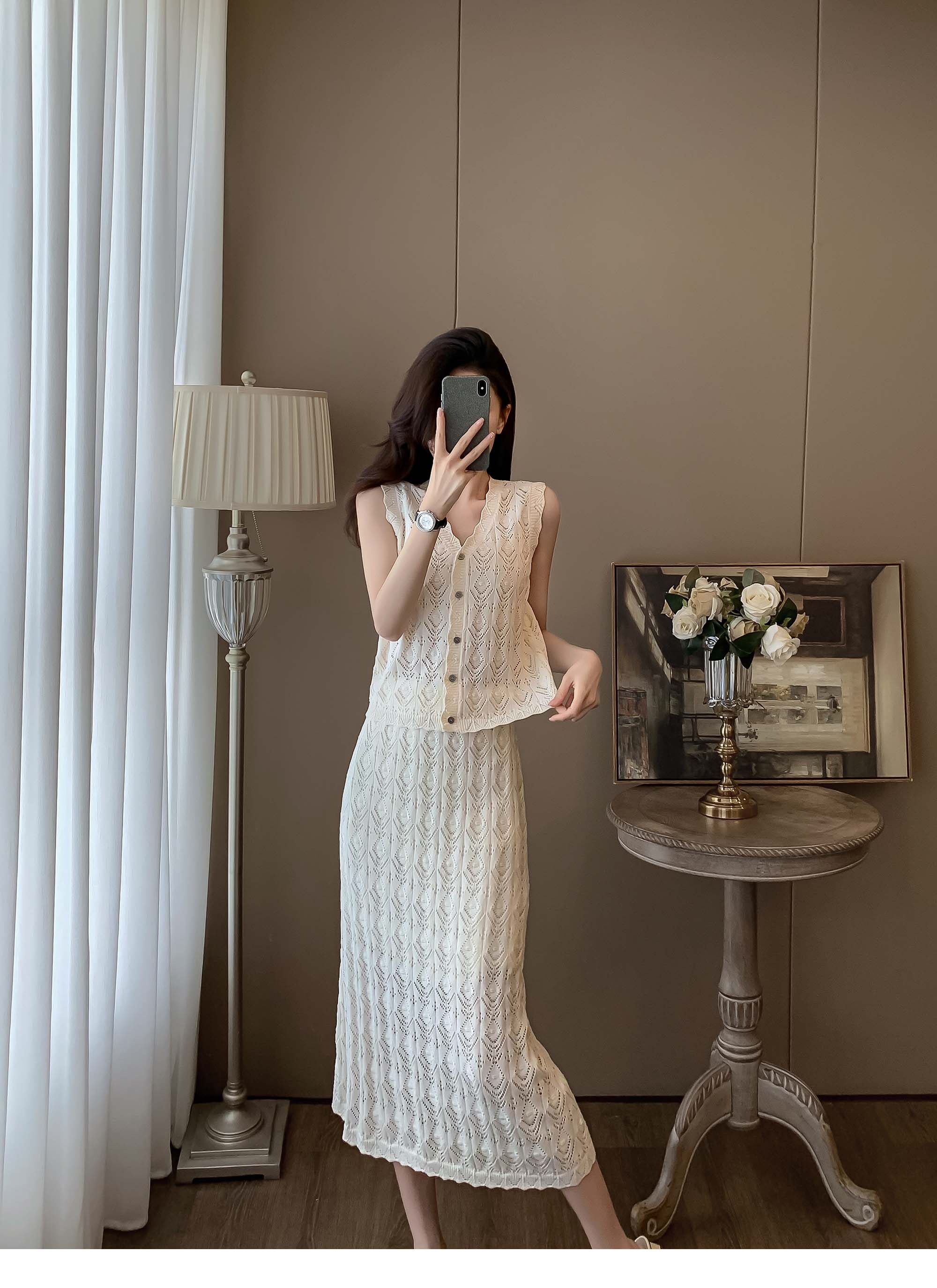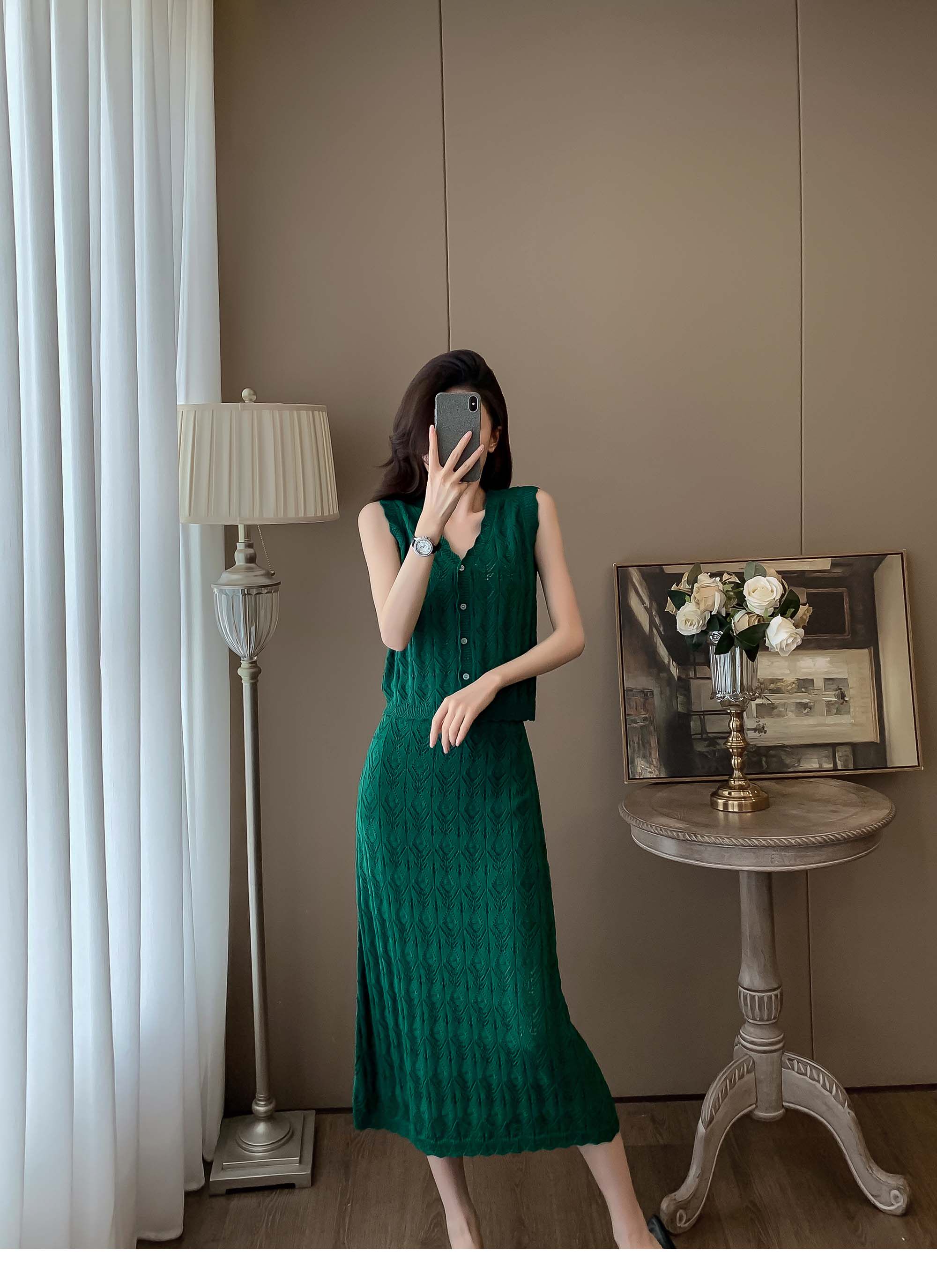 度假風設計感小心機鏤空背心冰絲針織套裝裙女V領針織衫半身a字裙