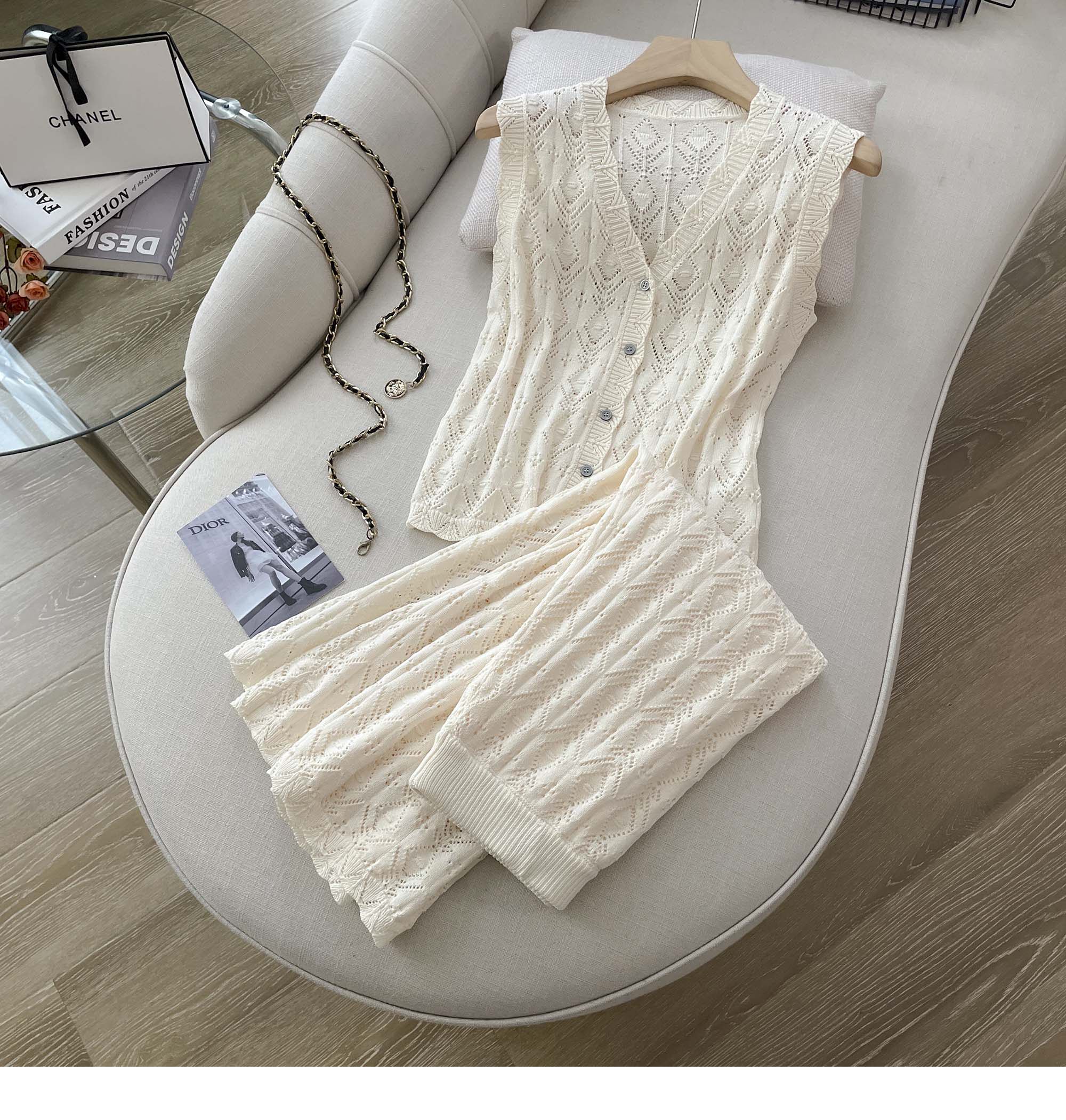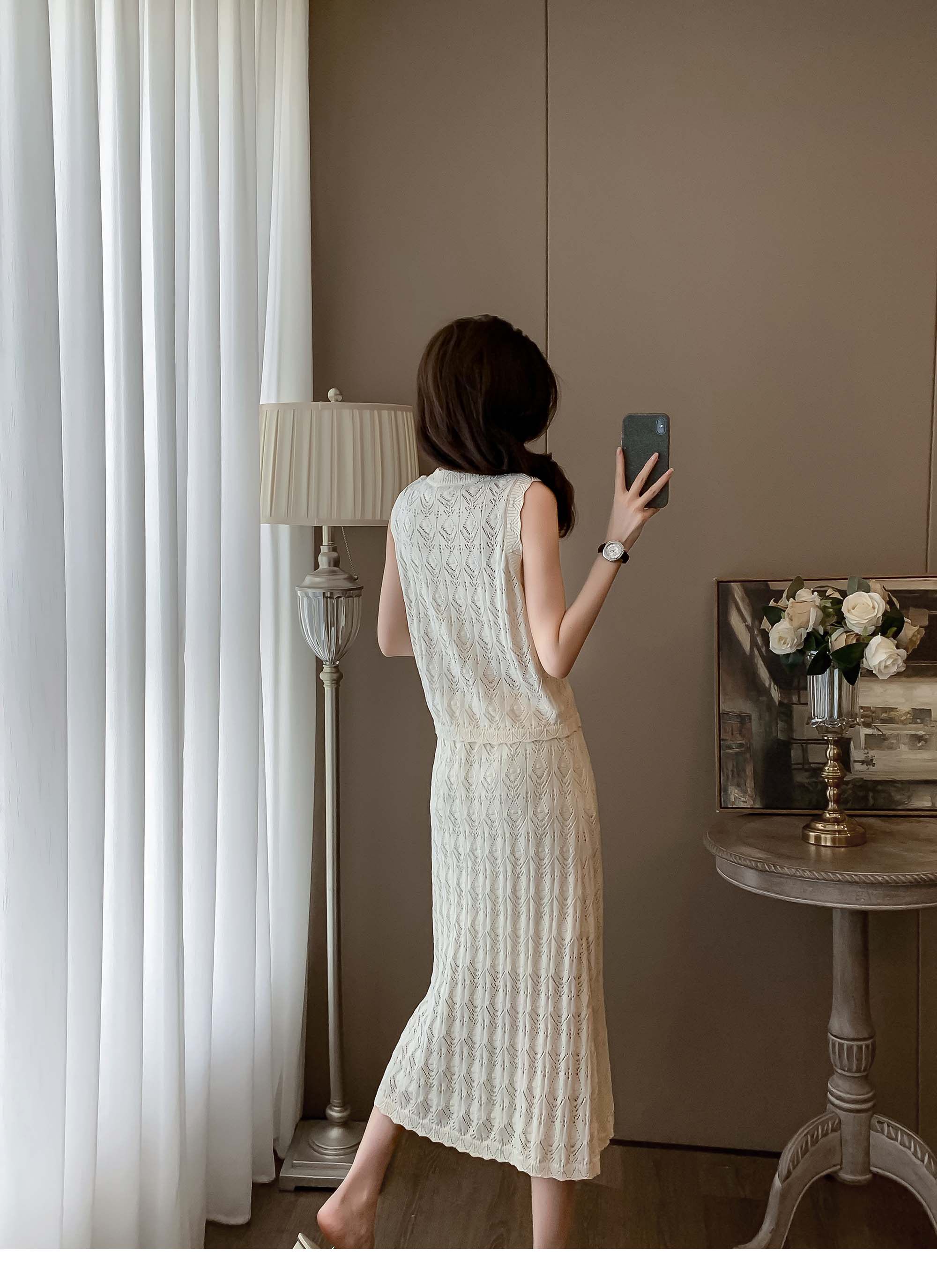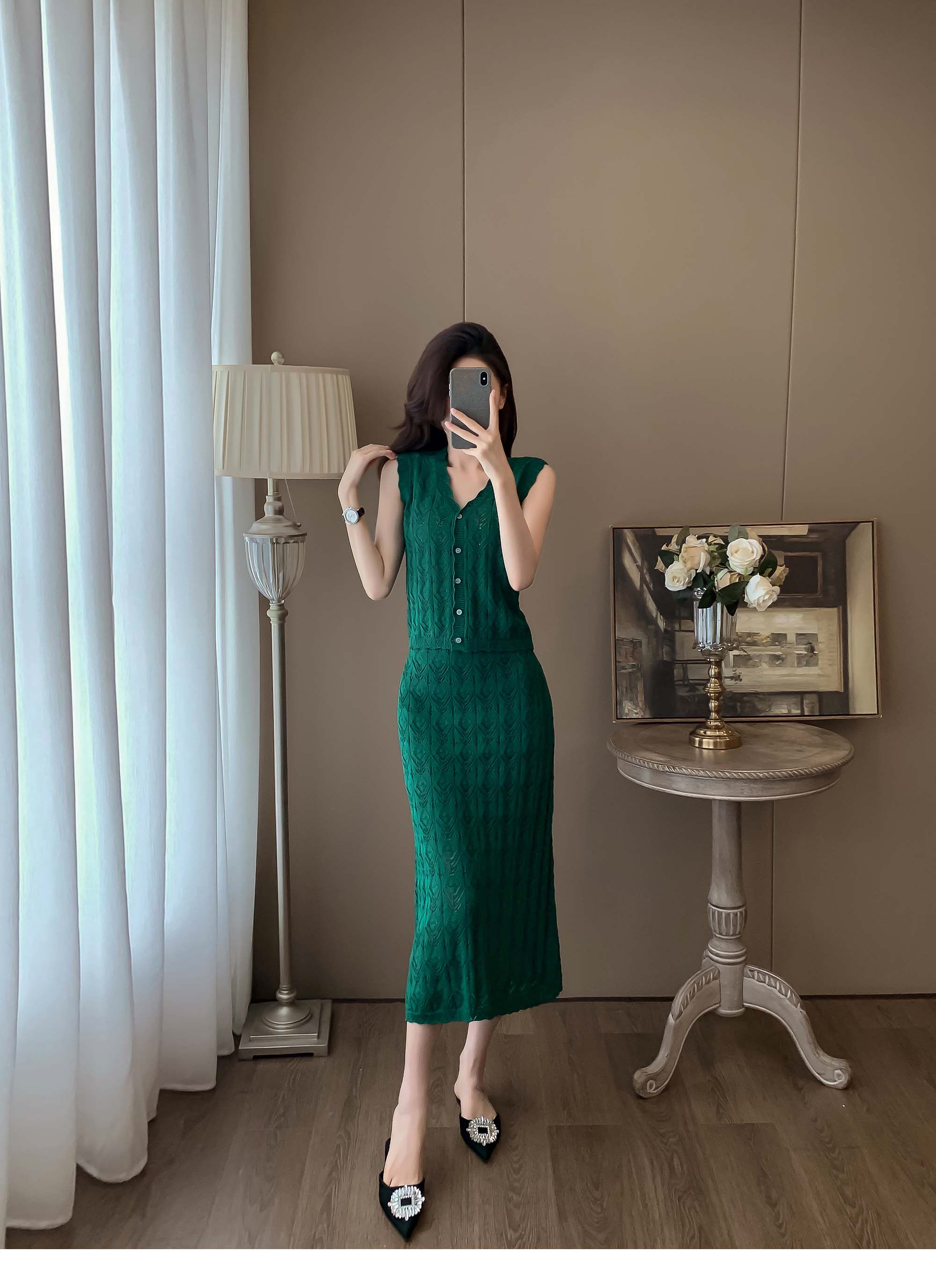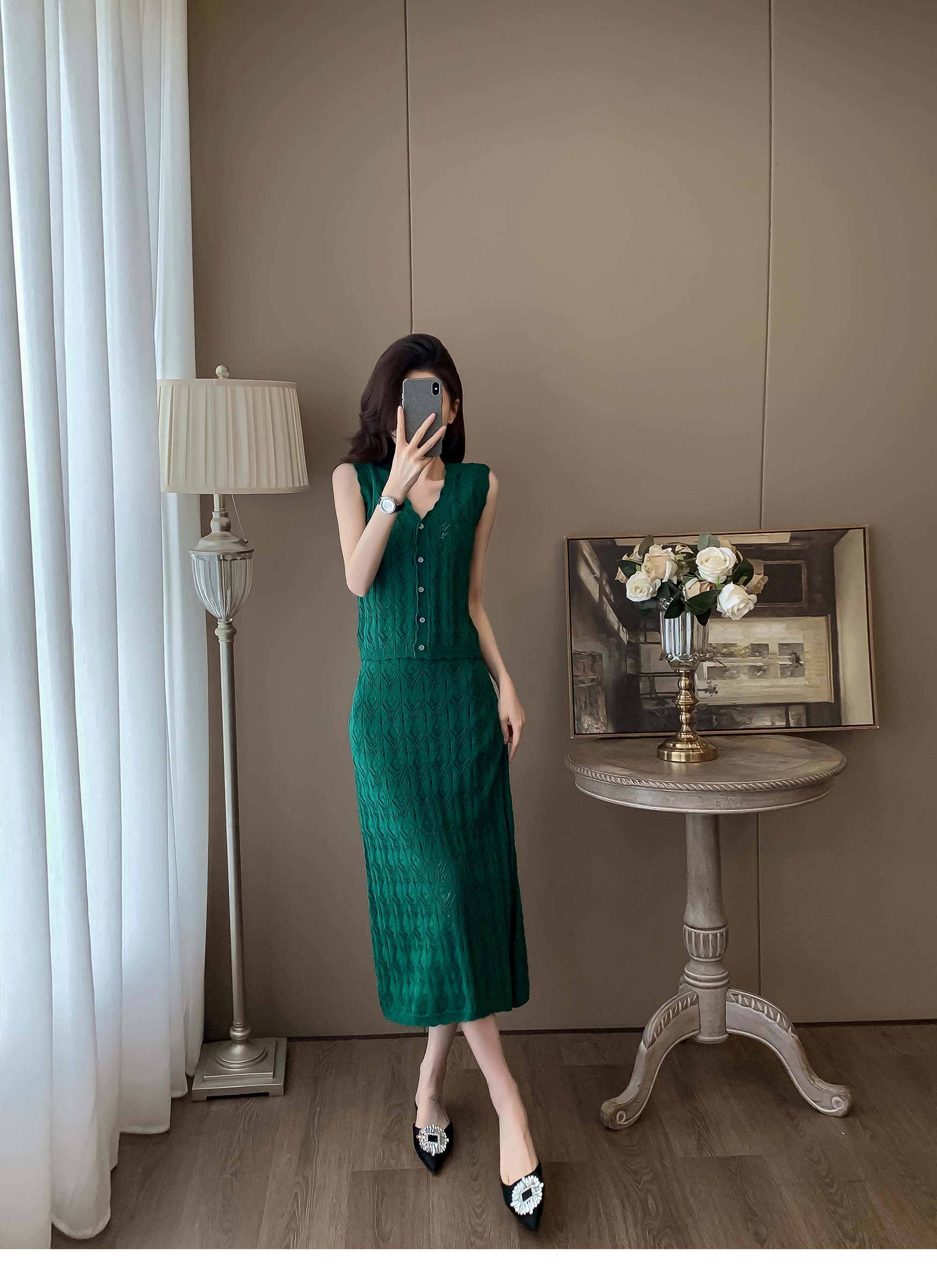 度假風設計感小心機鏤空背心冰絲針織套裝裙女V領針織衫半身a字裙