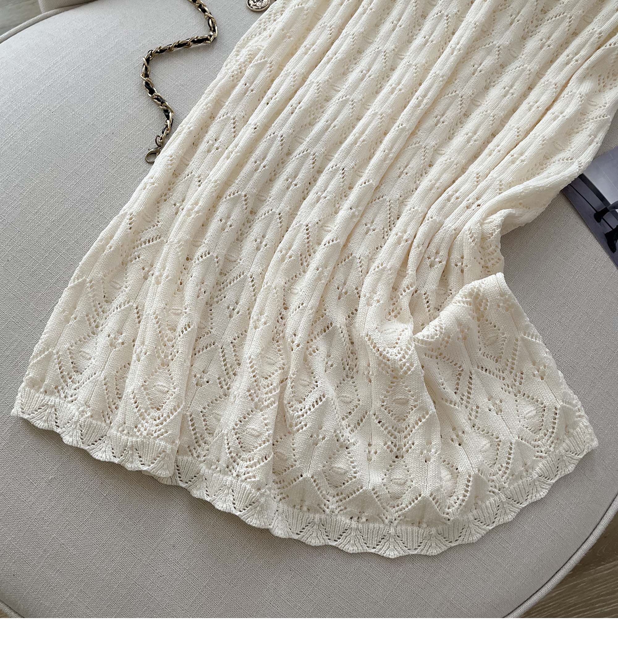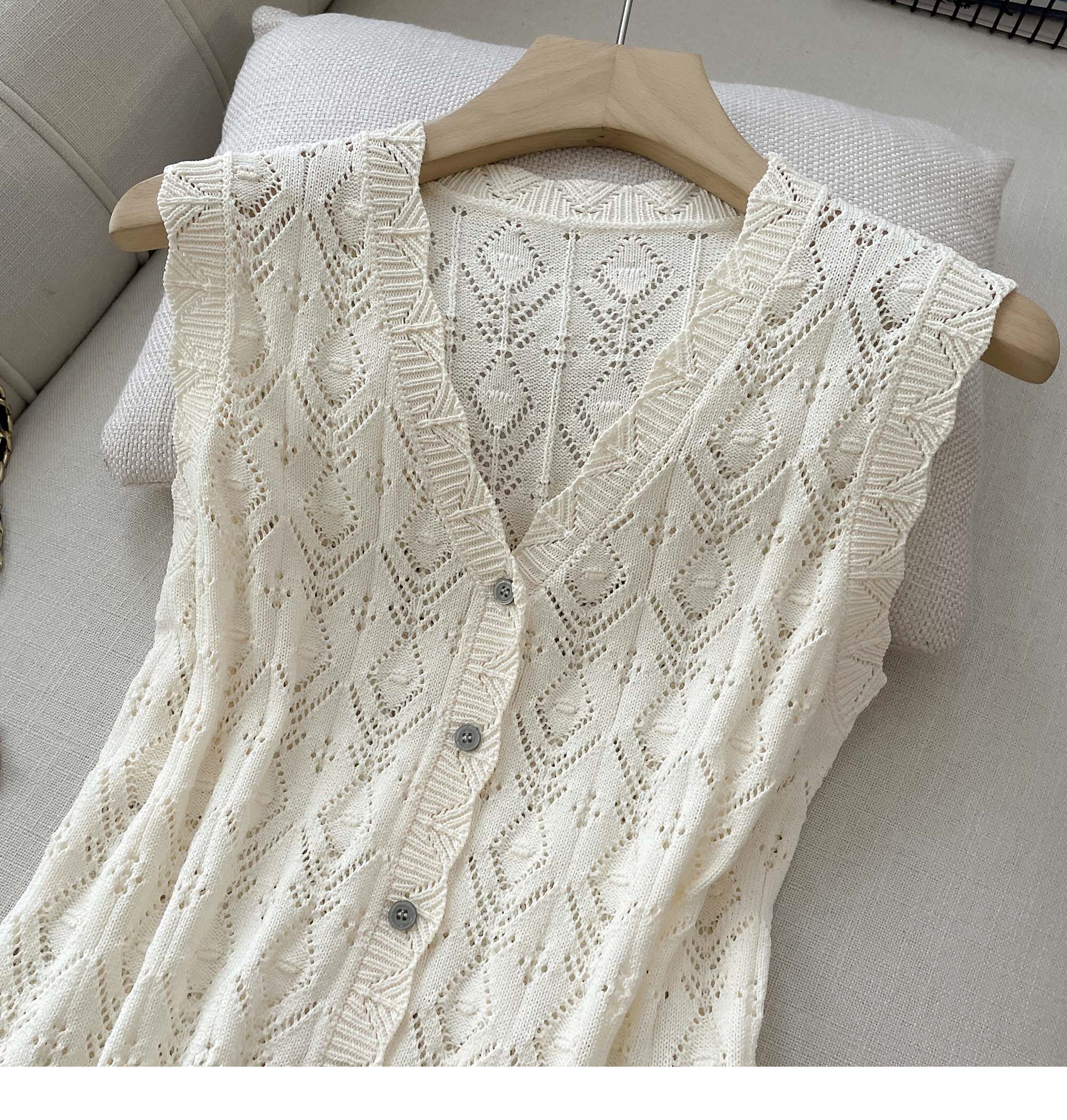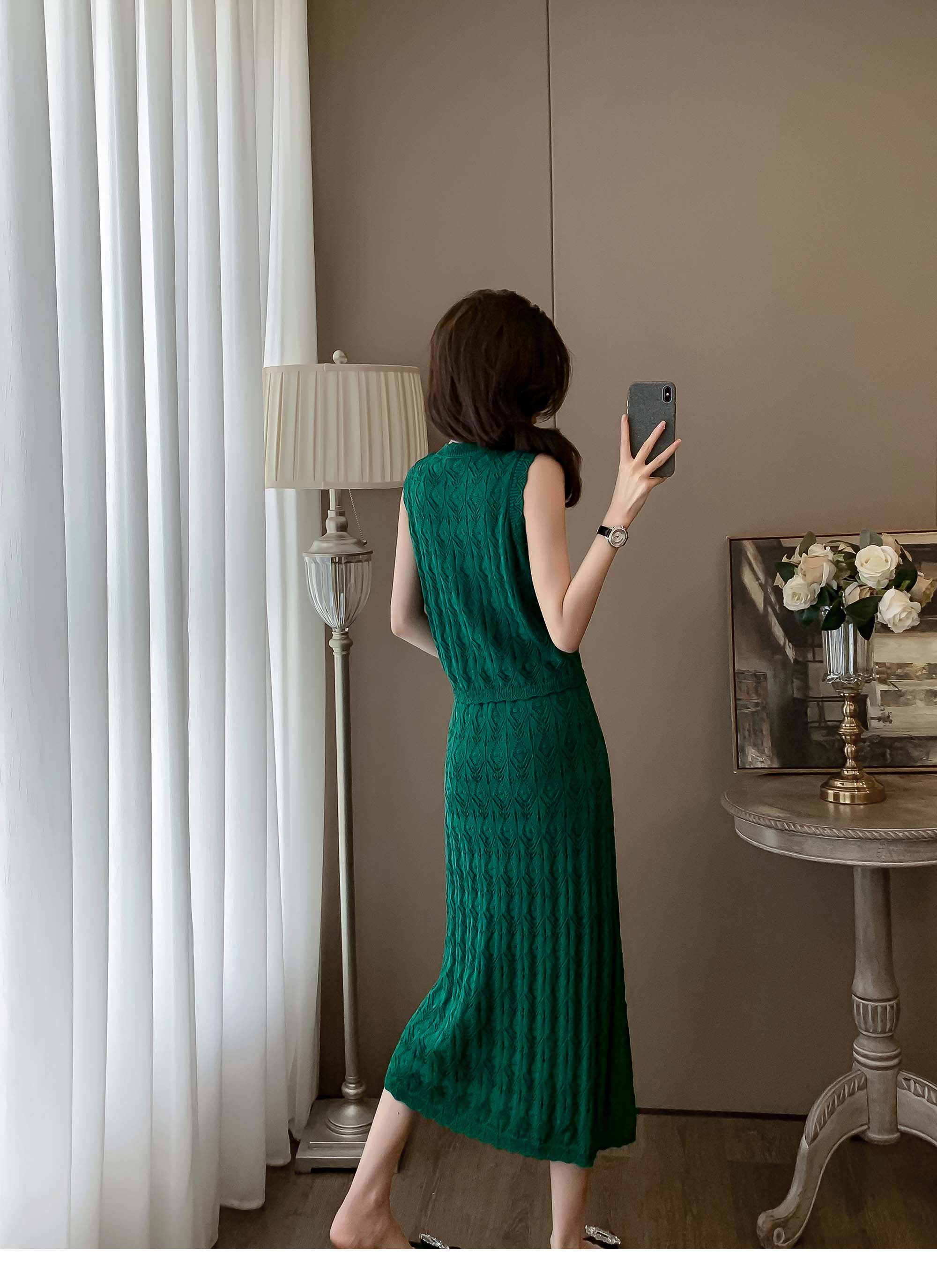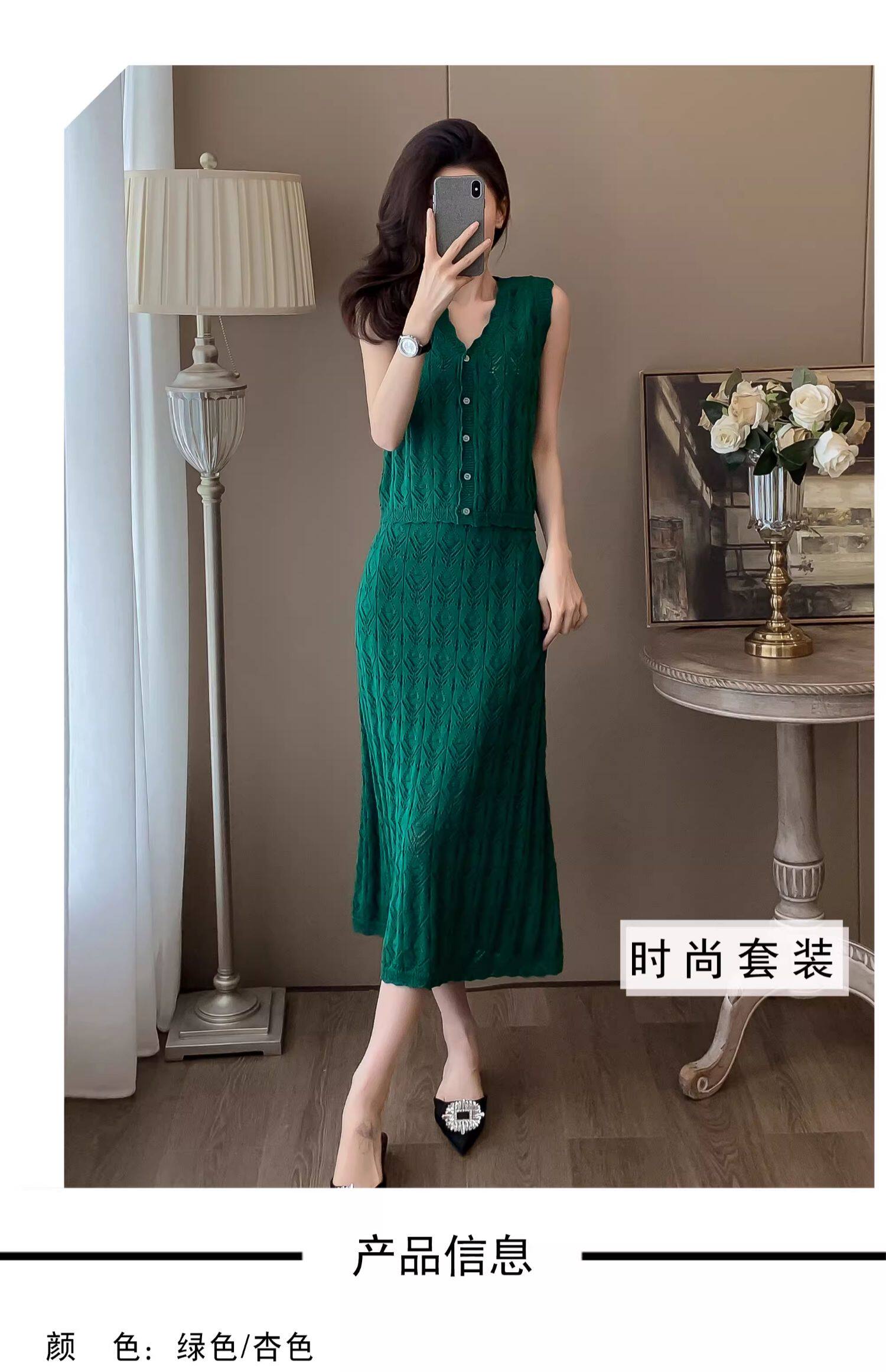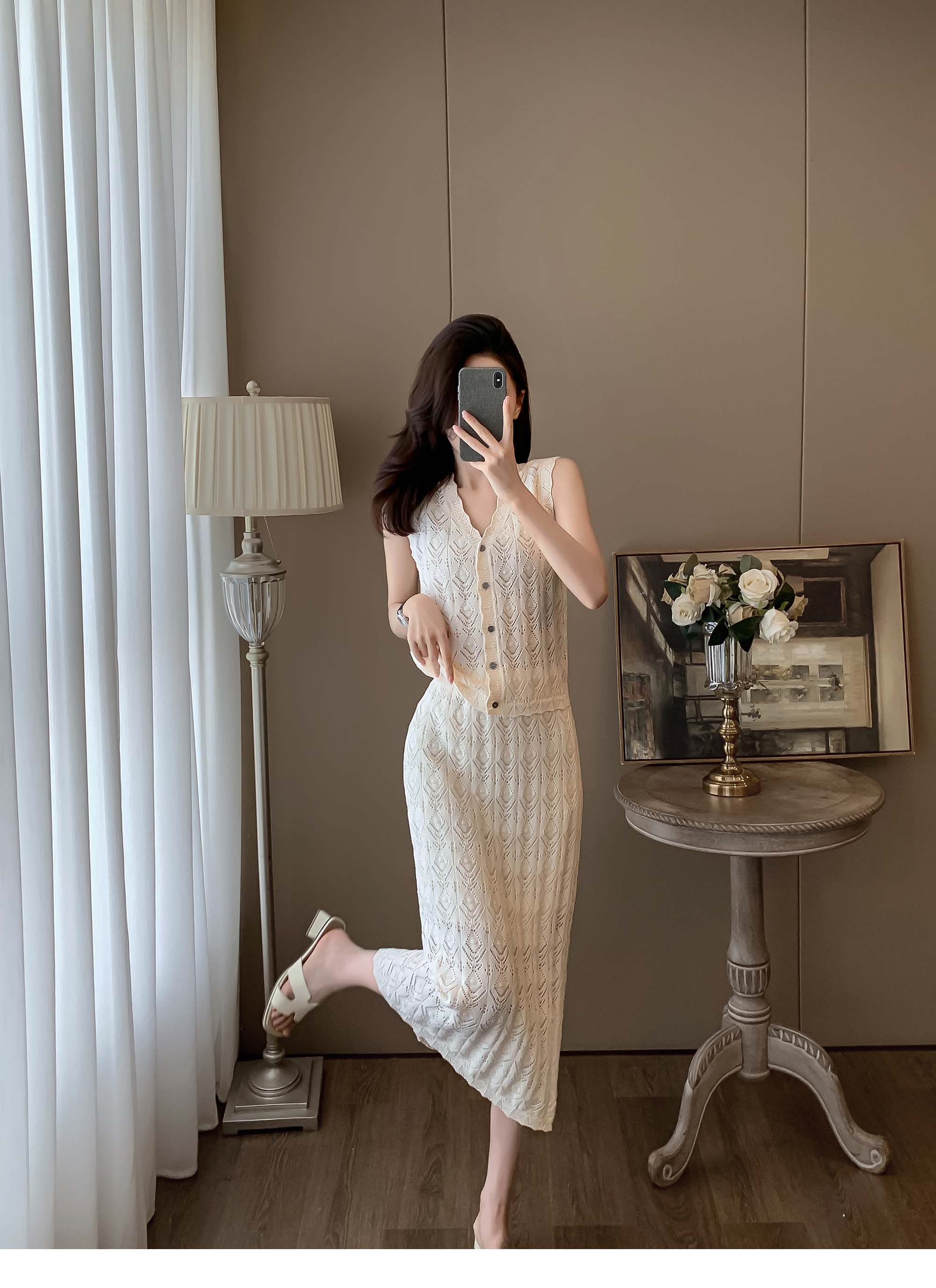 度假風設計感小心機鏤空背心冰絲針織套裝裙女V領針織衫半身a字裙