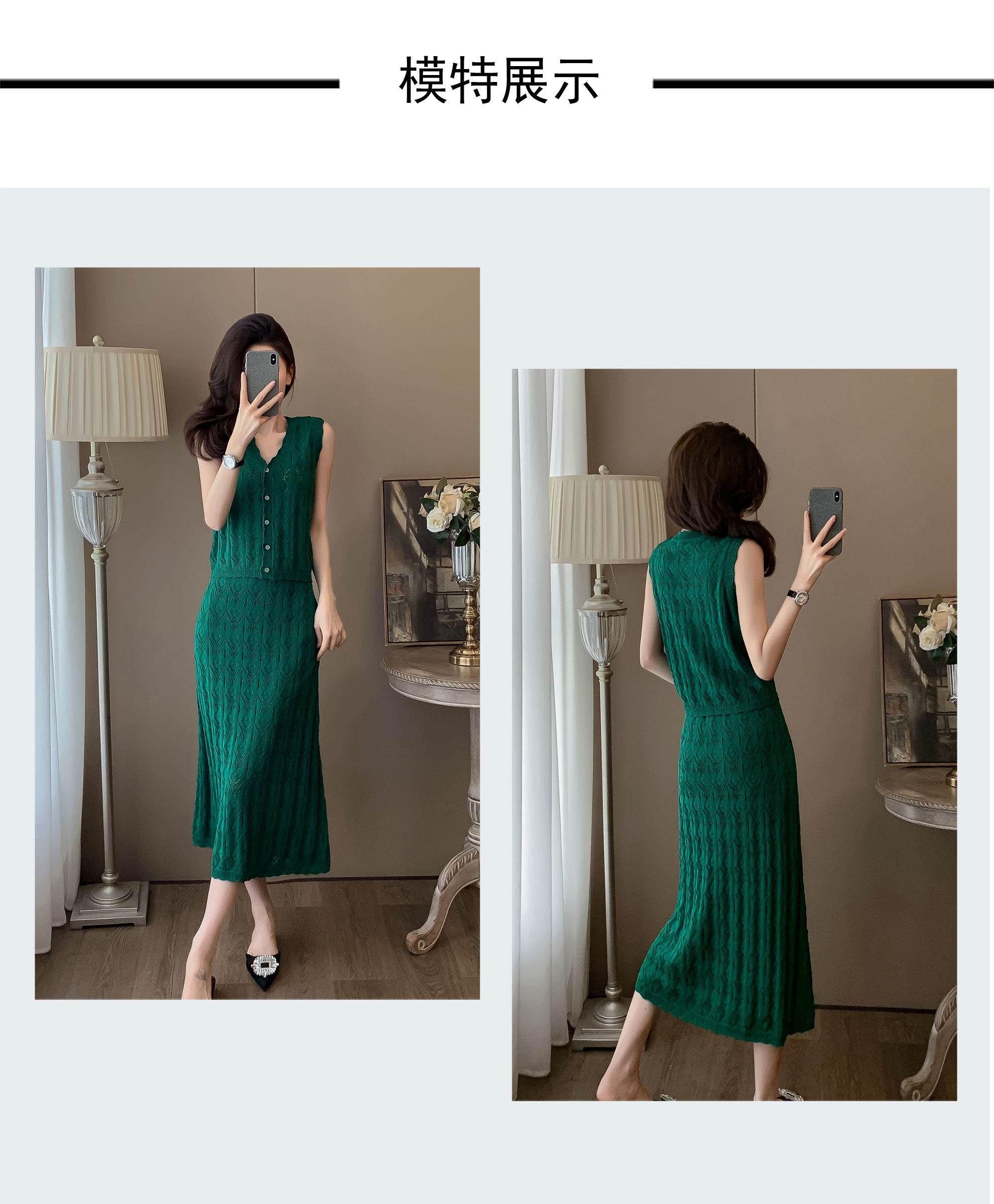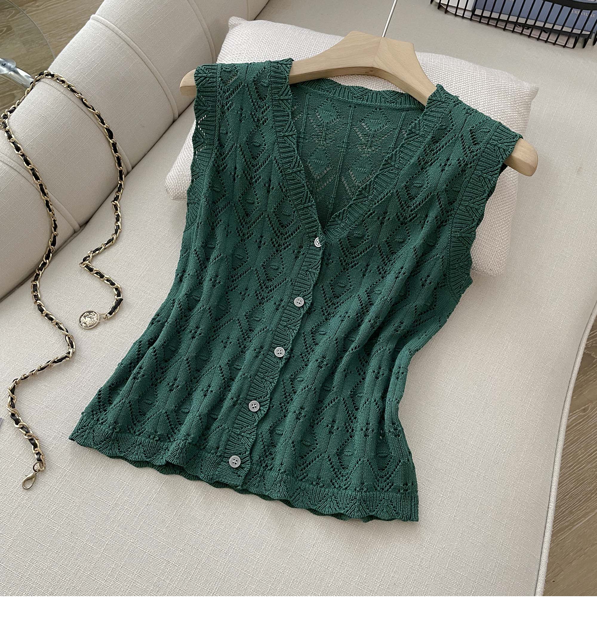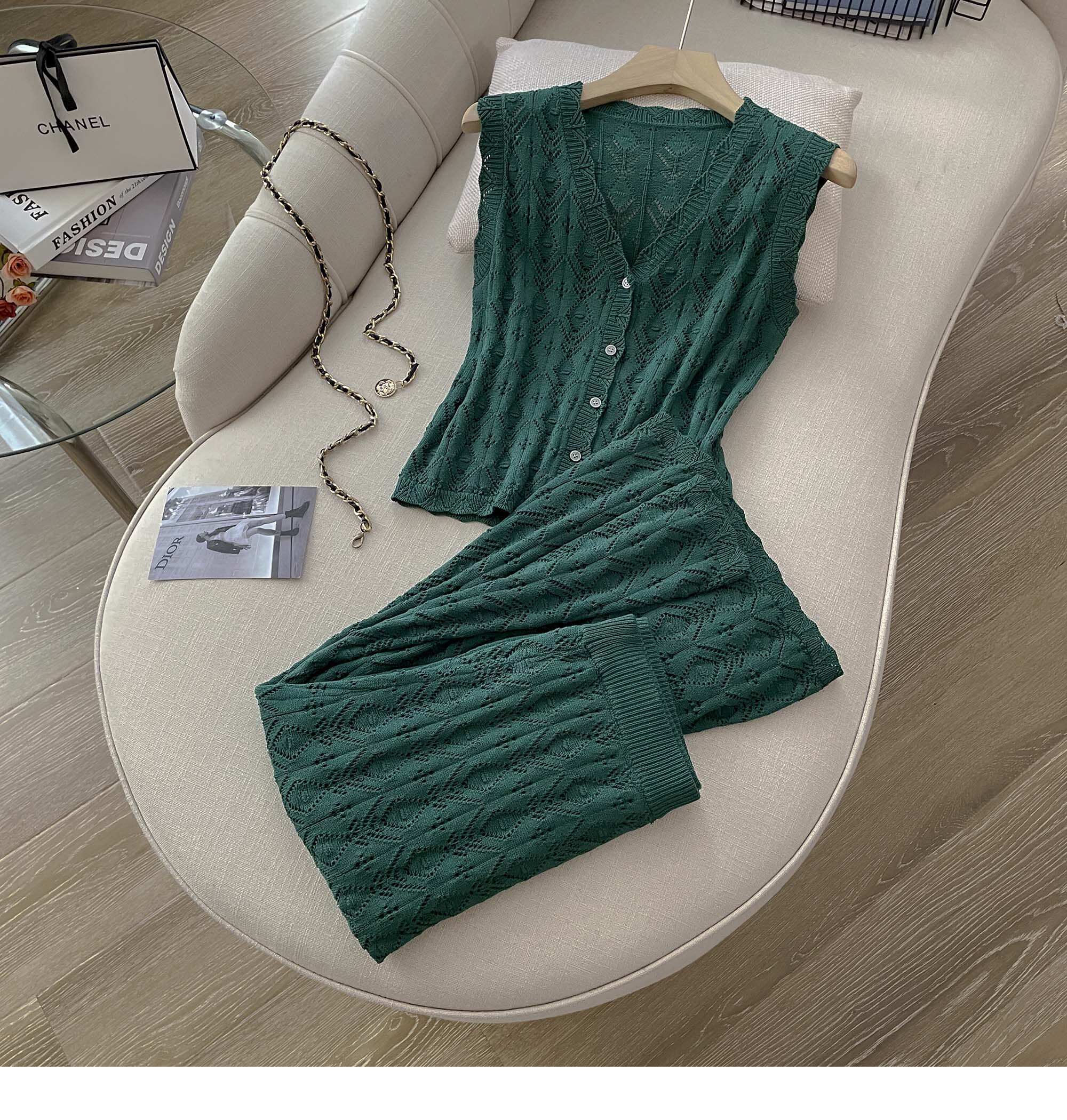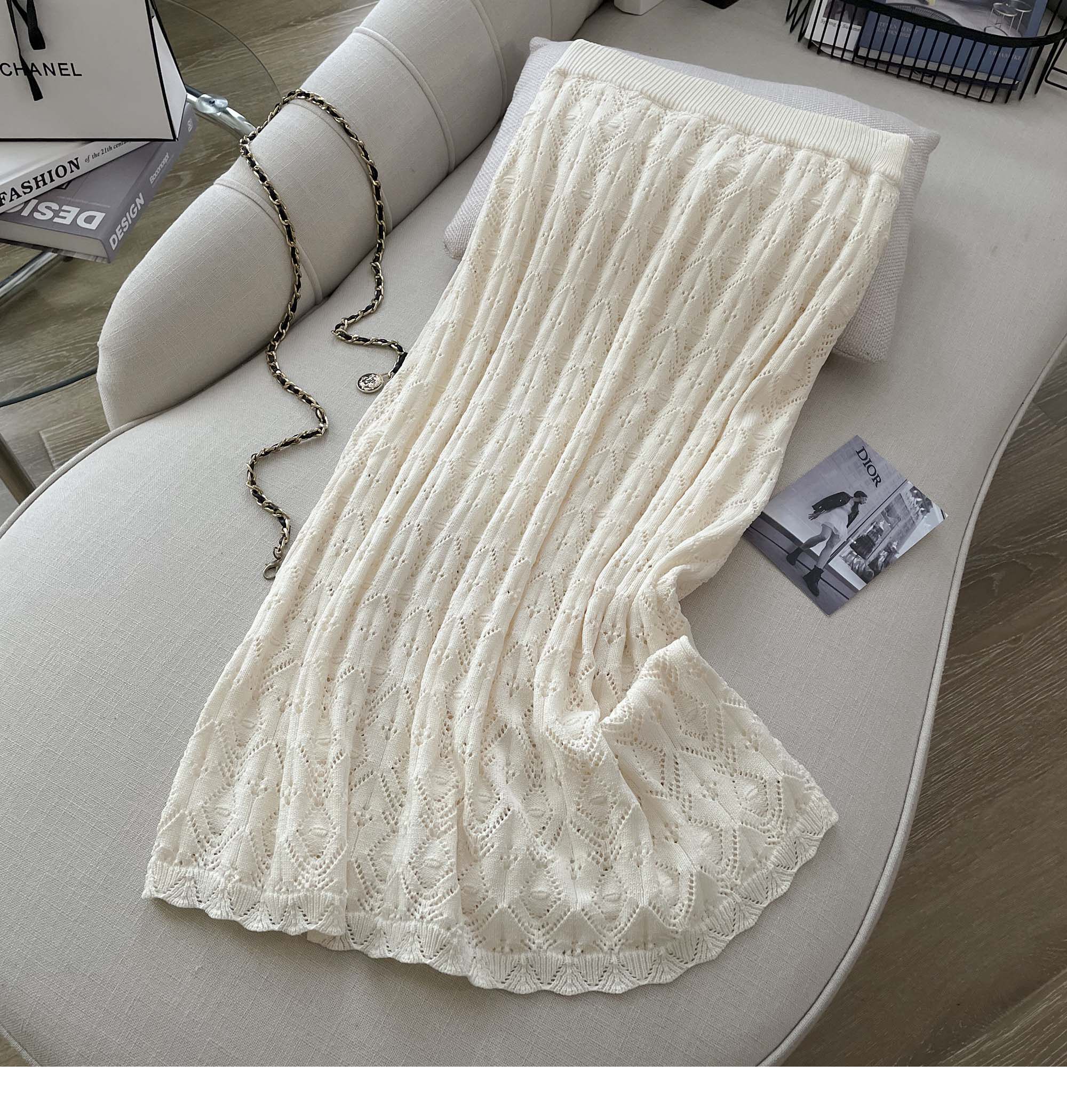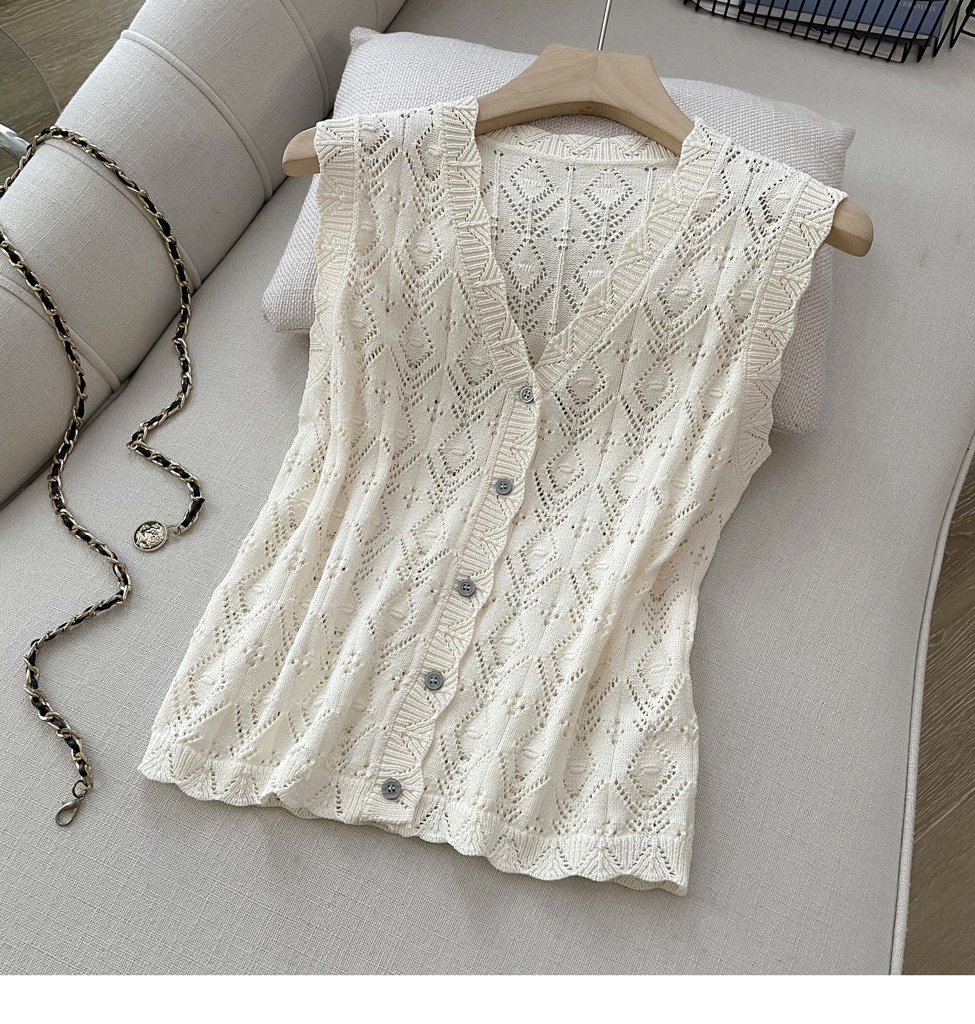度假風設計感小心機鏤空背心冰絲針織套裝裙女V領針織衫半身a字裙