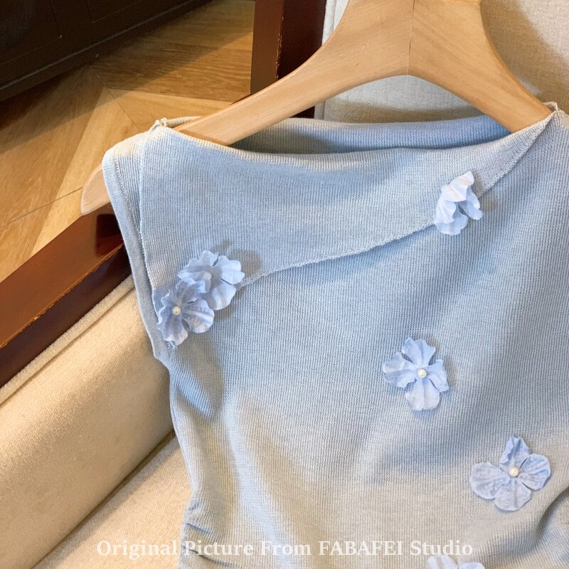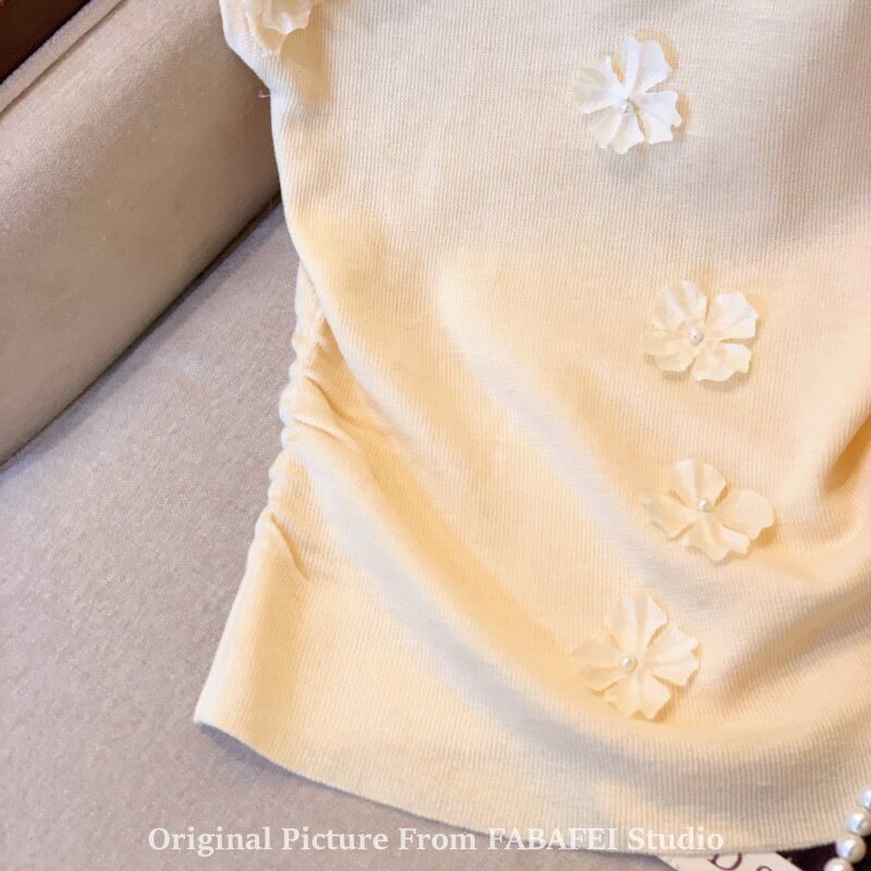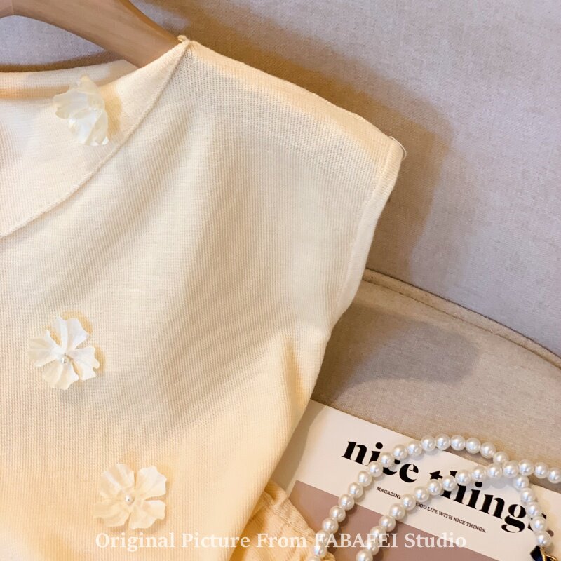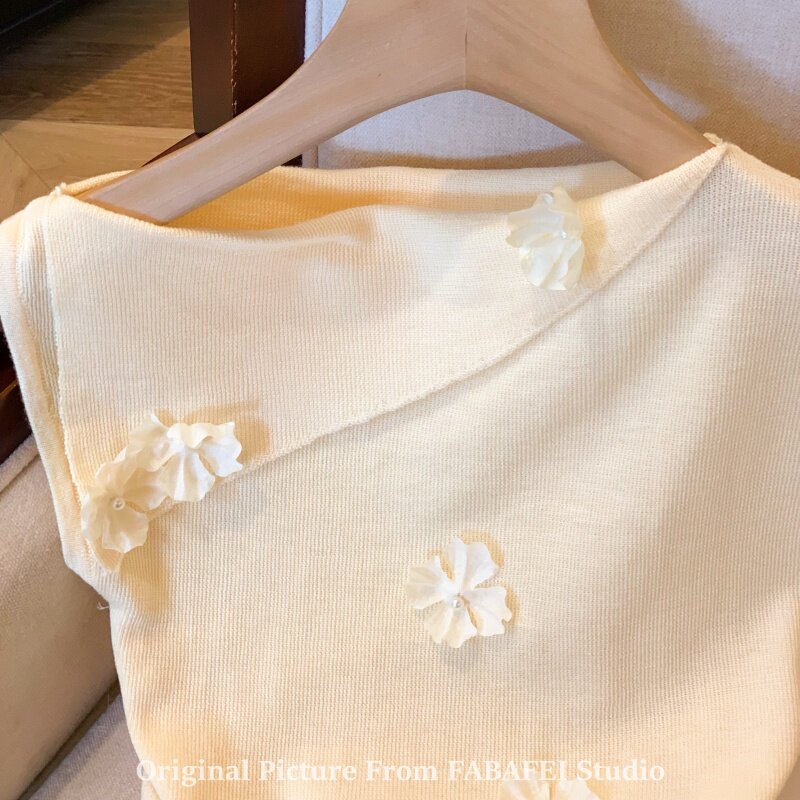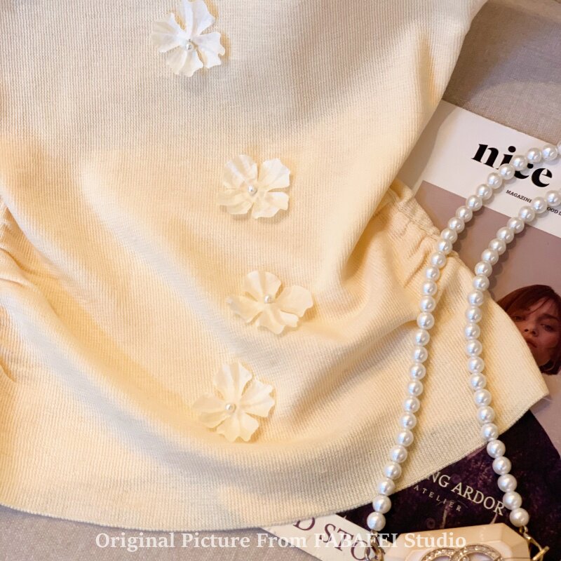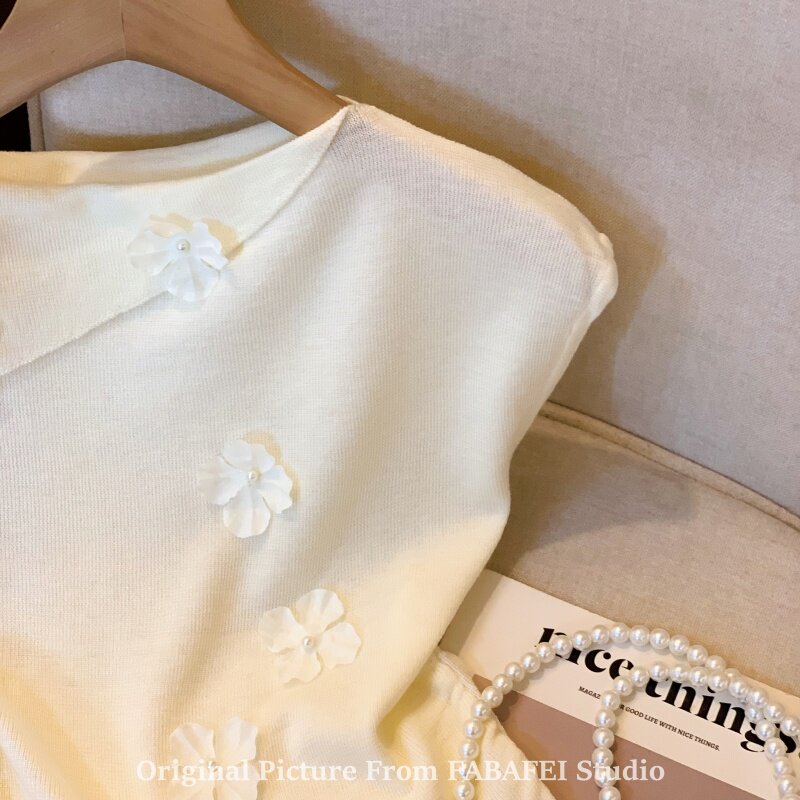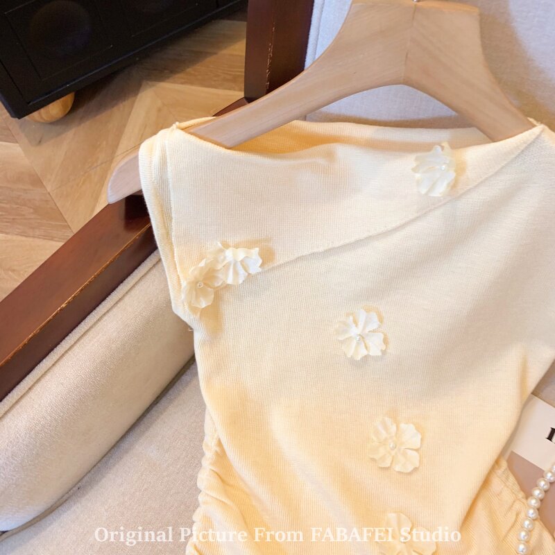 自畱爆款推薦~一字肩立體花朵針織衫t恤女夏季2026辣妹掐腰小上衣