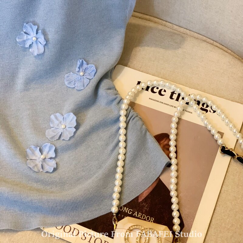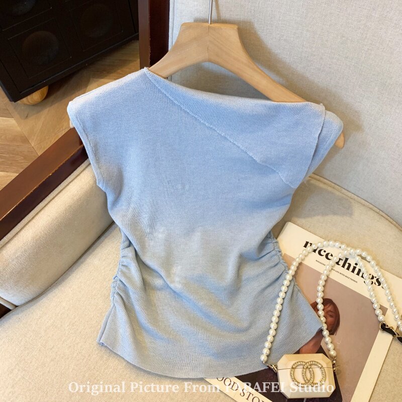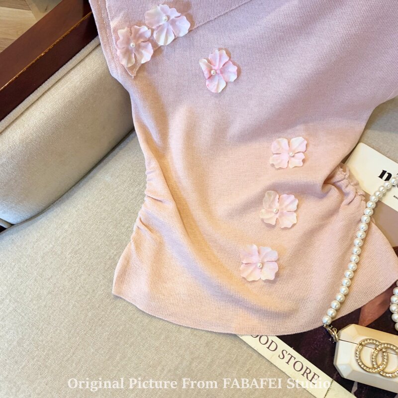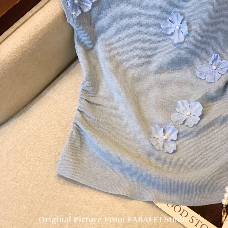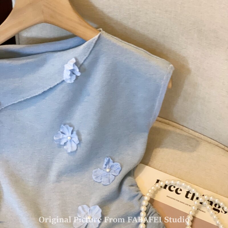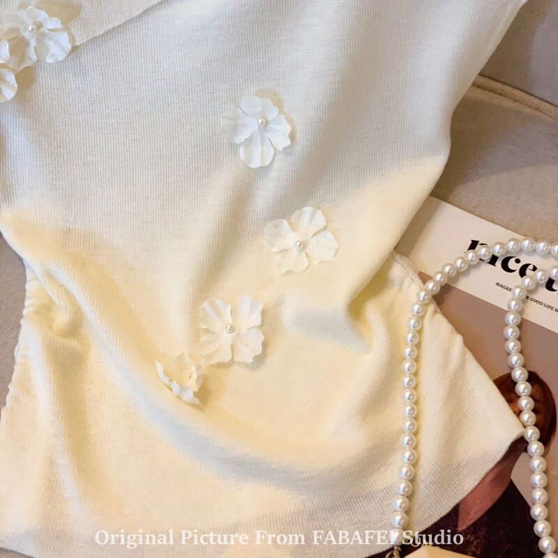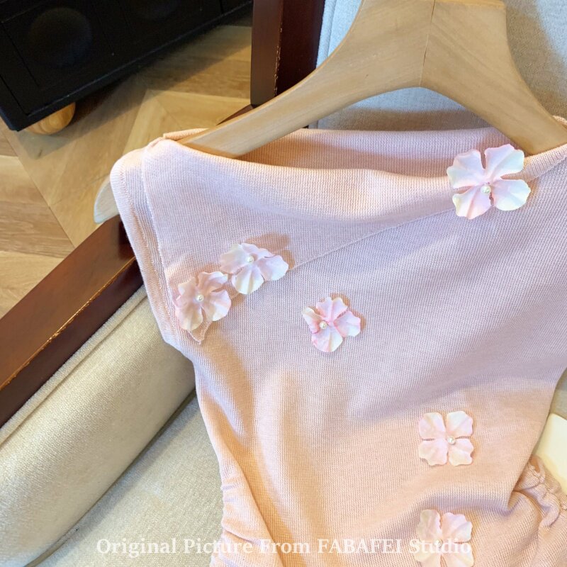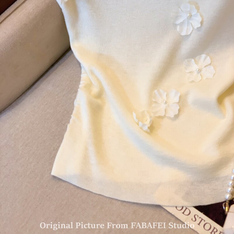自畱爆款推薦~一字肩立體花朵針織衫t恤女夏季2026辣妹掐腰小上衣