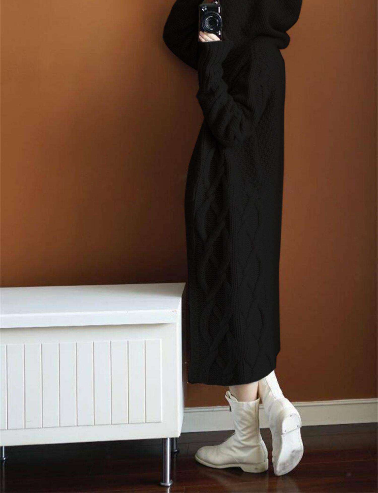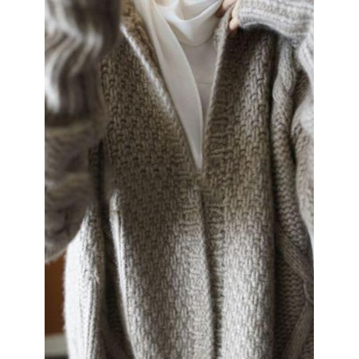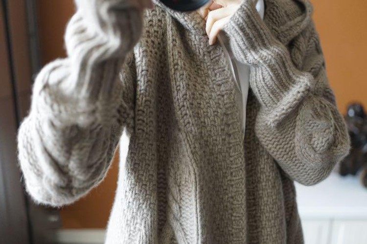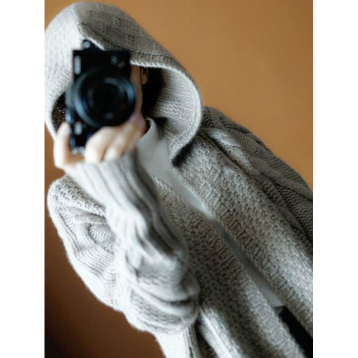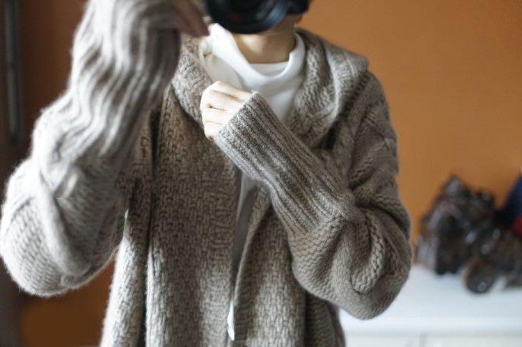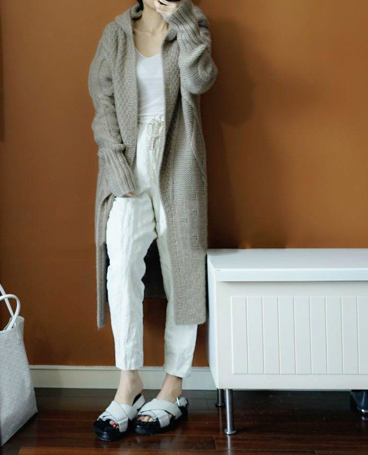 25歐洲站麻花長款連帽大衣女秋冬時尚加厚帶帽針織開衫慵懶風