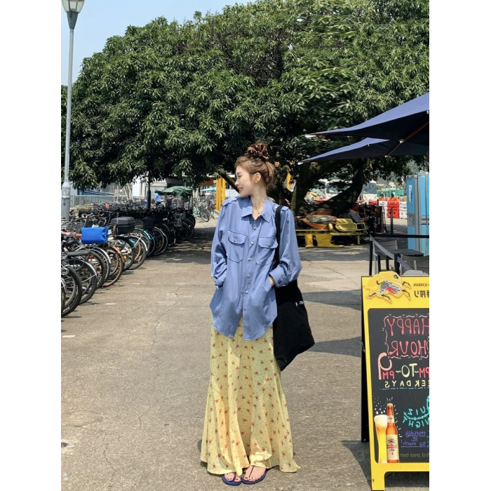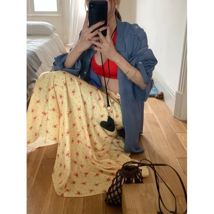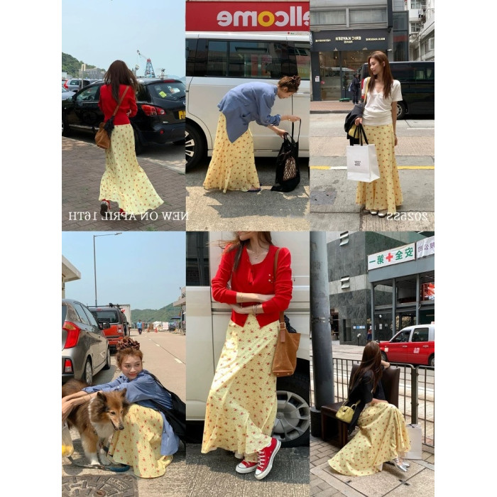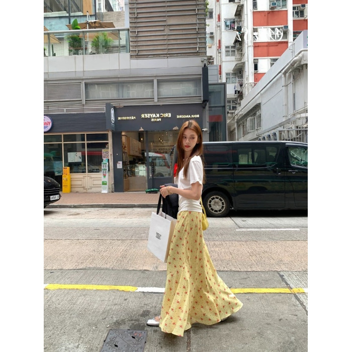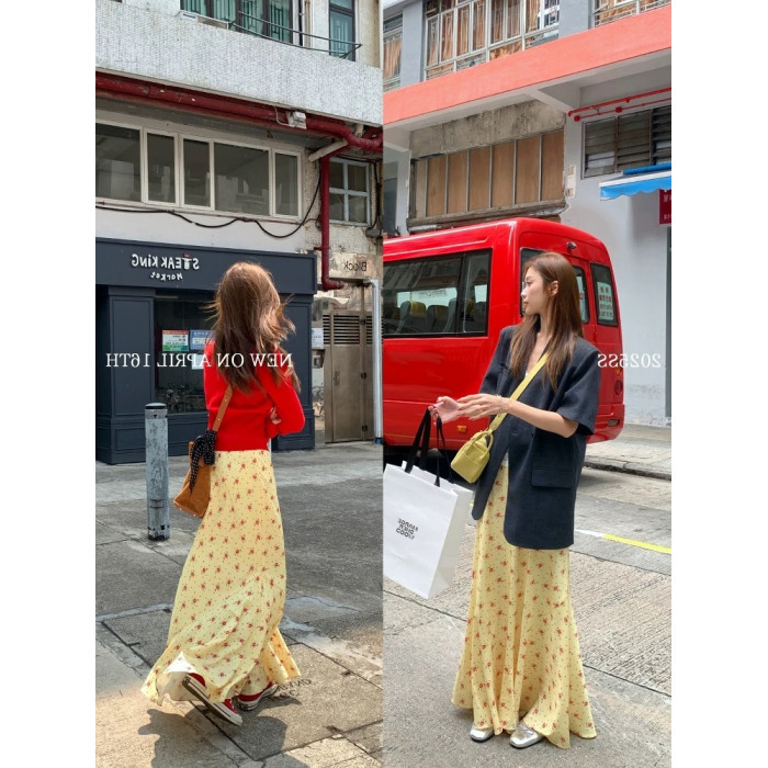 正確版 【梔子雛菊】超模微魚尾春夏擺褶休閒女長半裙