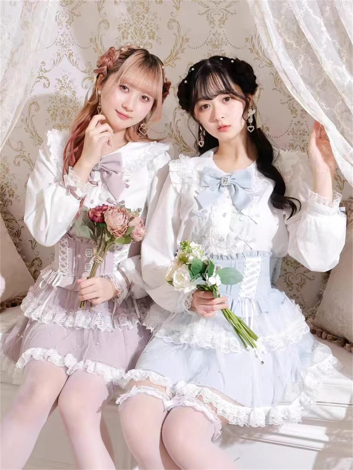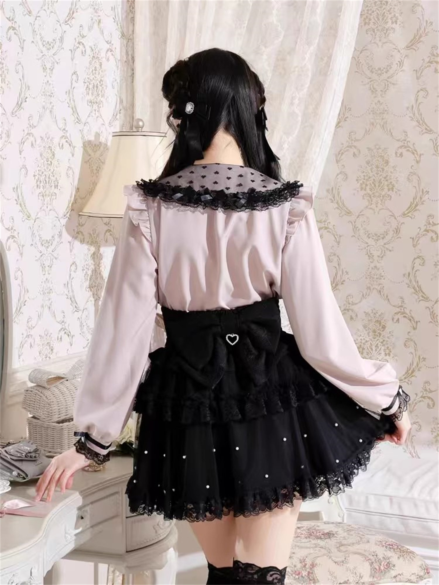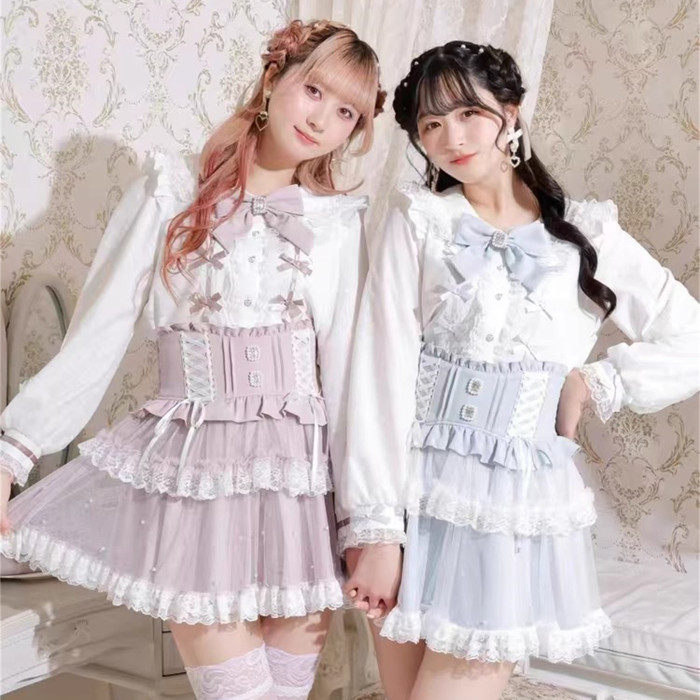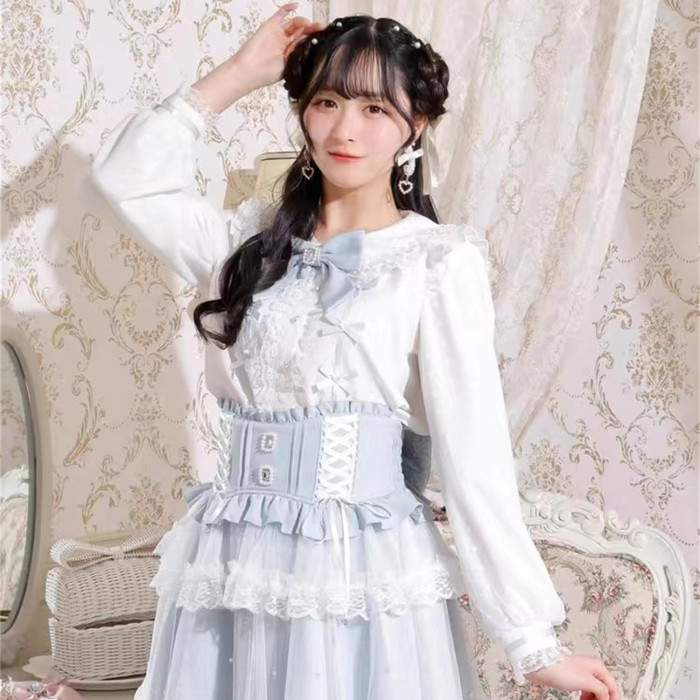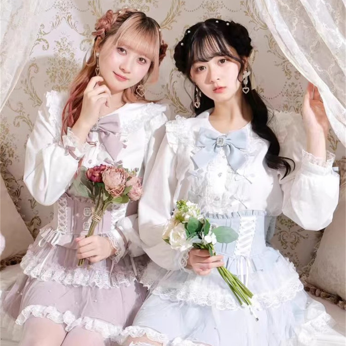 J6-2日本原單新品蕾服甜美女士可愛蕾絲蝴蝶結量産蘿莉長袖襯衫
