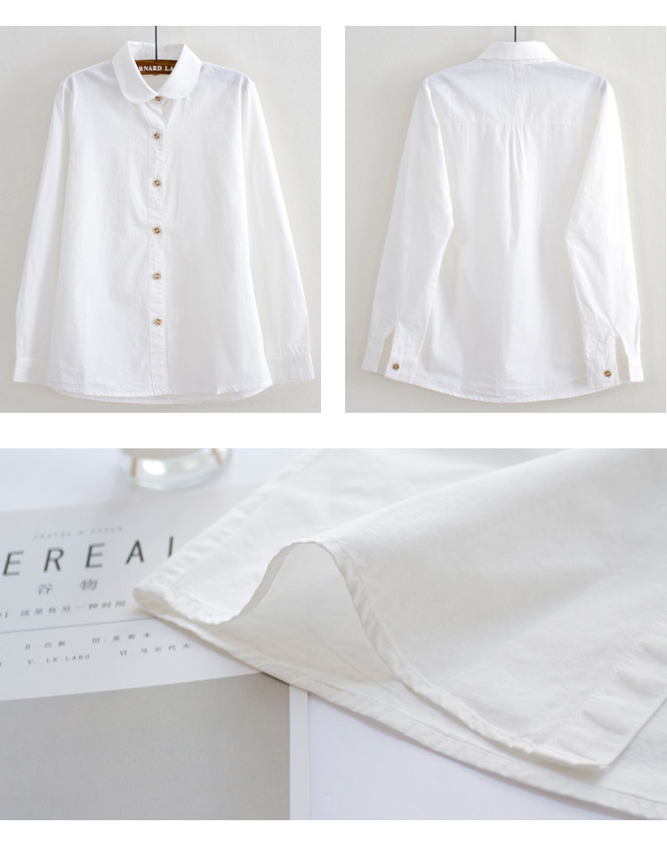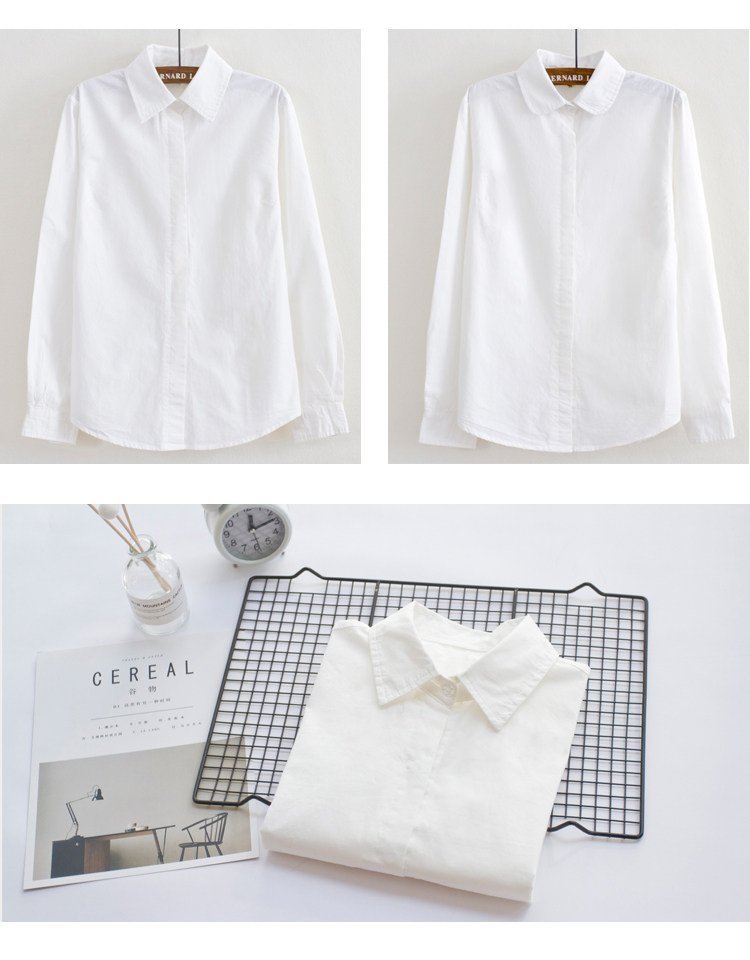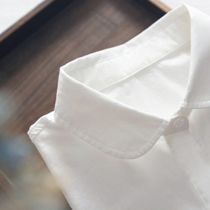 秋季純棉白襯衫女內搭打底純白襯衣冬季加絨保暖簡約減齡面試曡穿