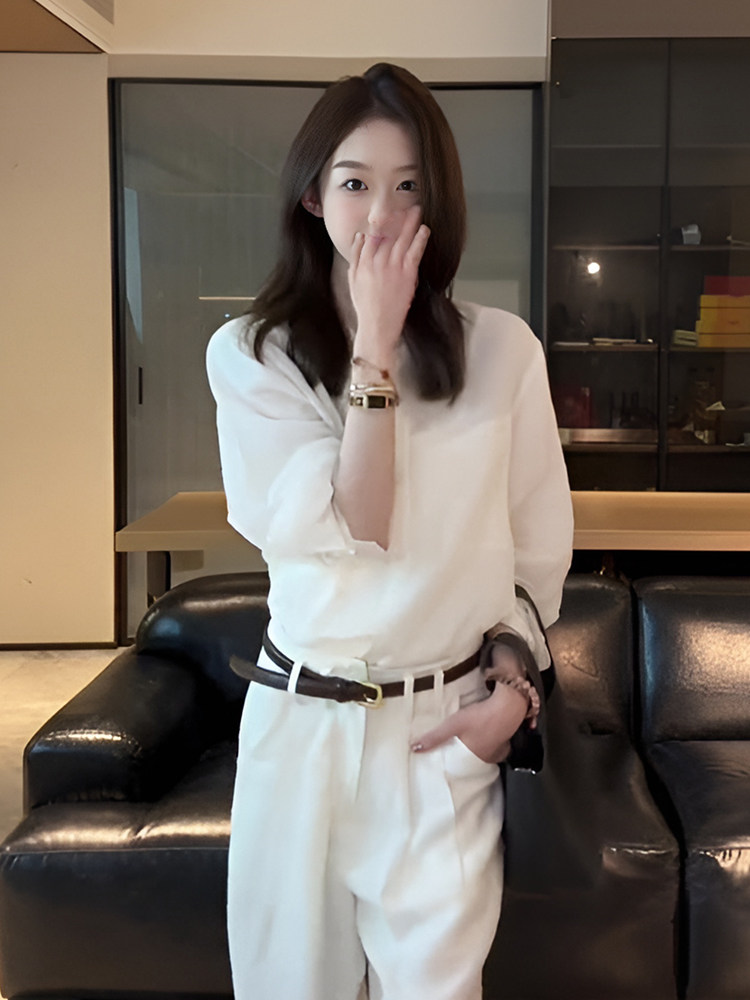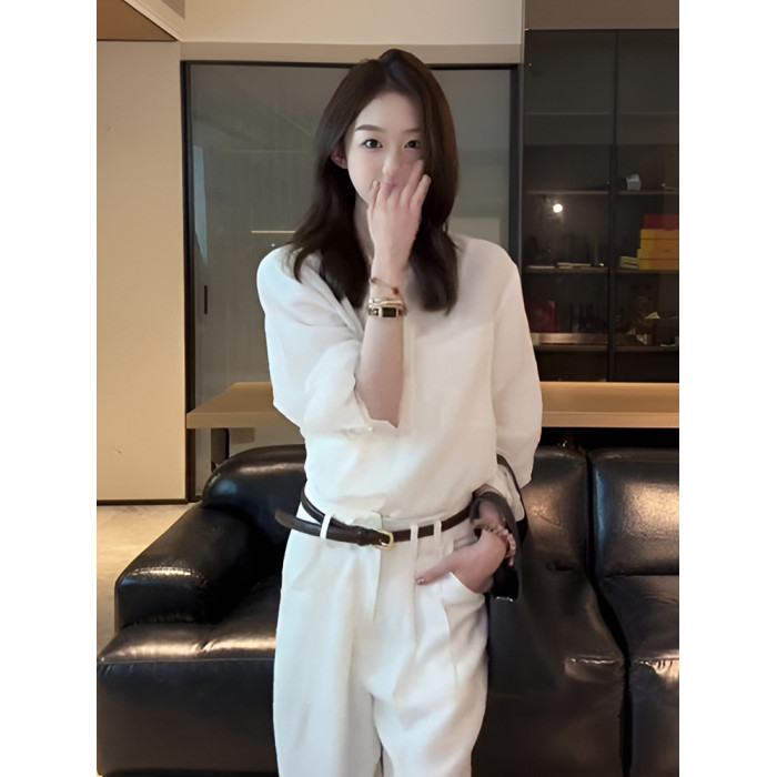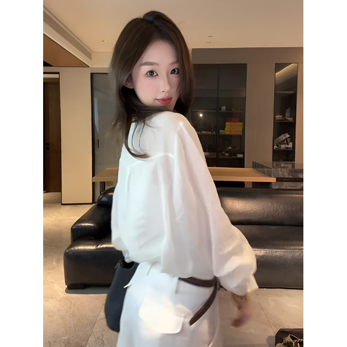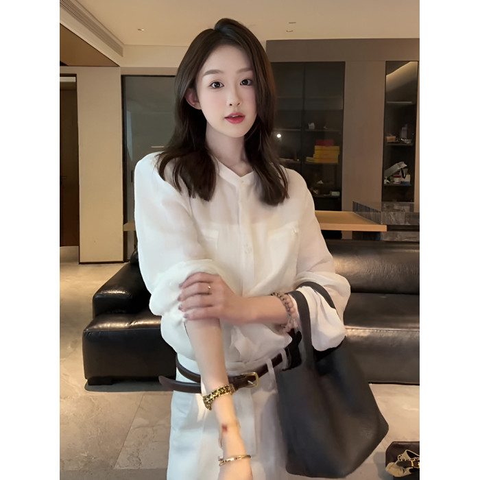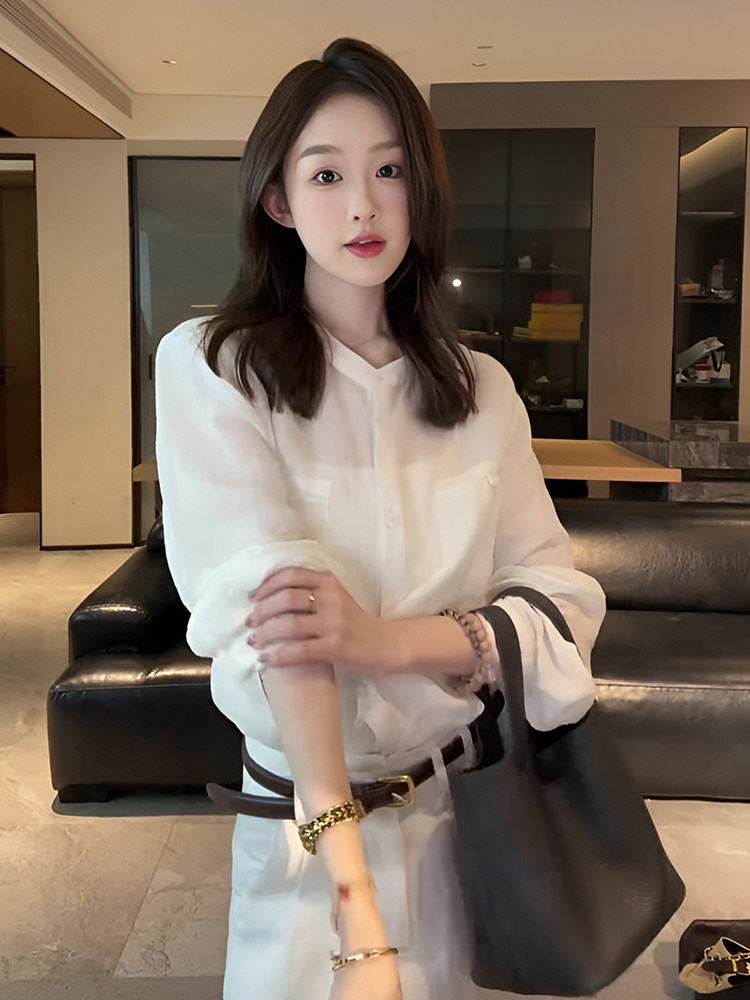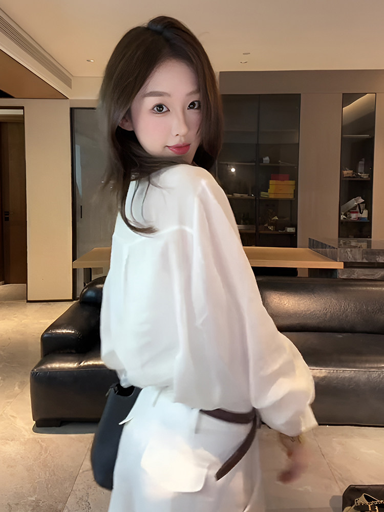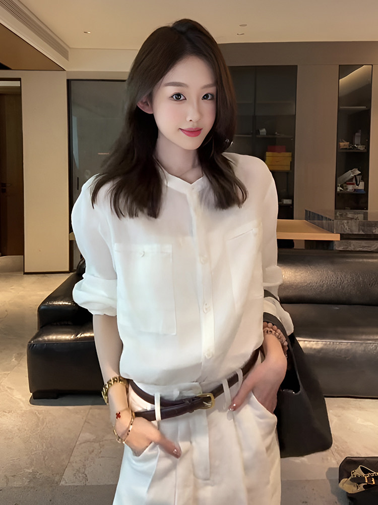 法式氣質圓領長袖白色襯衫女2025新款早秋設計感寬鬆休閒獨特上衣