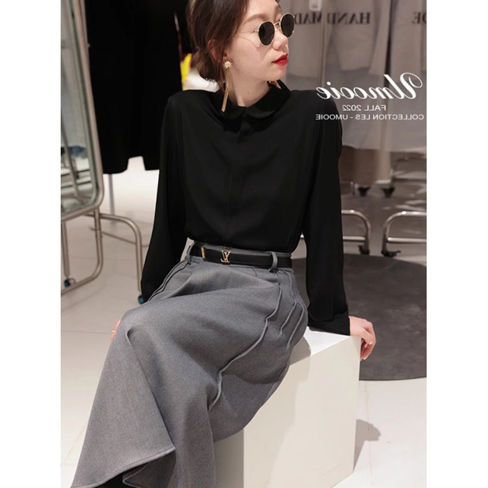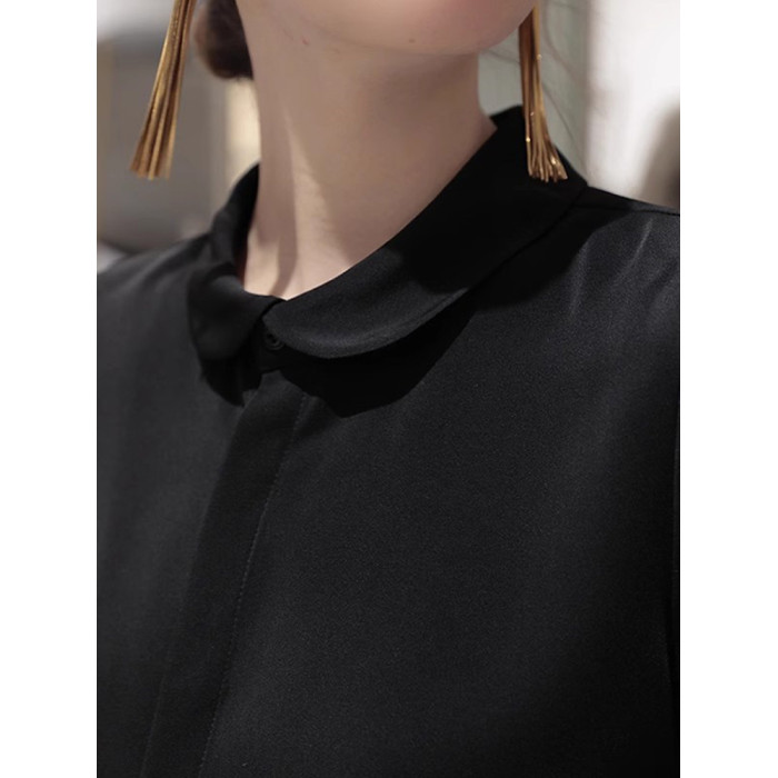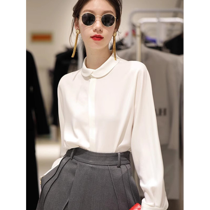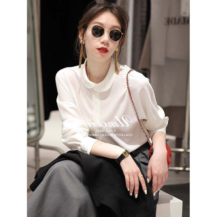 春秋法式高級感白色雪紡襯衫女設計感小衆職業襯衣內搭娃娃領上衣